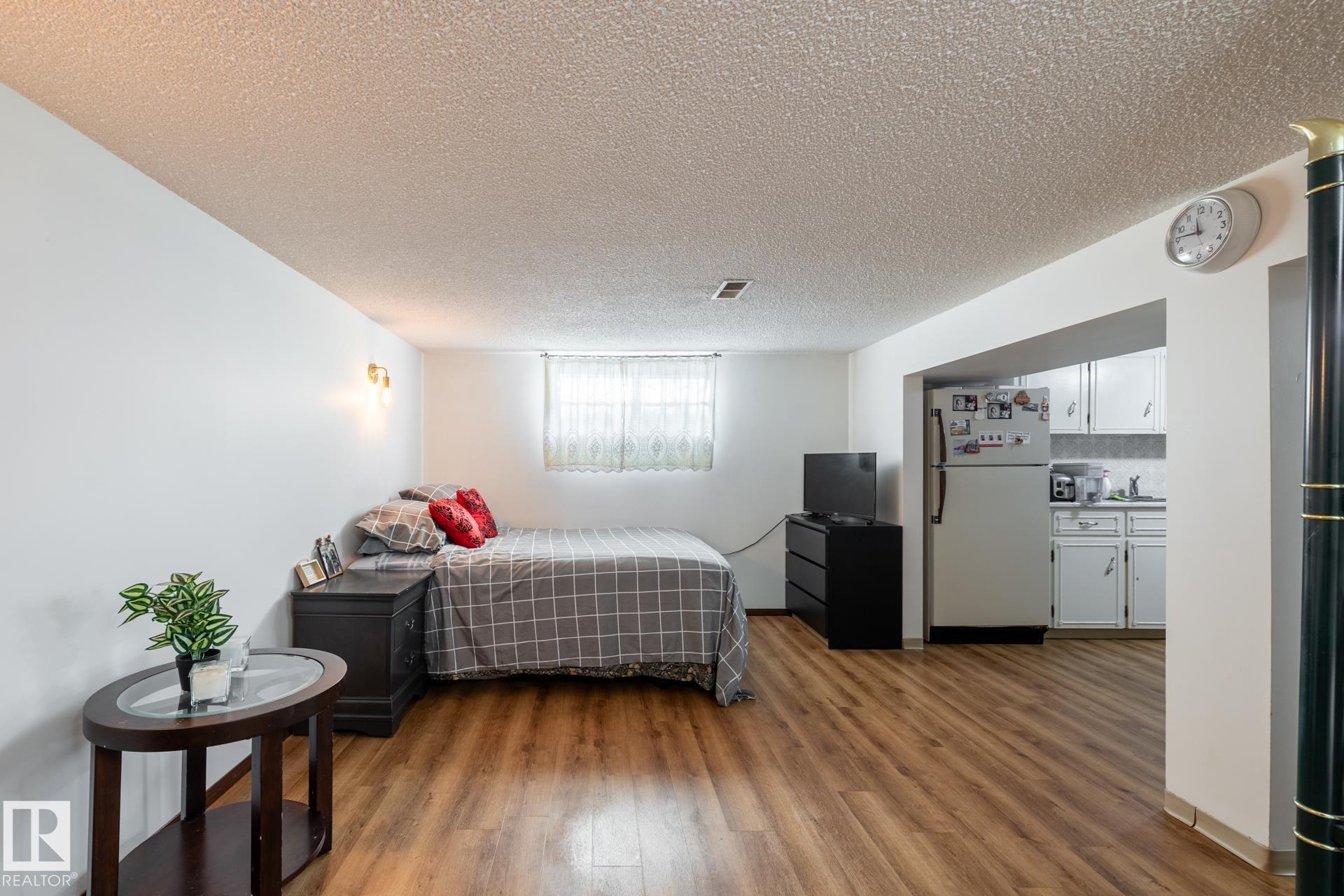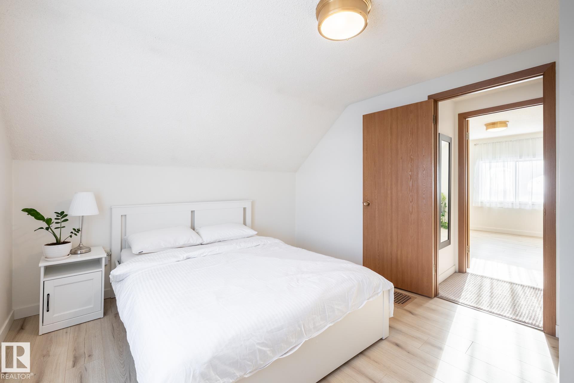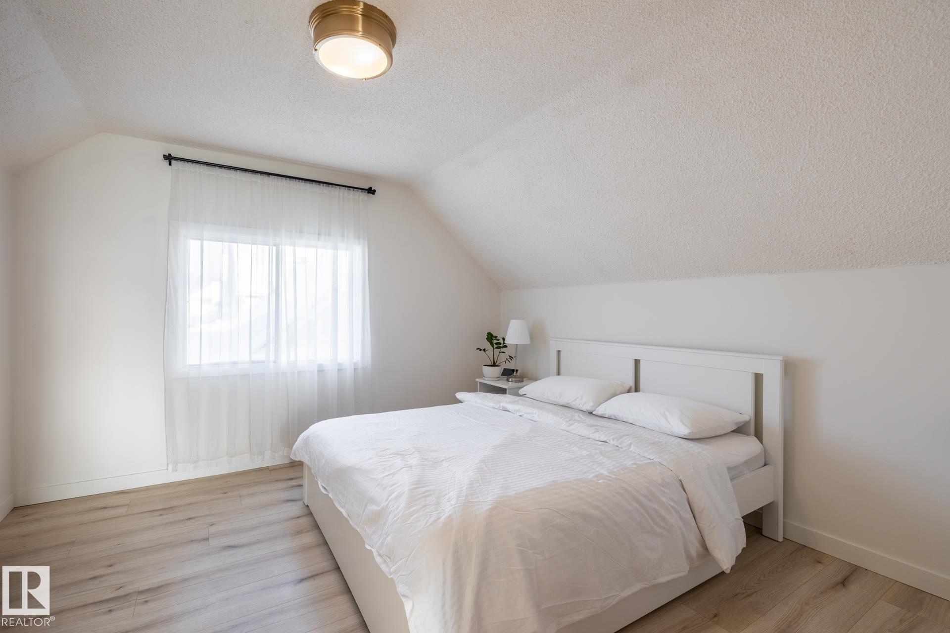This solid 1.5-storey home has been lovingly cared for and is an excellent option for a growing family, investment property, or infill opportunity. The main floor features a bright living room, kitchen, dining area, one bedroom, and a full bathroom. Upstairs, you'll find two additional generously sized bedrooms. The fully finished basement features a second kitchen, a spacious recreation room, and a 3-piece bathroom, and is equipped with its own private stacker washer. Basement is not a legal suite. A rear lane provides easy access to the double oversized detached garage, complete with a cement parking pad for additional parking. Meticulously maintained inside and out, this home is situated on a corner lot along a tree-lined street, just minutes from schools, shopping, the downtown core, and the River Valley trail system. Enjoy an easy commute to everywhere.