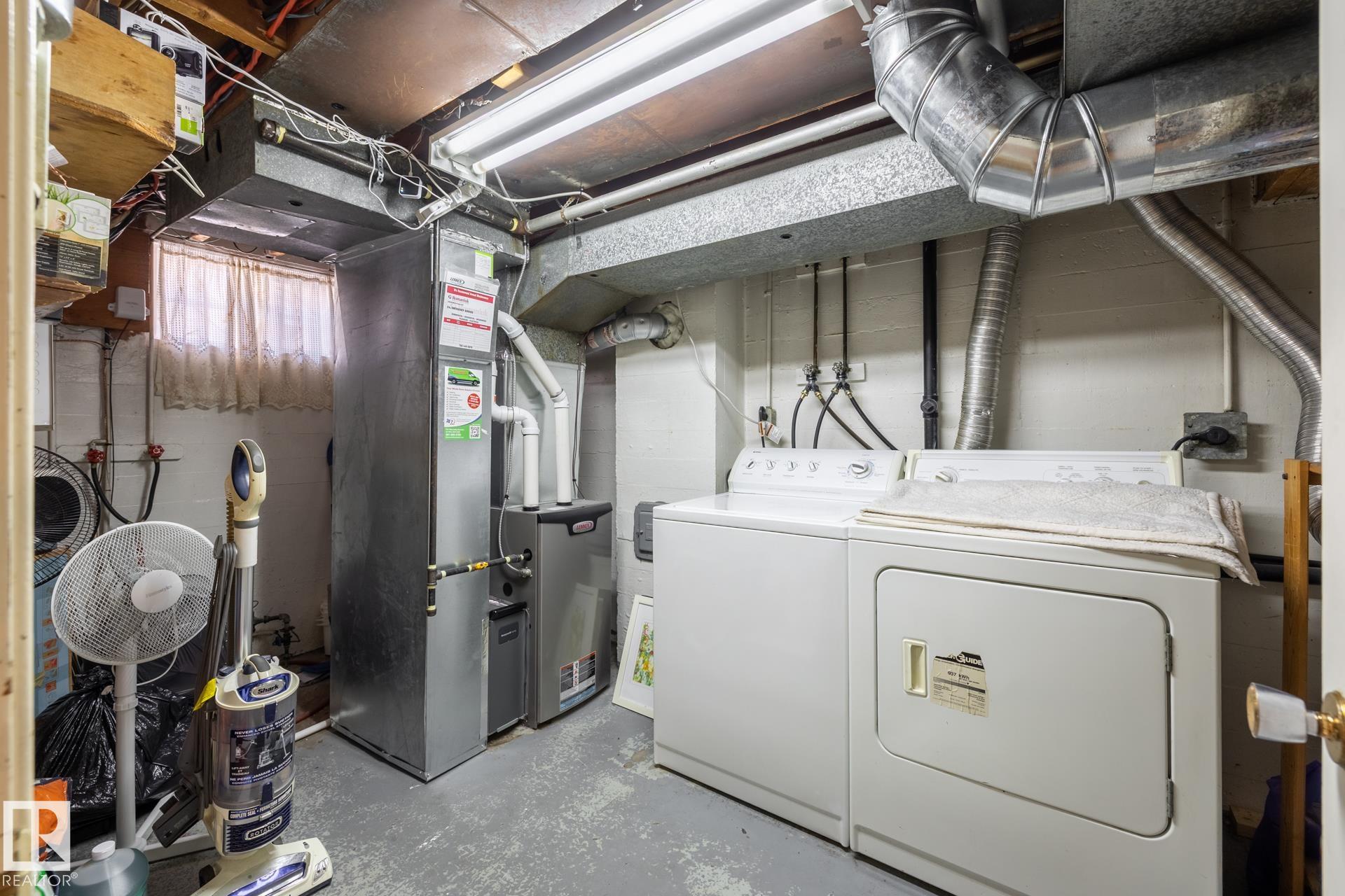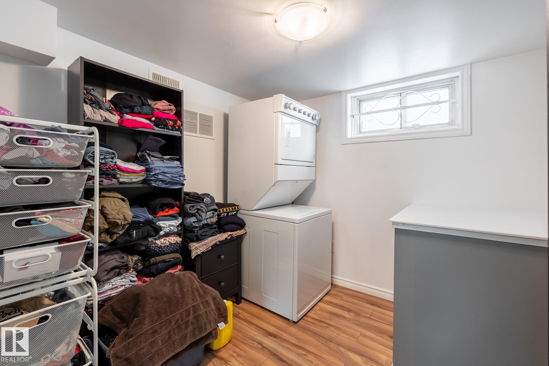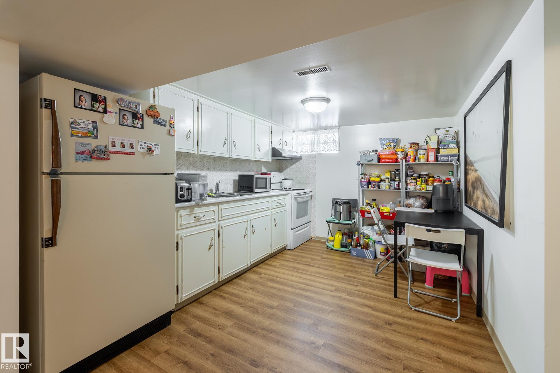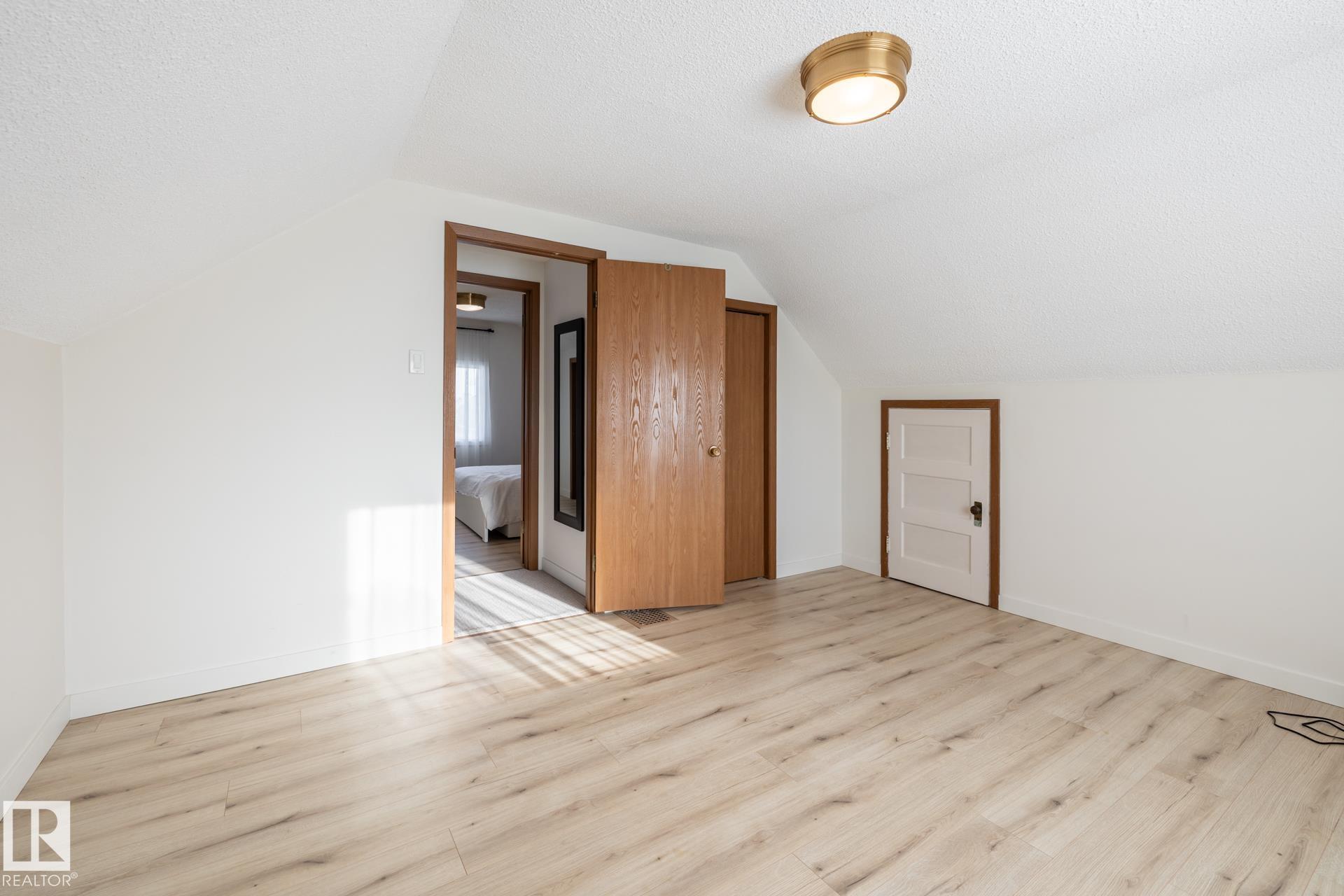This solid 1.5-storey home has been lovingly cared for and is an excellent option for a growing family, investment property, or infill opportunity. The main floor features a bright living room, kitchen, dining area, one bedroom, and a full bathroom. Upstairs, you'll find two additional generously sized bedrooms. The fully finished basement features a second kitchen, a spacious recreation room, and a 3-piece bathroom, and is equipped with its own private stacker washer. Basement is not a legal suite. A rear lane provides easy access to the double oversized detached garage, complete with a cement parking pad for additional parking. Meticulously maintained inside and out, this home is situated on a corner lot along a tree-lined street, just minutes from schools, shopping, the downtown core, and the River Valley trail system. Enjoy an easy commute to everywhere.