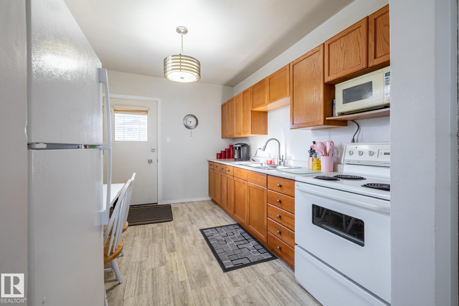 Fantastic value in Belvedere! This cozy 2 bedroom , 1 bathroom bungalow offers 716 sq.ft. of bright, functional living space on a 33'x132' lot. The spacious living room is filled with natural light, and the kitchen features plenty of cabinet space with room to dine. Both bedrooms are nicely sized, with main floor laundry for added convenience. Enjoy a large backyard perfect for gardening, pets, or summer BBQs, plus a 15'x23' single detached garage. Convenient location close to schools, parks, shopping, and quick access to Yellowhead Trail, Manning Drive, and the LRT for an easy commute anywhere in the city. Affordable, move-in ready, and full of potential!