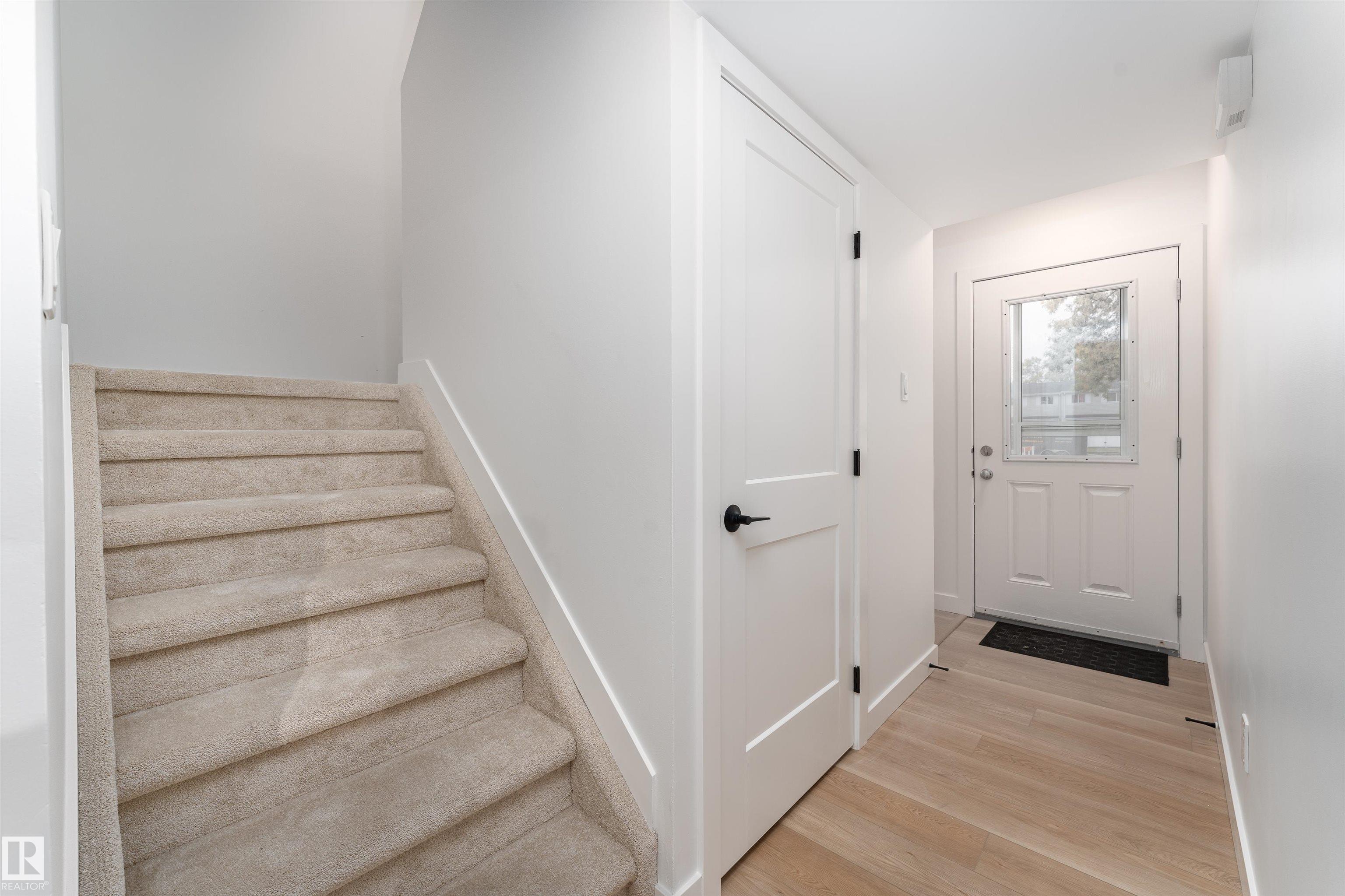 Beautifully updated from top to bottom, this stylish 3-bedroom, 1.5-bath townhouse offers nearly 1,000 sq ft of comfortable living space in the well-managed Glamorgan Estates. The main floor features a bright and spacious living room, a sleek modern kitchen, and a convenient 2-piece bath. Upstairs, you'll find three generous bedrooms and a full 4-piece bathroom. The finished basement adds a large rec room and plenty of storage space. Located in the welcoming community of Carlisle, you're steps from schools, parks, public transit, shopping, the YMCA, and more. Enjoy the privacy of a fenced yard with direct access to green space, plus assigned parking. With low condo fees and nothing left to do but move in, this one is a must-see!