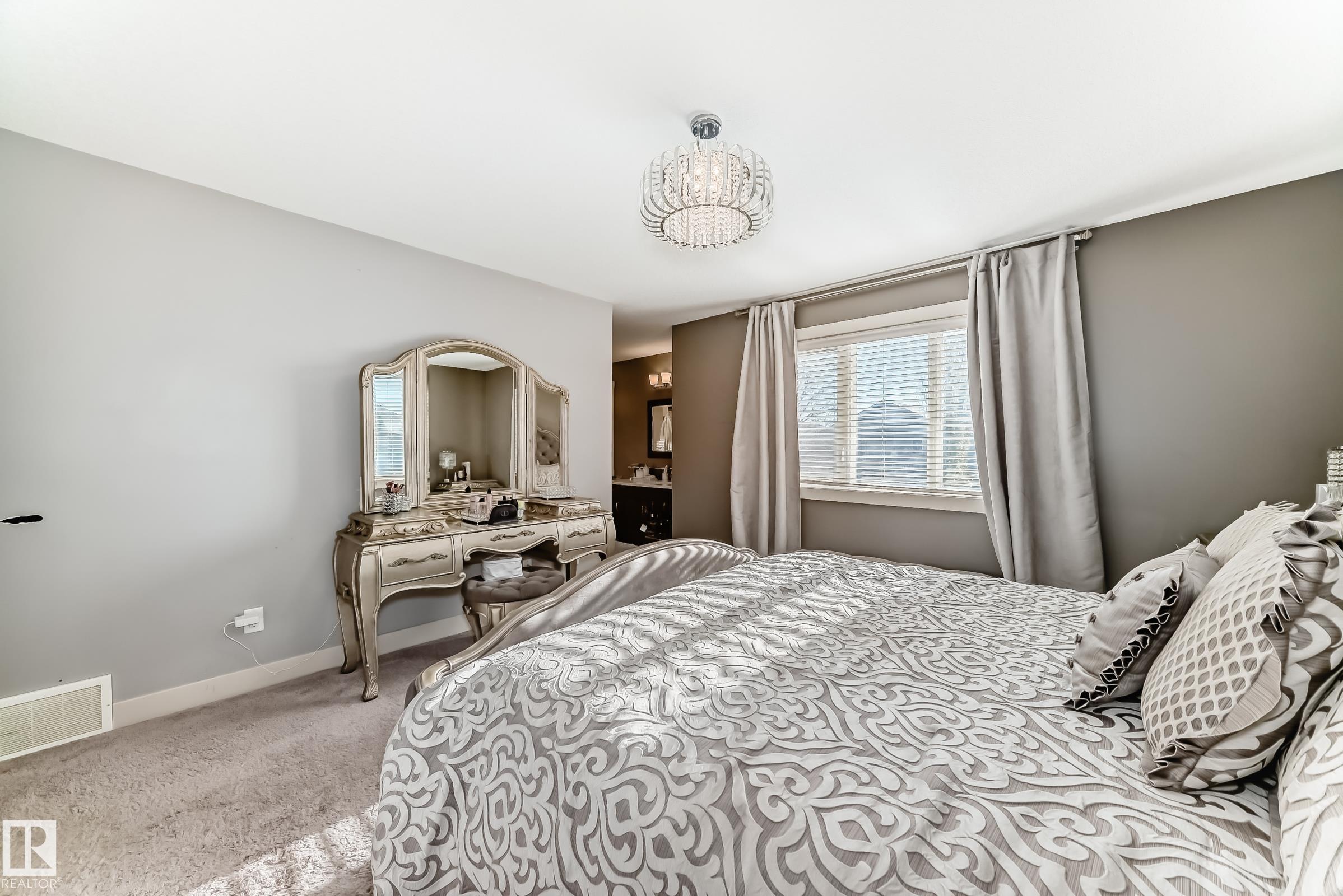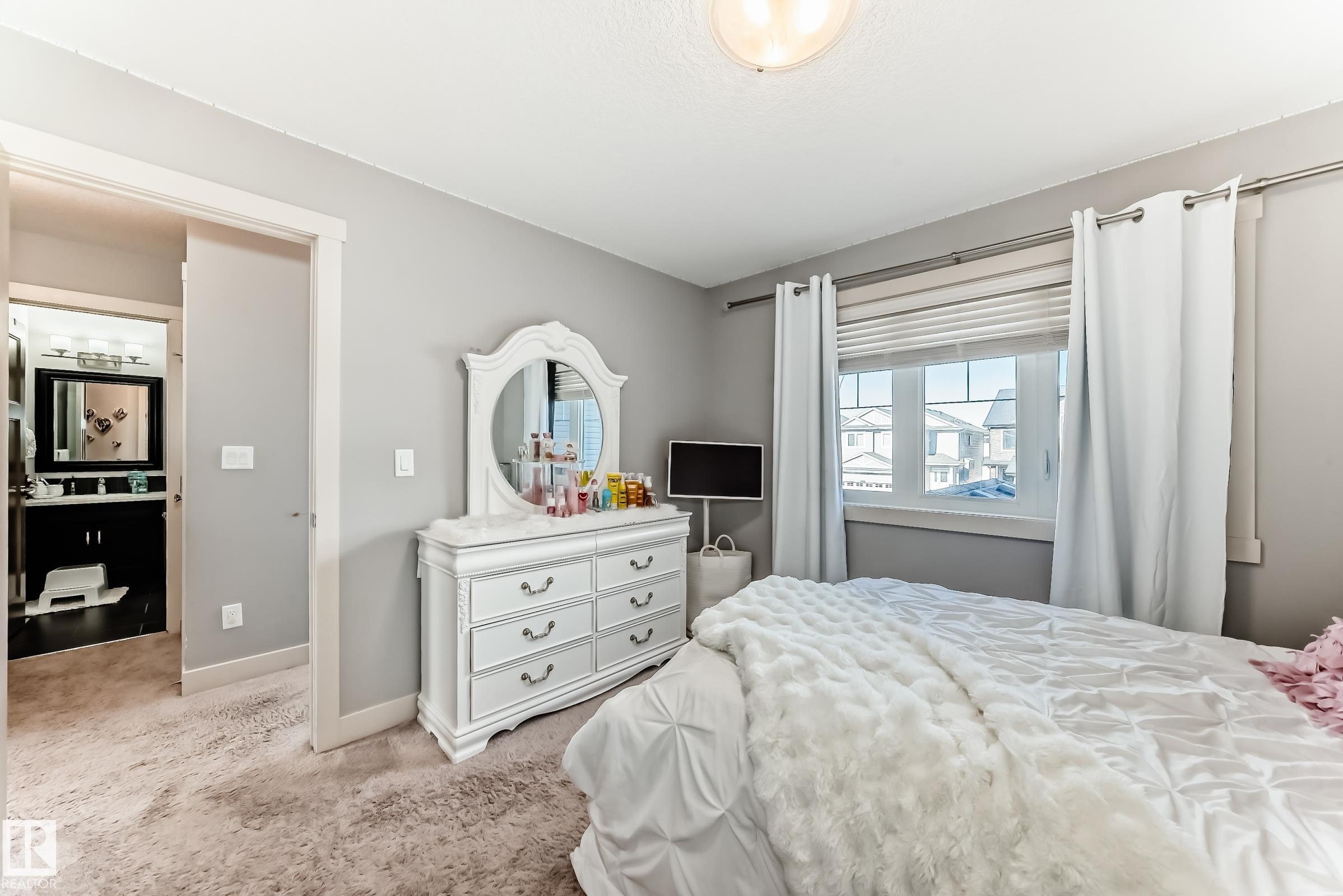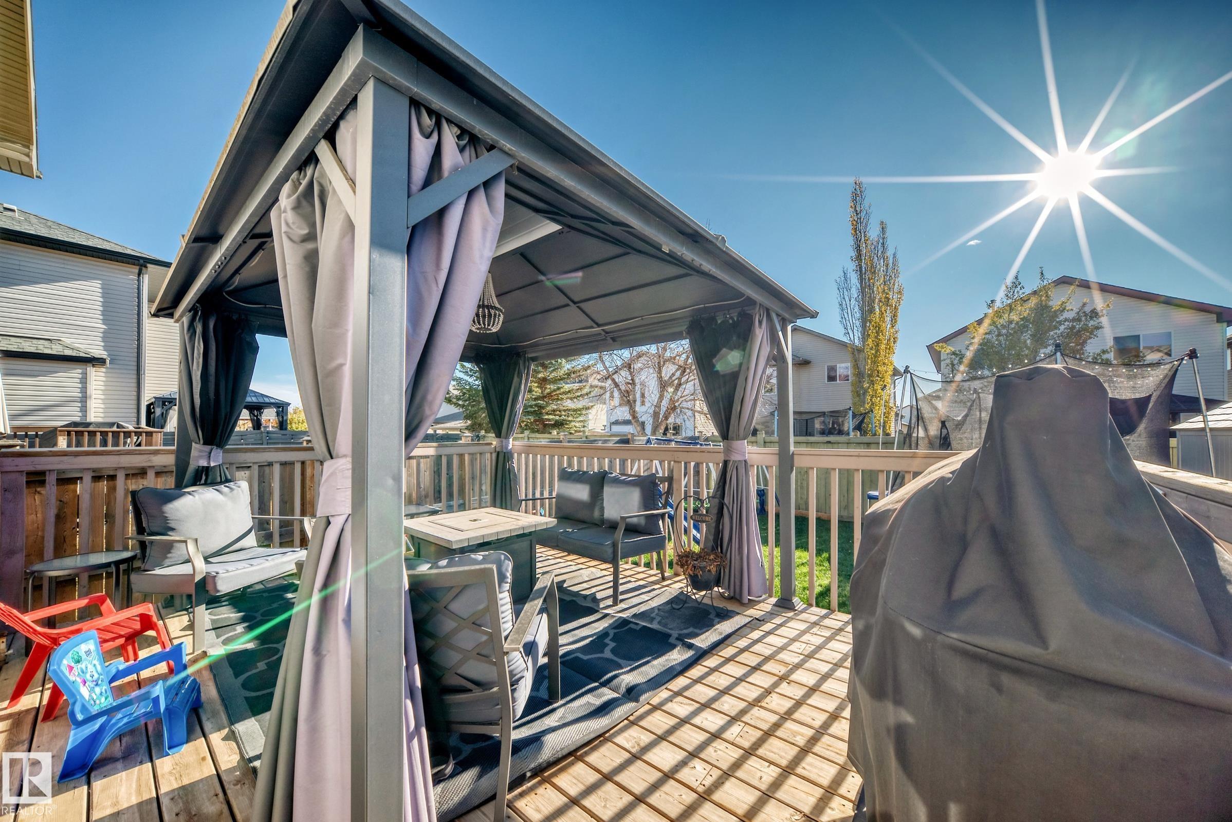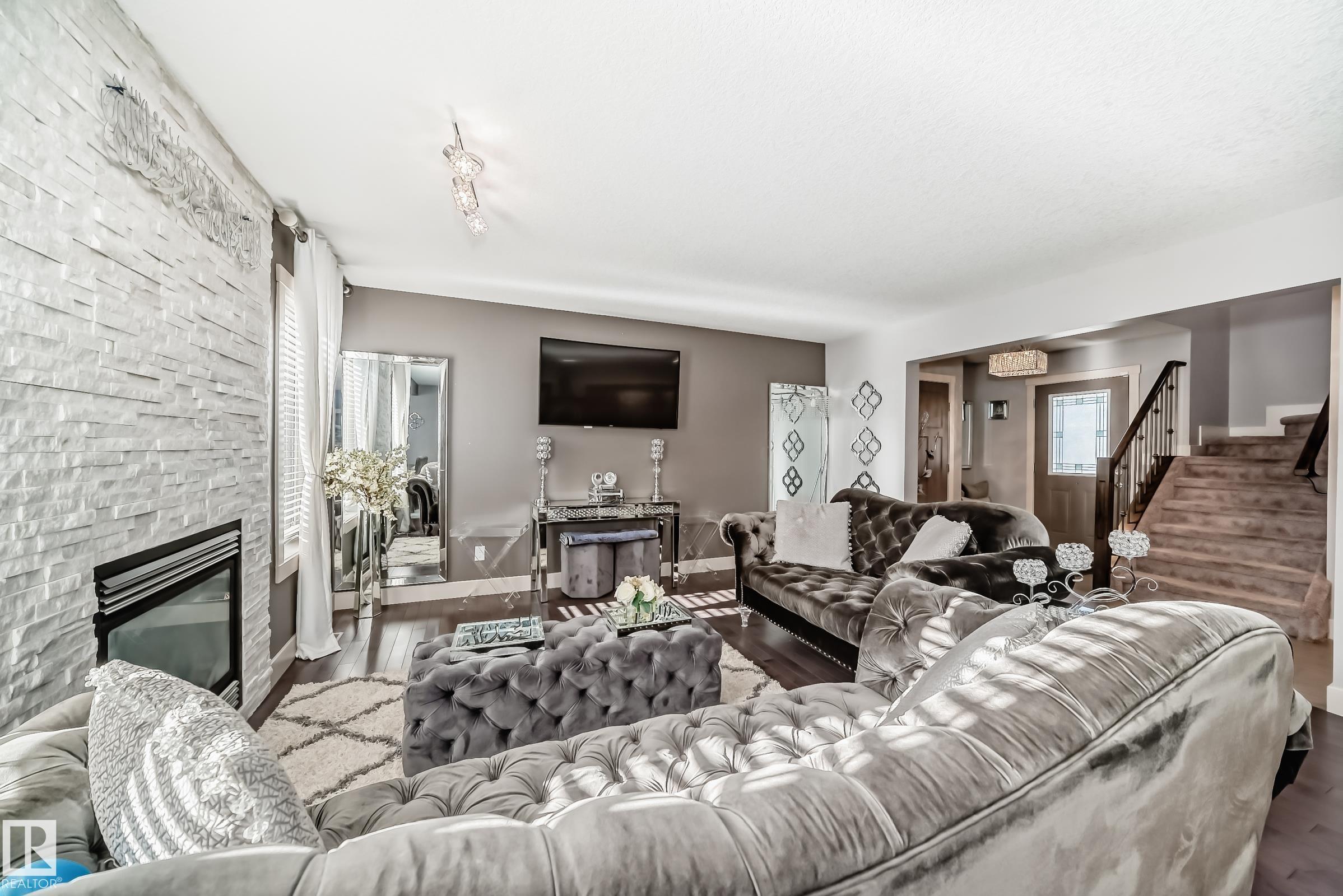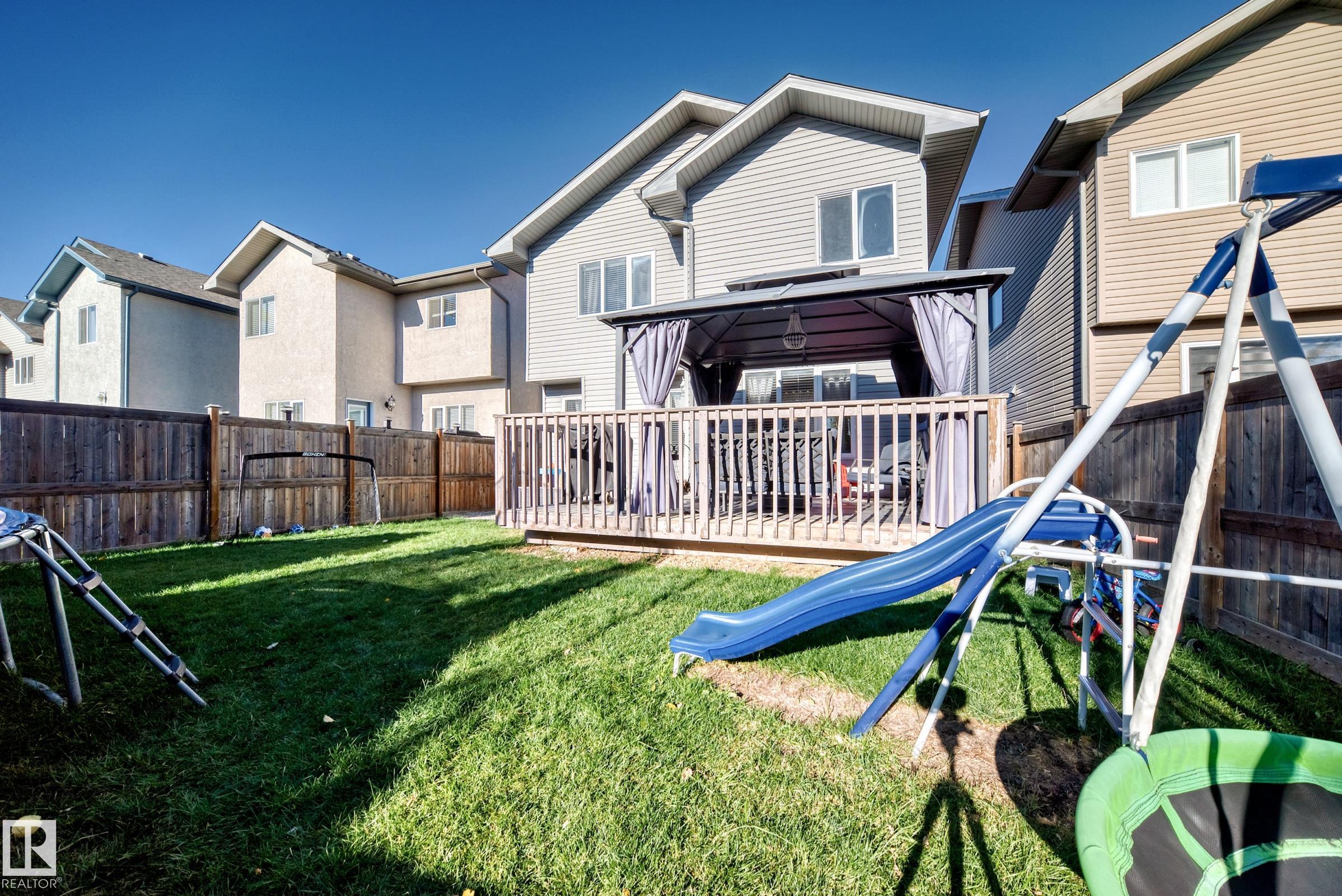 Welcome to this stunning, air conditioned family home in the desirable Carlton area! Step into an inviting entryway that sets the tone for the rest of the home. Main floor offers an open and functional layout with a bright kitchen that includes a center island, pantry, and dining nook overlooking the cozy living room with a fireplace. Convenient main-floor laundry and a 2-piece bathroom complete this level. Upstairs, you'll find three spacious bdrms and a full bathroom. The primary suite is a true retreat, featuring a ensuite with a soaker tub and separate standup shower. Finished basement offers even more living space with a large recreation area and a full bathroom--perfect for guests or family movie nights. Enjoy the outdoors in your good-sized backyard, complete with a large deck ideal for summer BBQs and relaxing evenings. HEATED double attached garage with epoxy flooring. Located close to schools, parks, shopping, Anthony Henday and other major amenities, this home is the perfect blend of comfort.