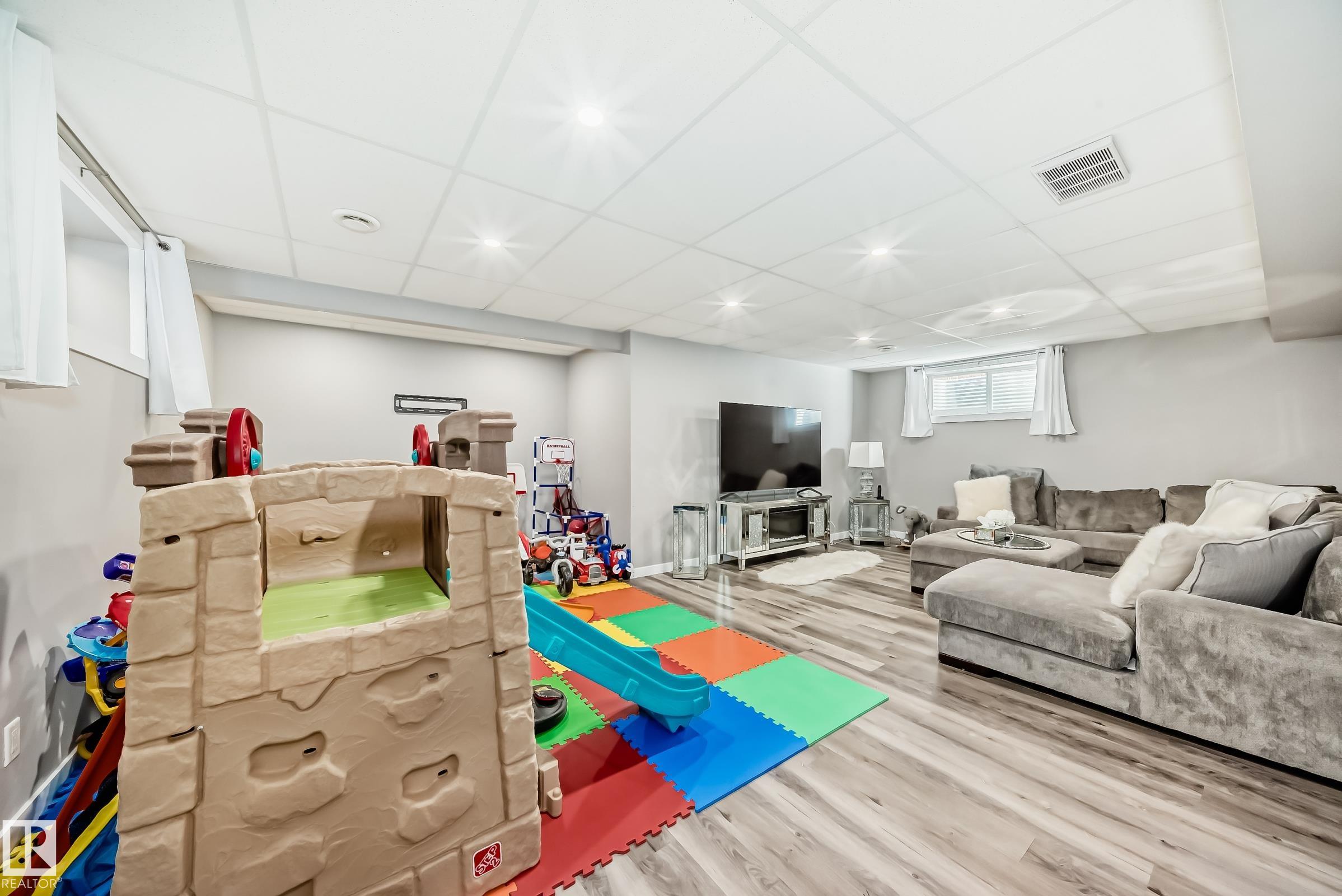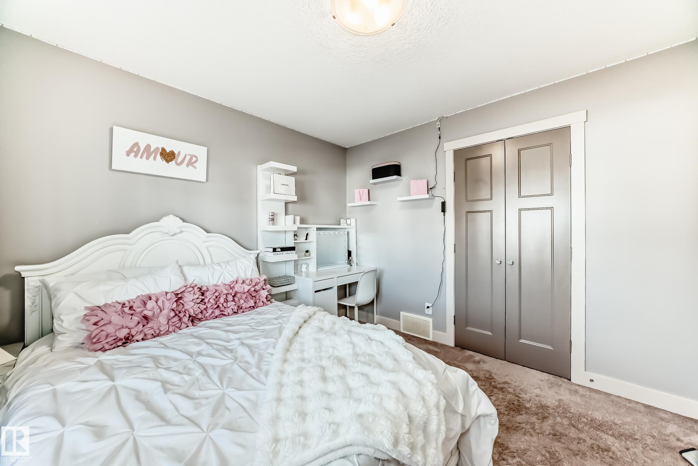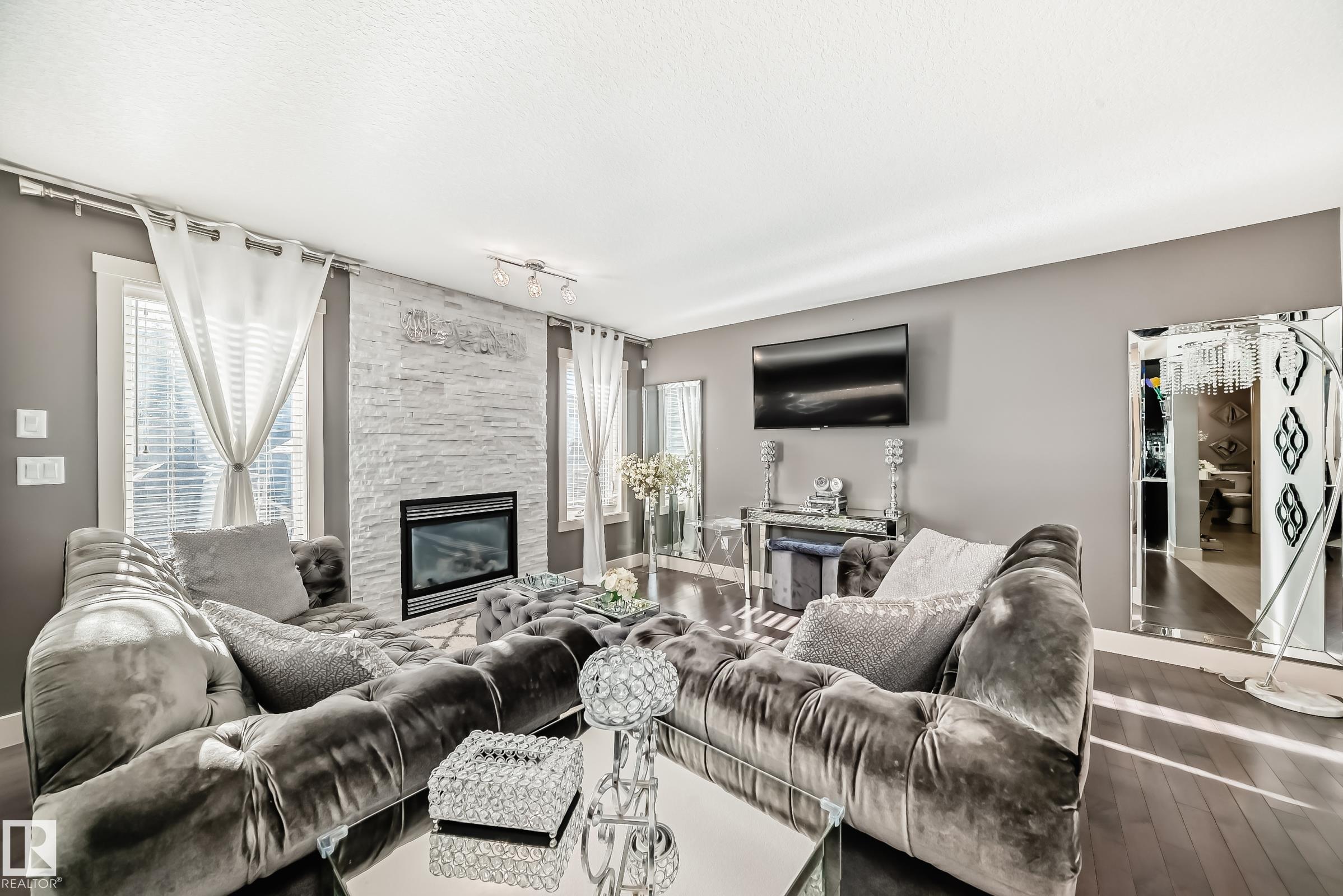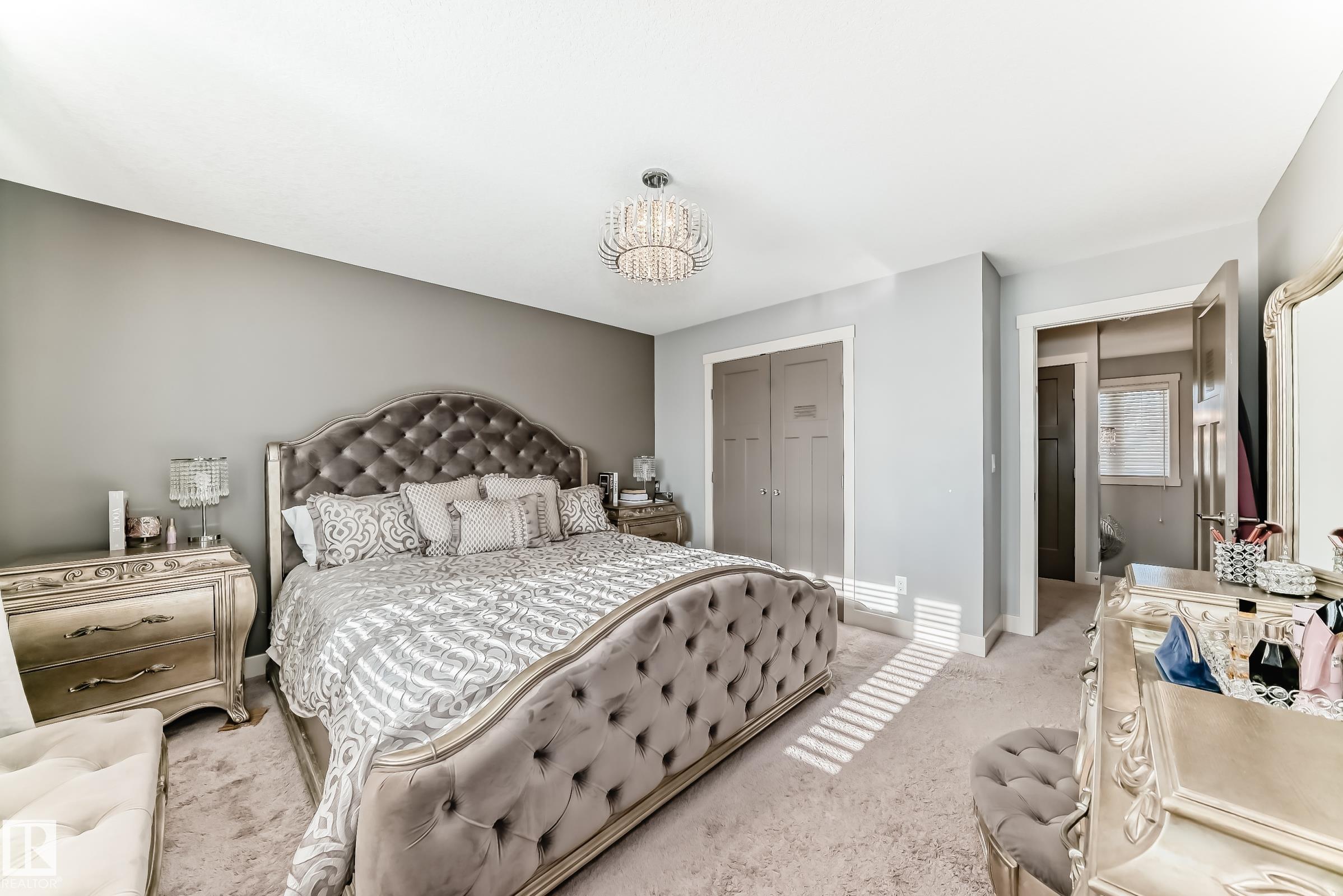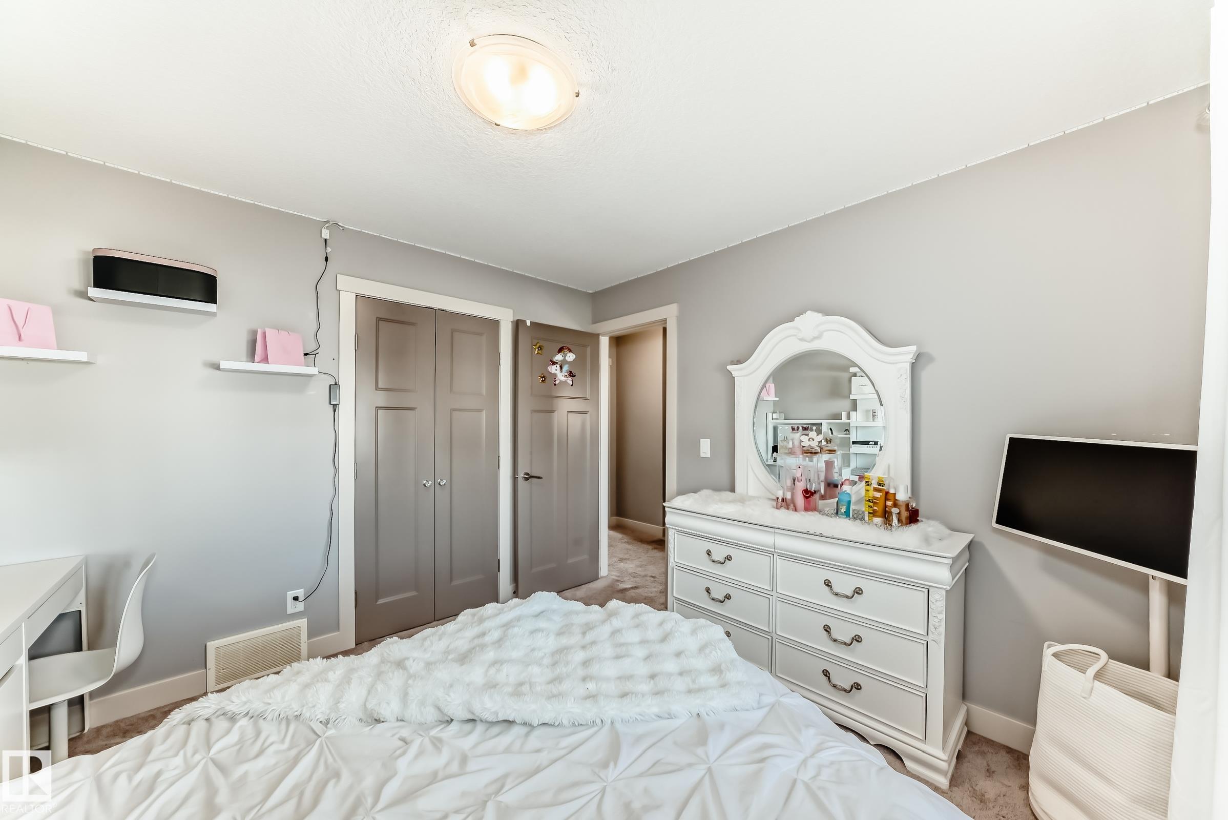 Welcome to this stunning, air conditioned family home in the desirable Carlton area! Step into an inviting entryway that sets the tone for the rest of the home. Main floor offers an open and functional layout with a bright kitchen that includes a center island, pantry, and dining nook overlooking the cozy living room with a fireplace. Convenient main-floor laundry and a 2-piece bathroom complete this level. Upstairs, you'll find three spacious bdrms and a full bathroom. The primary suite is a true retreat, featuring a ensuite with a soaker tub and separate standup shower. Finished basement offers even more living space with a large recreation area and a full bathroom--perfect for guests or family movie nights. Enjoy the outdoors in your good-sized backyard, complete with a large deck ideal for summer BBQs and relaxing evenings. HEATED double attached garage with epoxy flooring. Located close to schools, parks, shopping, Anthony Henday and other major amenities, this home is the perfect blend of comfort.