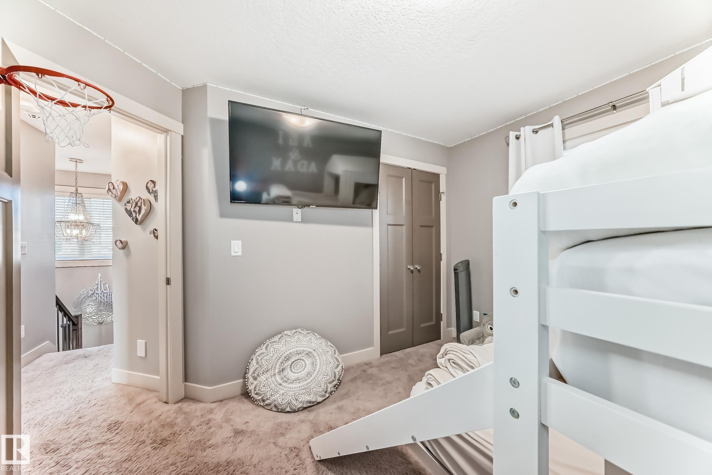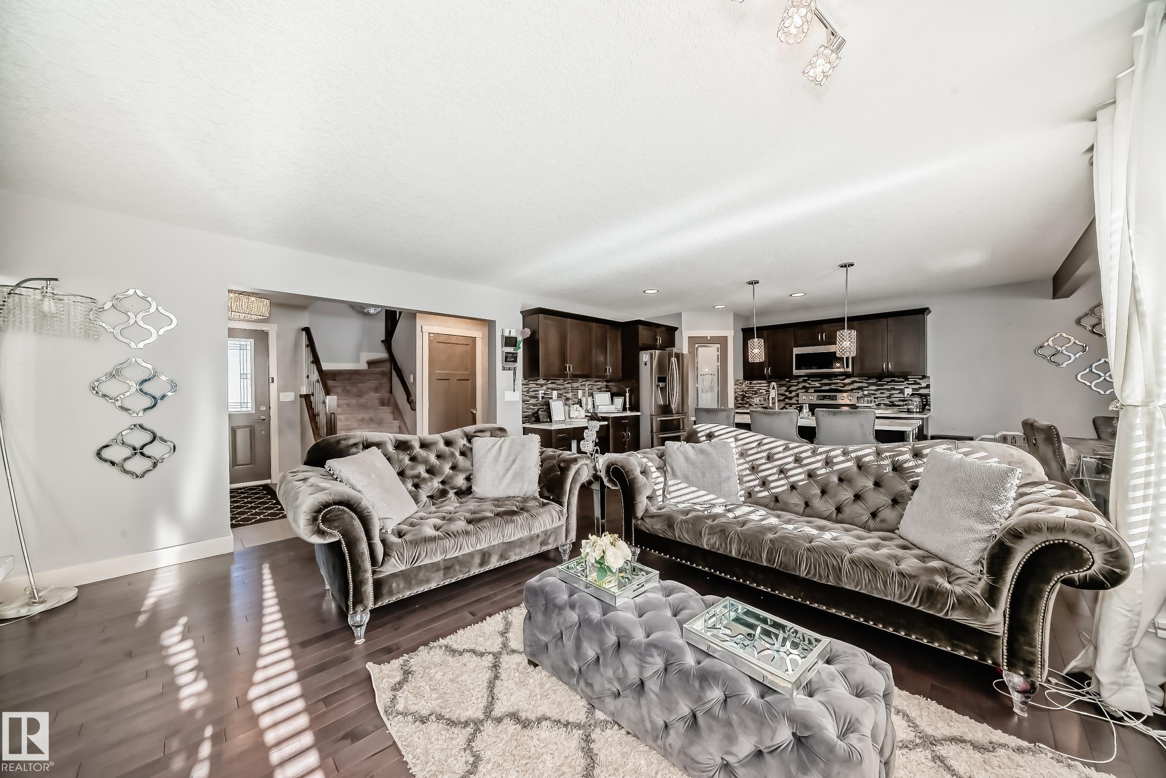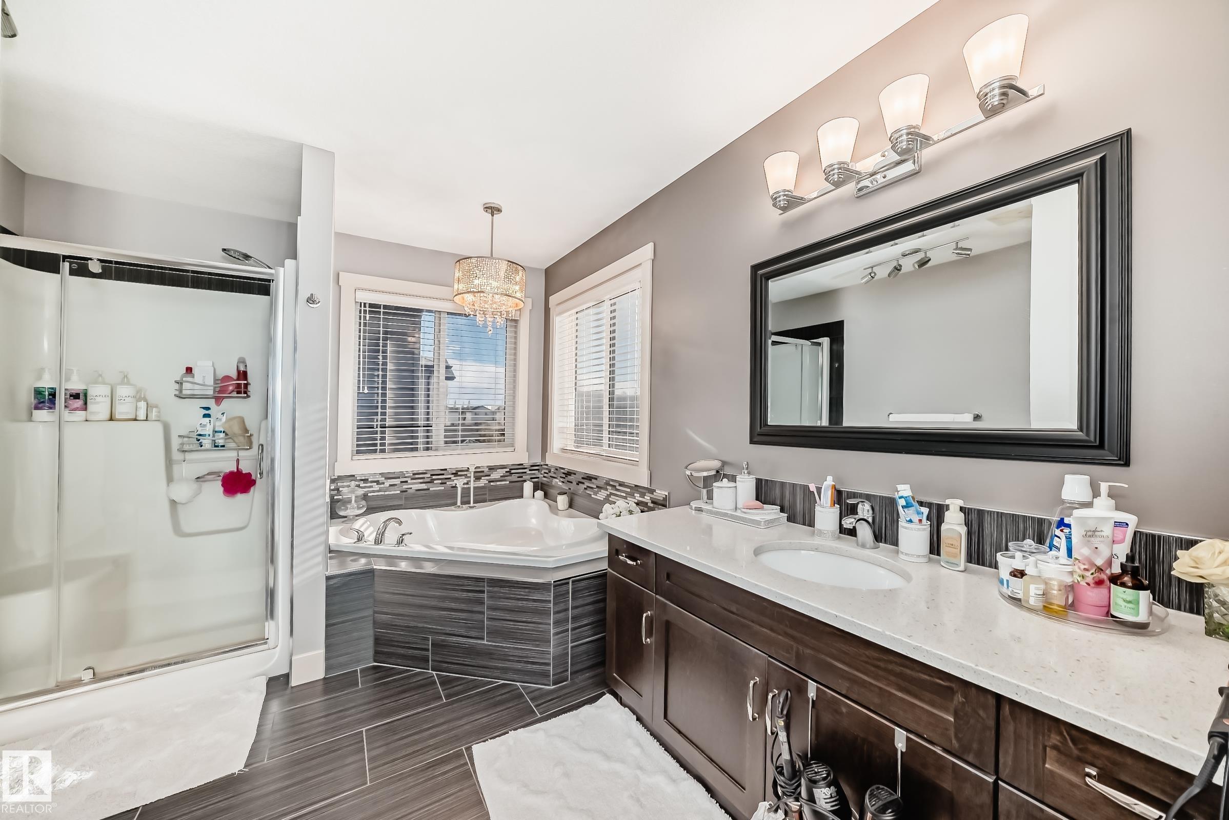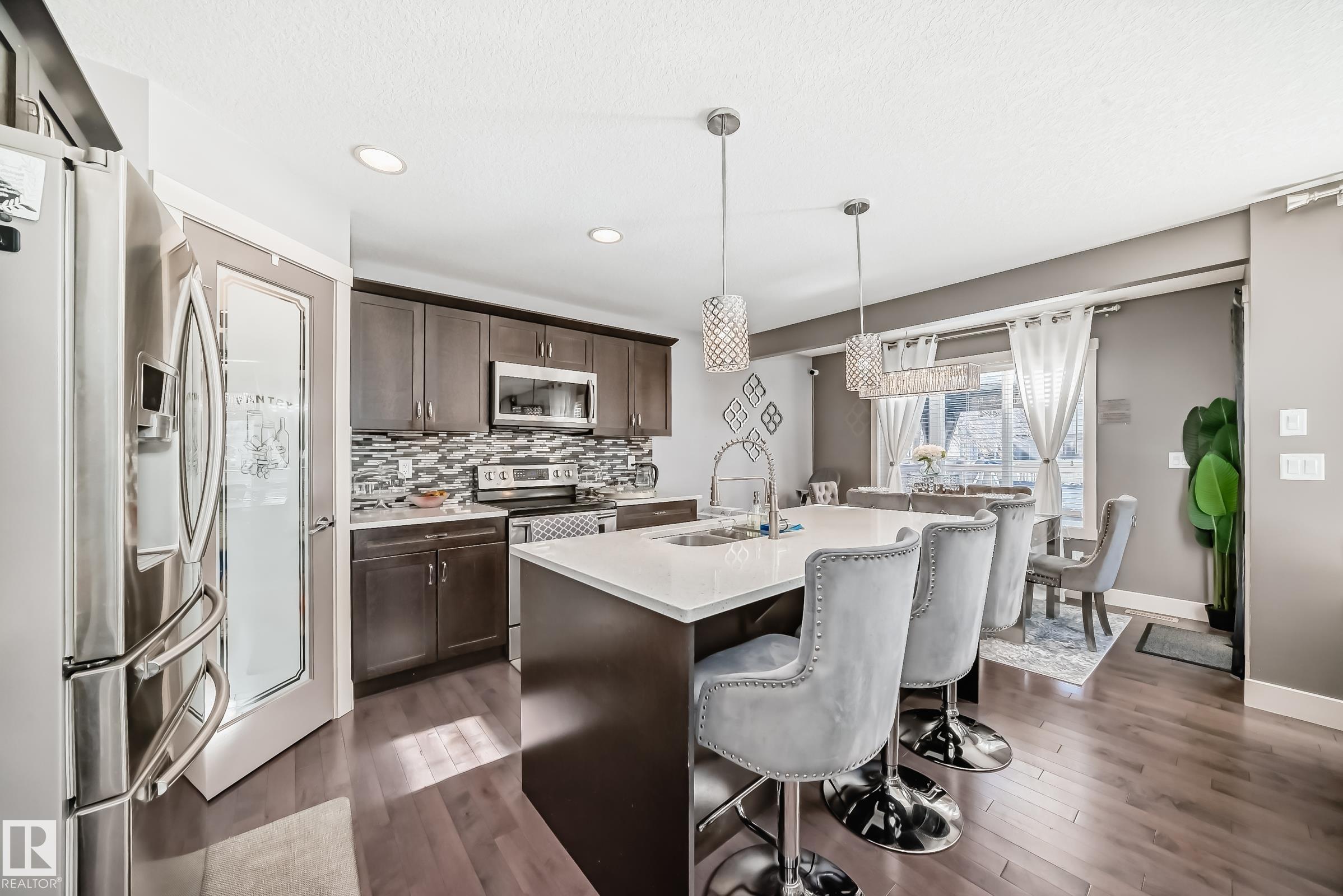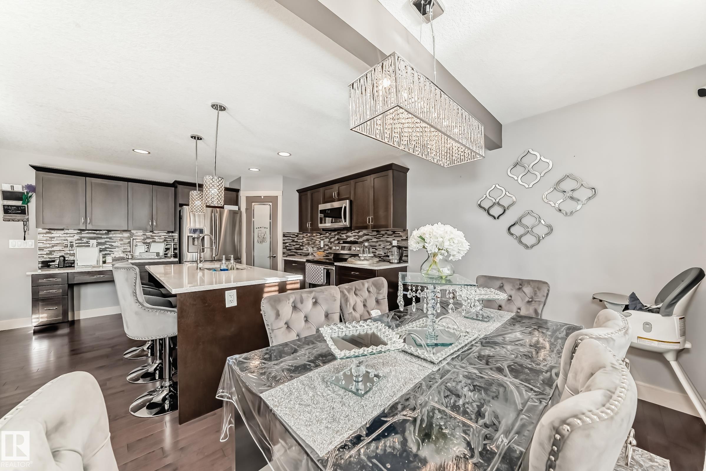 Welcome to this stunning, air conditioned family home in the desirable Carlton area! Step into an inviting entryway that sets the tone for the rest of the home. Main floor offers an open and functional layout with a bright kitchen that includes a center island, pantry, and dining nook overlooking the cozy living room with a fireplace. Convenient main-floor laundry and a 2-piece bathroom complete this level. Upstairs, you'll find three spacious bdrms and a full bathroom. The primary suite is a true retreat, featuring a ensuite with a soaker tub and separate standup shower. Finished basement offers even more living space with a large recreation area and a full bathroom--perfect for guests or family movie nights. Enjoy the outdoors in your good-sized backyard, complete with a large deck ideal for summer BBQs and relaxing evenings. HEATED double attached garage with epoxy flooring. Located close to schools, parks, shopping, Anthony Henday and other major amenities, this home is the perfect blend of comfort.