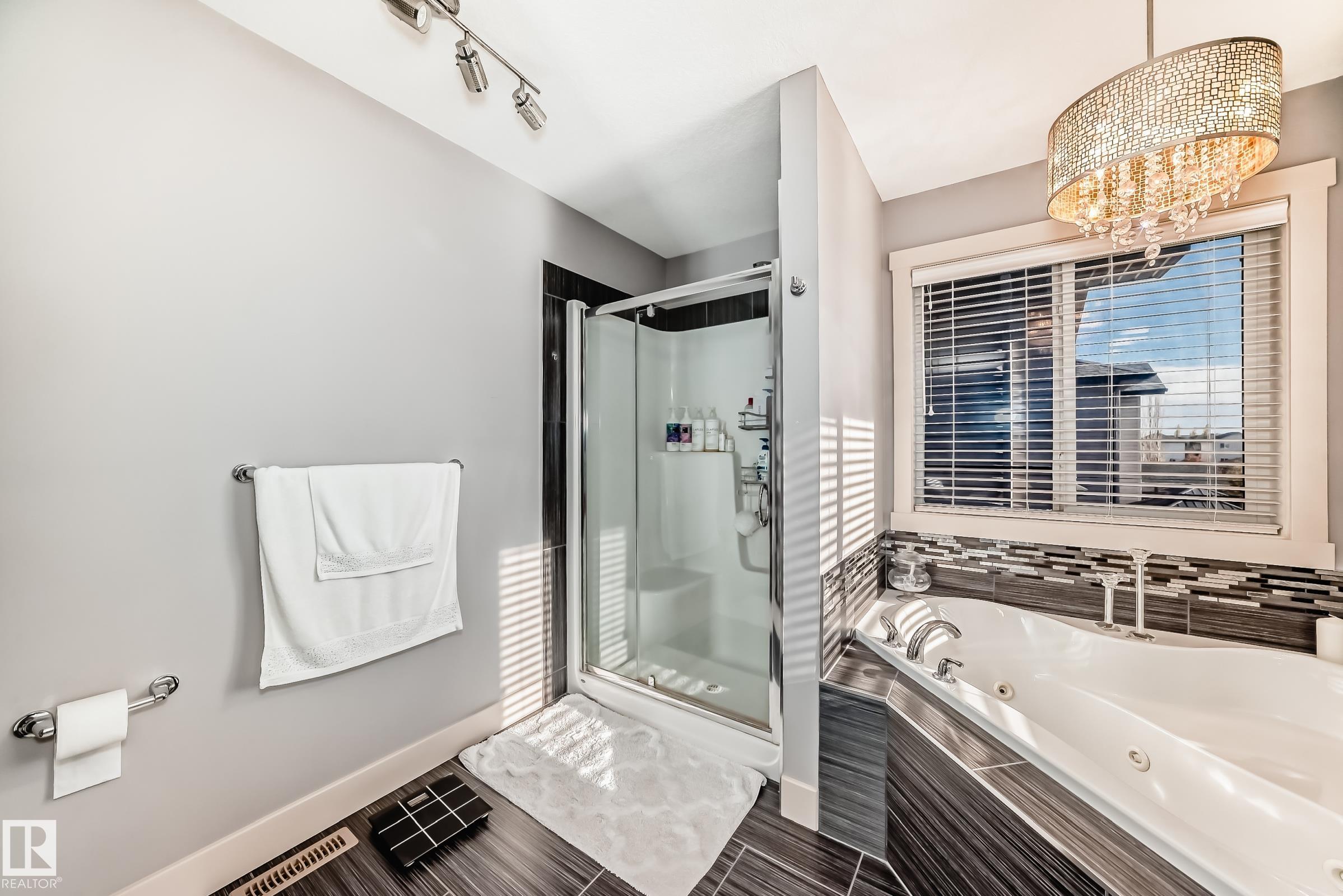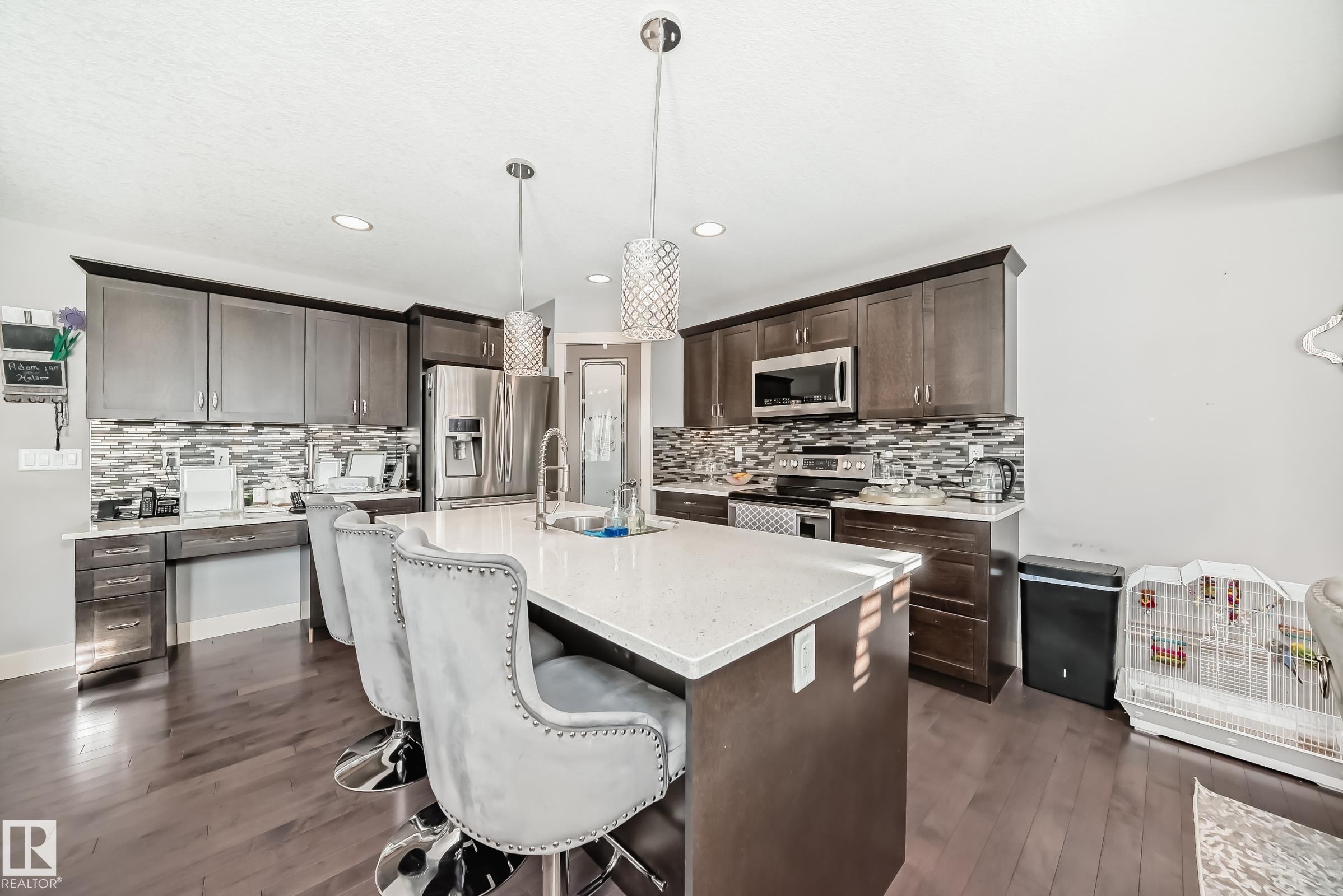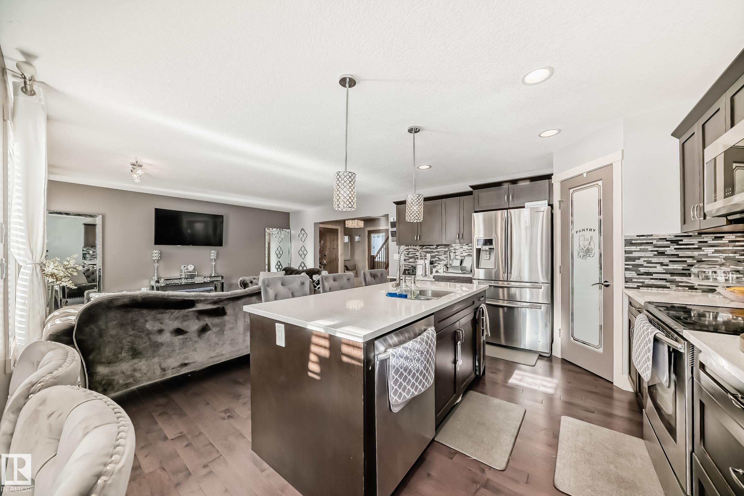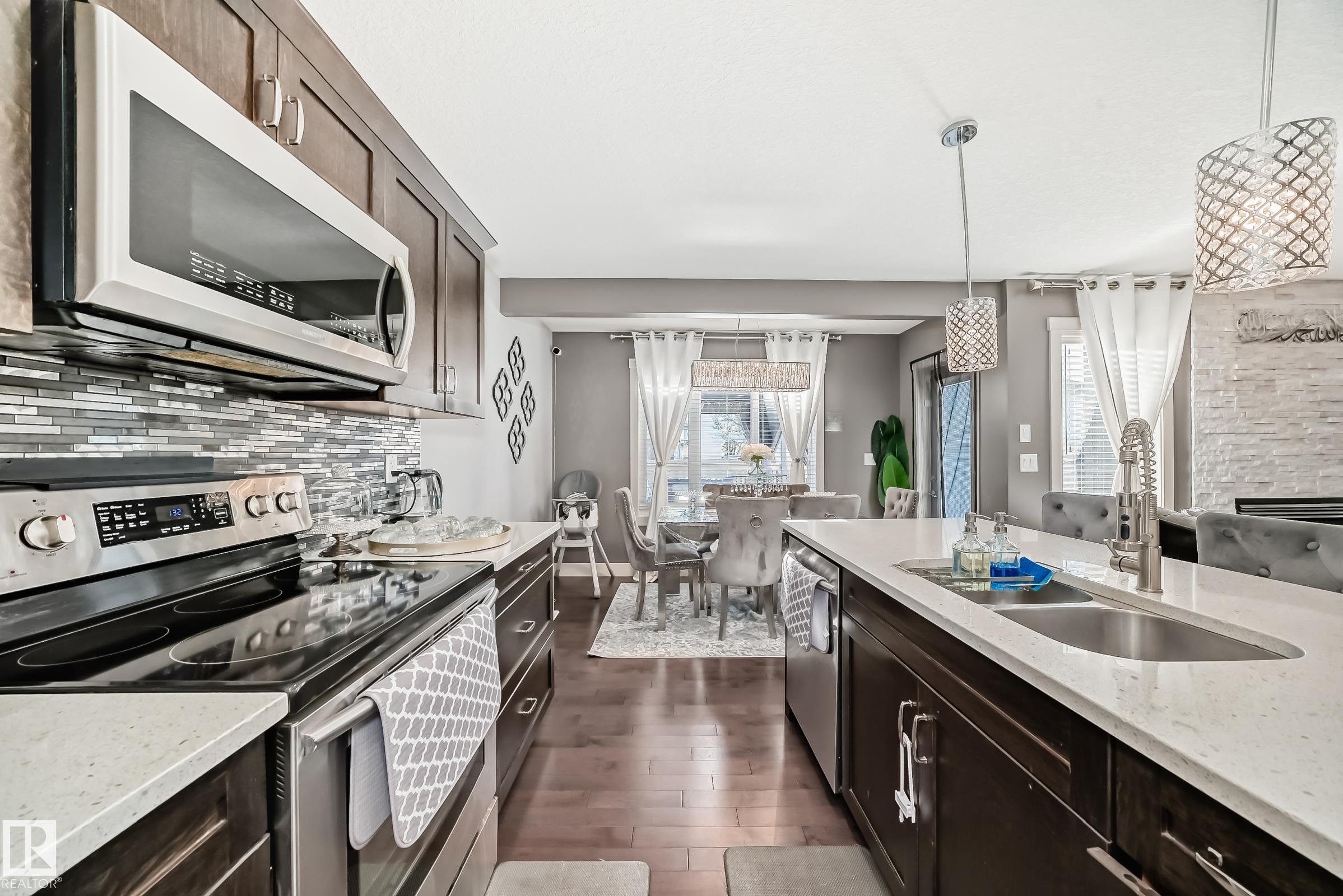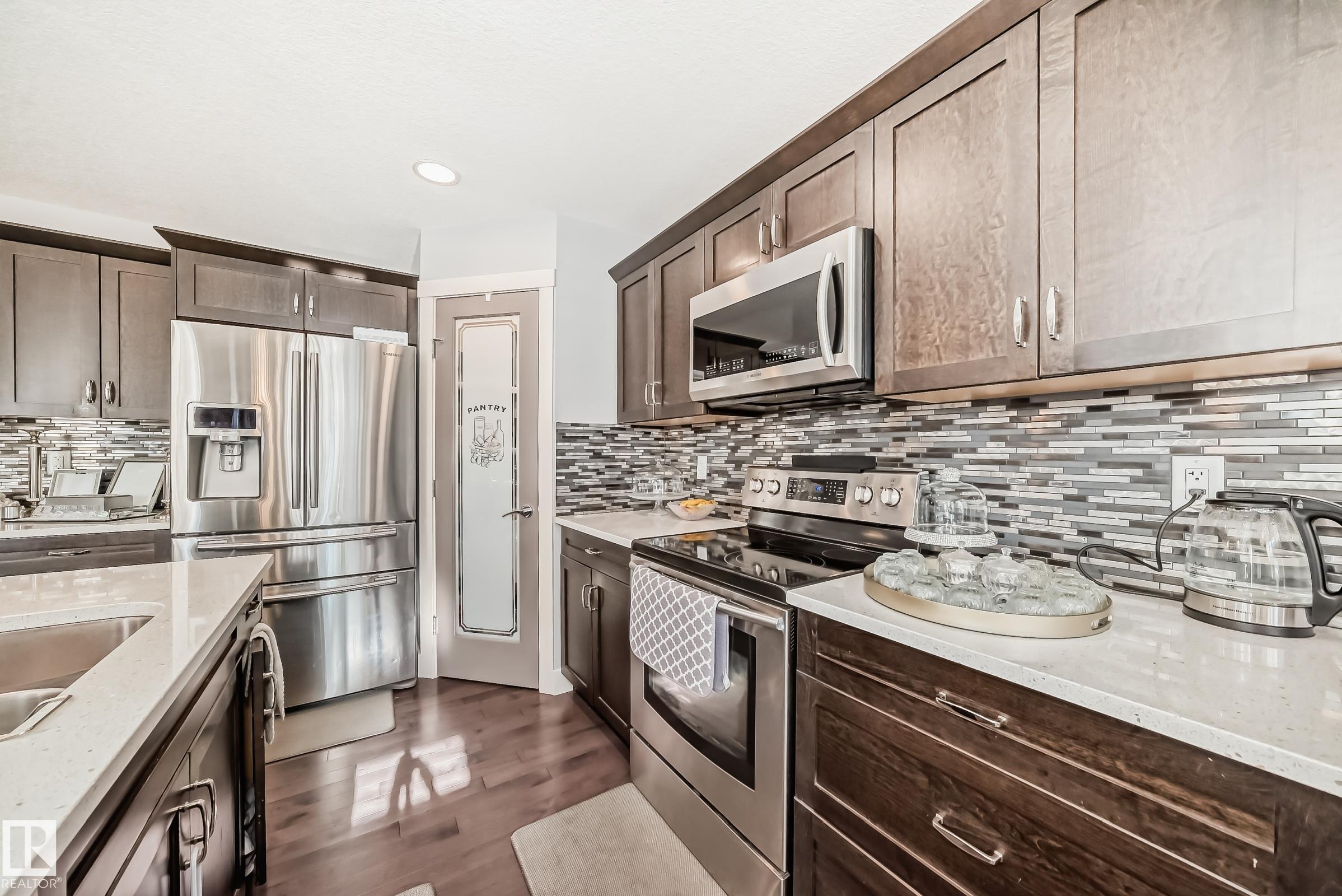 Welcome to this stunning, air conditioned family home in the desirable Carlton area! Step into an inviting entryway that sets the tone for the rest of the home. Main floor offers an open and functional layout with a bright kitchen that includes a center island, pantry, and dining nook overlooking the cozy living room with a fireplace. Convenient main-floor laundry and a 2-piece bathroom complete this level. Upstairs, you'll find three spacious bdrms and a full bathroom. The primary suite is a true retreat, featuring a ensuite with a soaker tub and separate standup shower. Finished basement offers even more living space with a large recreation area and a full bathroom--perfect for guests or family movie nights. Enjoy the outdoors in your good-sized backyard, complete with a large deck ideal for summer BBQs and relaxing evenings. HEATED double attached garage with epoxy flooring. Located close to schools, parks, shopping, Anthony Henday and other major amenities, this home is the perfect blend of comfort.