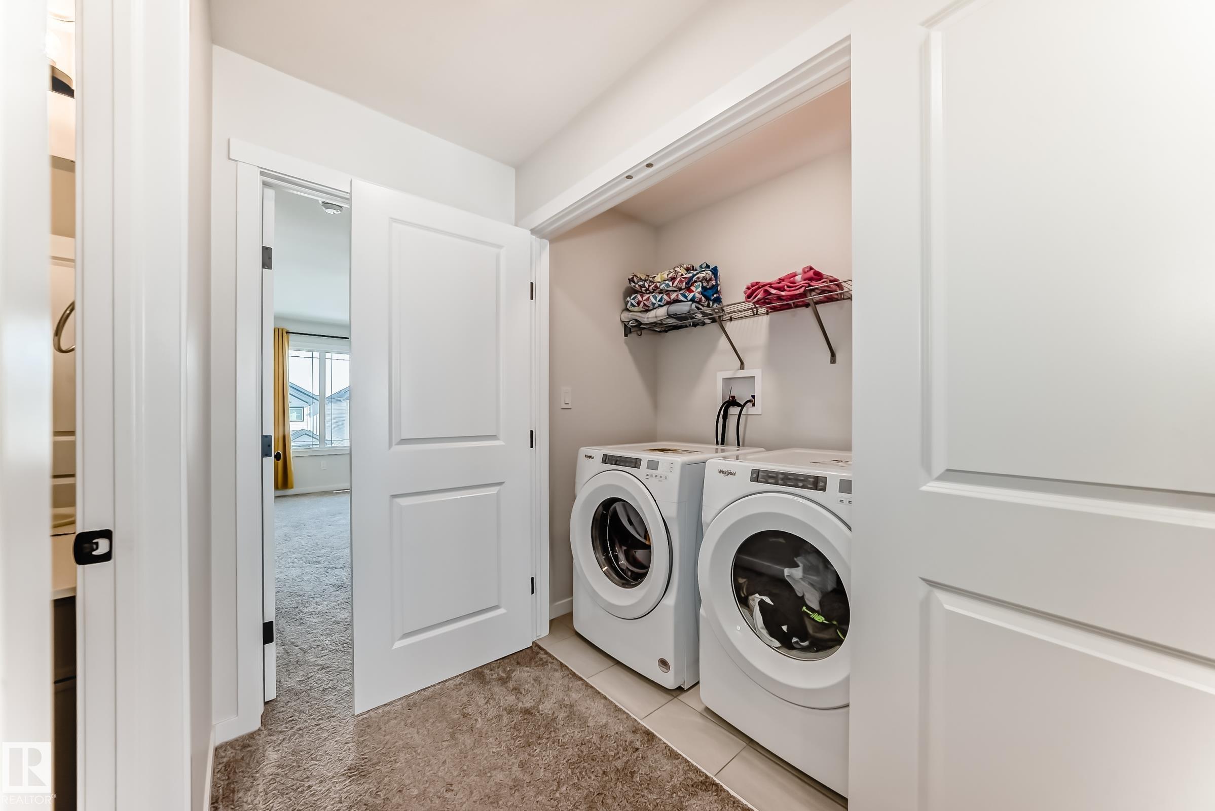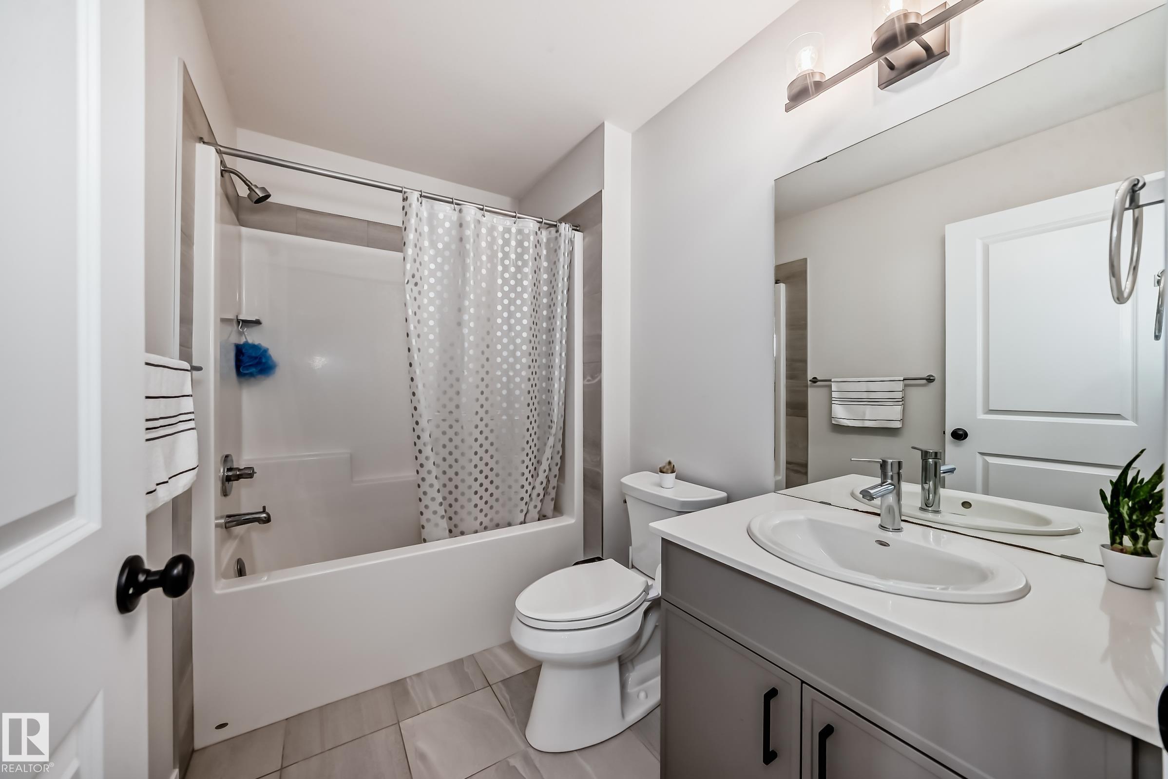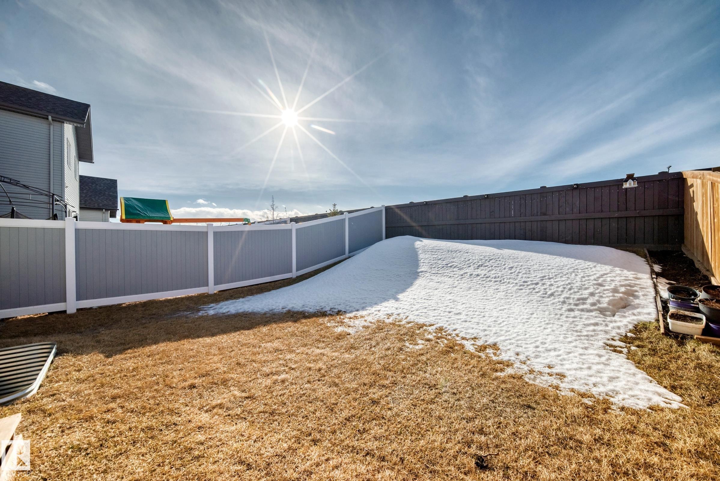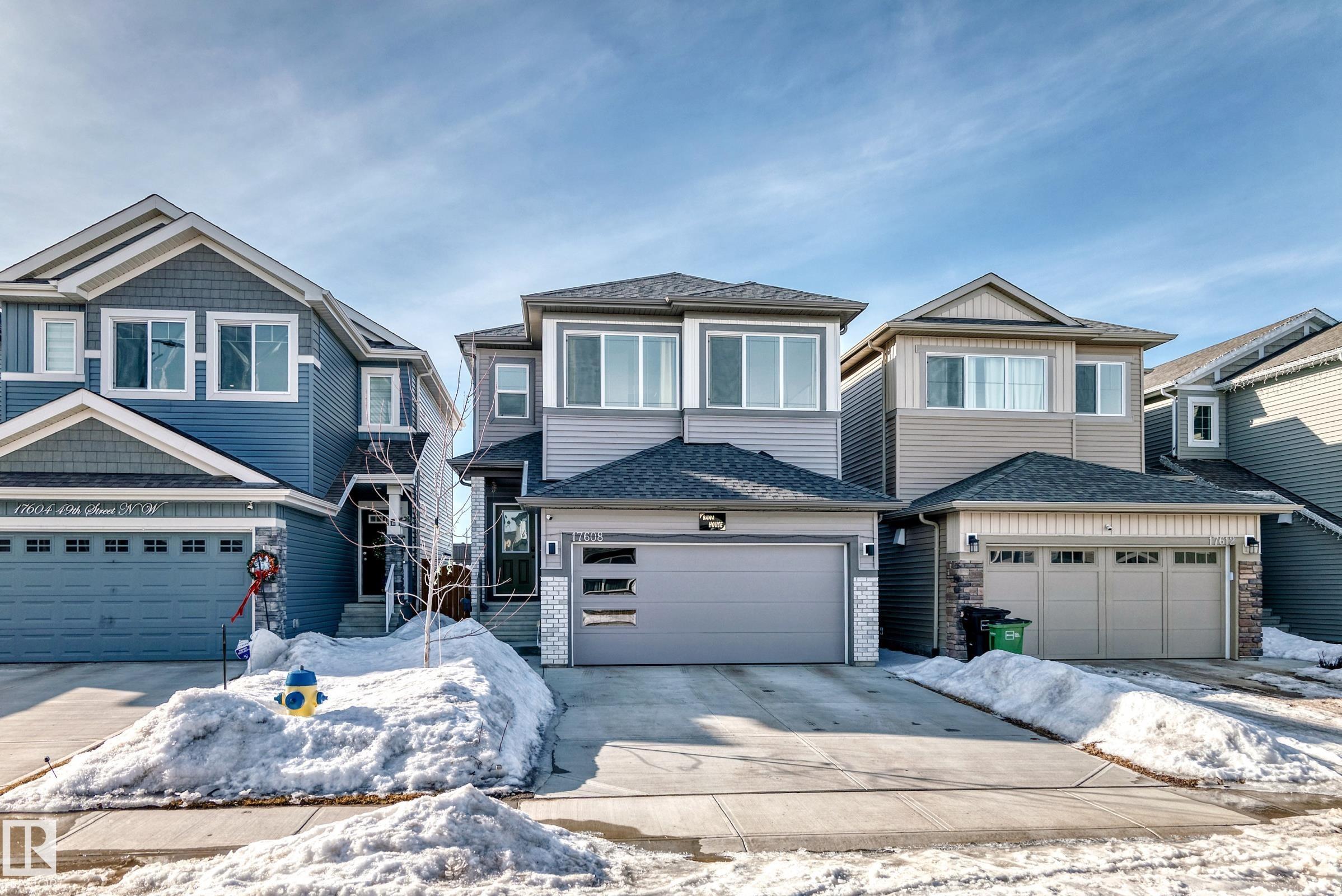 Welcome to this beautiful single-family home built by Coventry Homes. Offering just under 2200 SQ/FT, this stunning 3 bedroom, 2.5 bath home has it all and is located in the family-friendly community of Cy Becker. The main floor showcases durable laminate flooring throughout and an open-concept kitchen, living, and dining area. The living room features an electric fireplace with mantle and large picturesque windows. The spacious kitchen includes stylish cabinets, an under-mount sink, stainless steel appliances with built-in microwave and chimney-style hood fan, quartz countertops, and a huge island perfect for entertaining. A 2-piece bath and iron-railed staircase complete the main level. Upstairs offers a large central bonus room, convenient upper laundry, a 4-piece main bath with quartz vanity, two additional spacious bedrooms, and a primary bedroom with walk-in closet and 5-piece ensuite featuring quartz vanity, dual sinks, soaker tub, and separate shower. Enjoy fully landscaped & fenced yard.