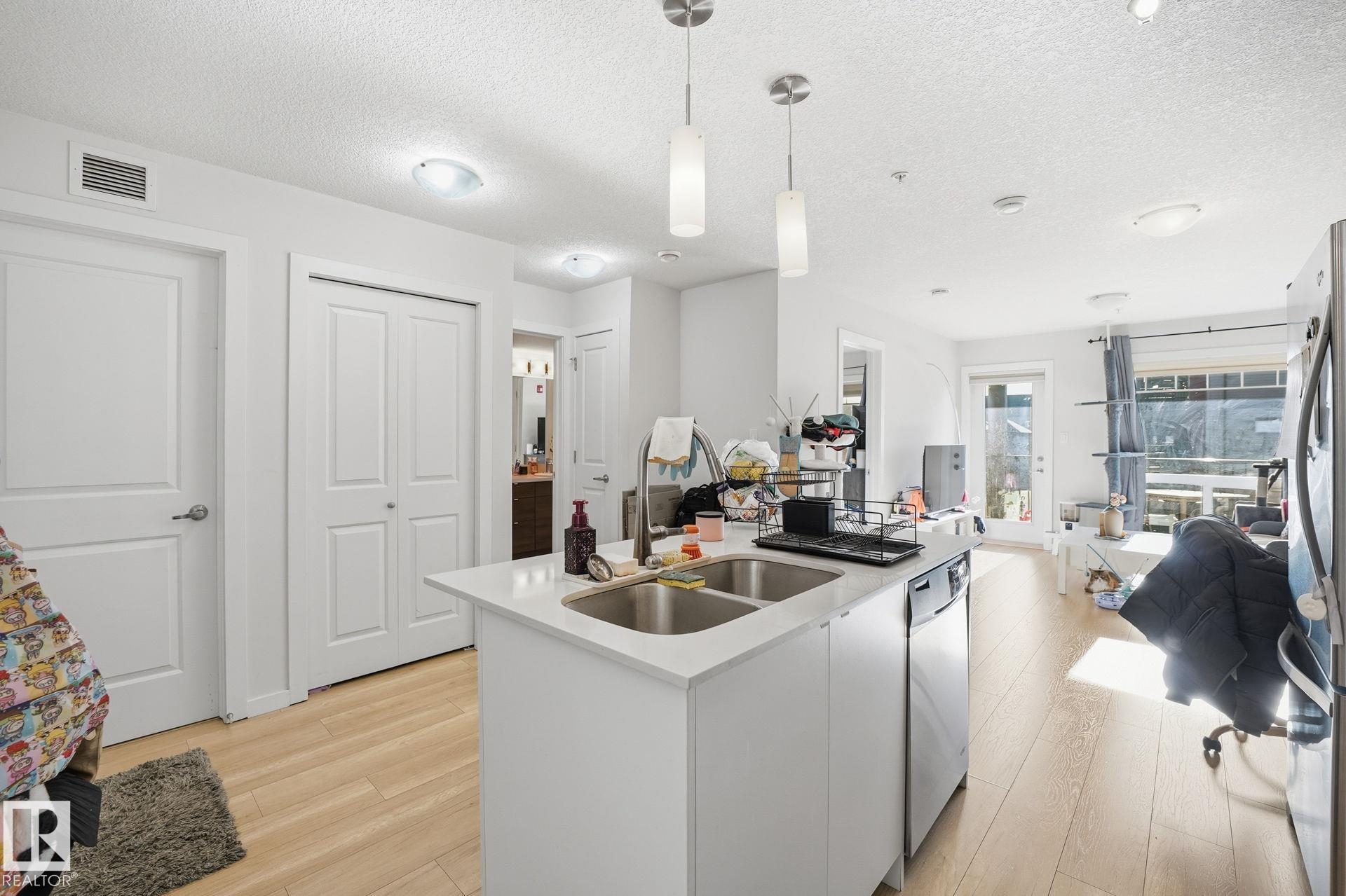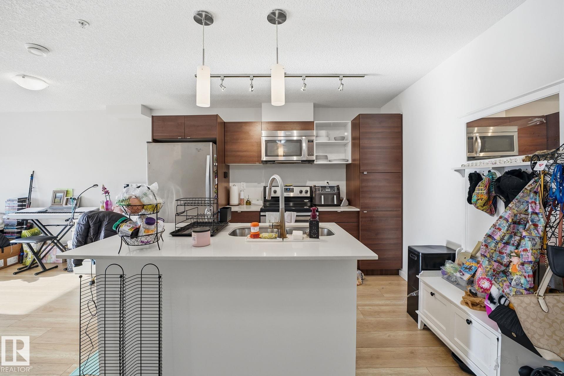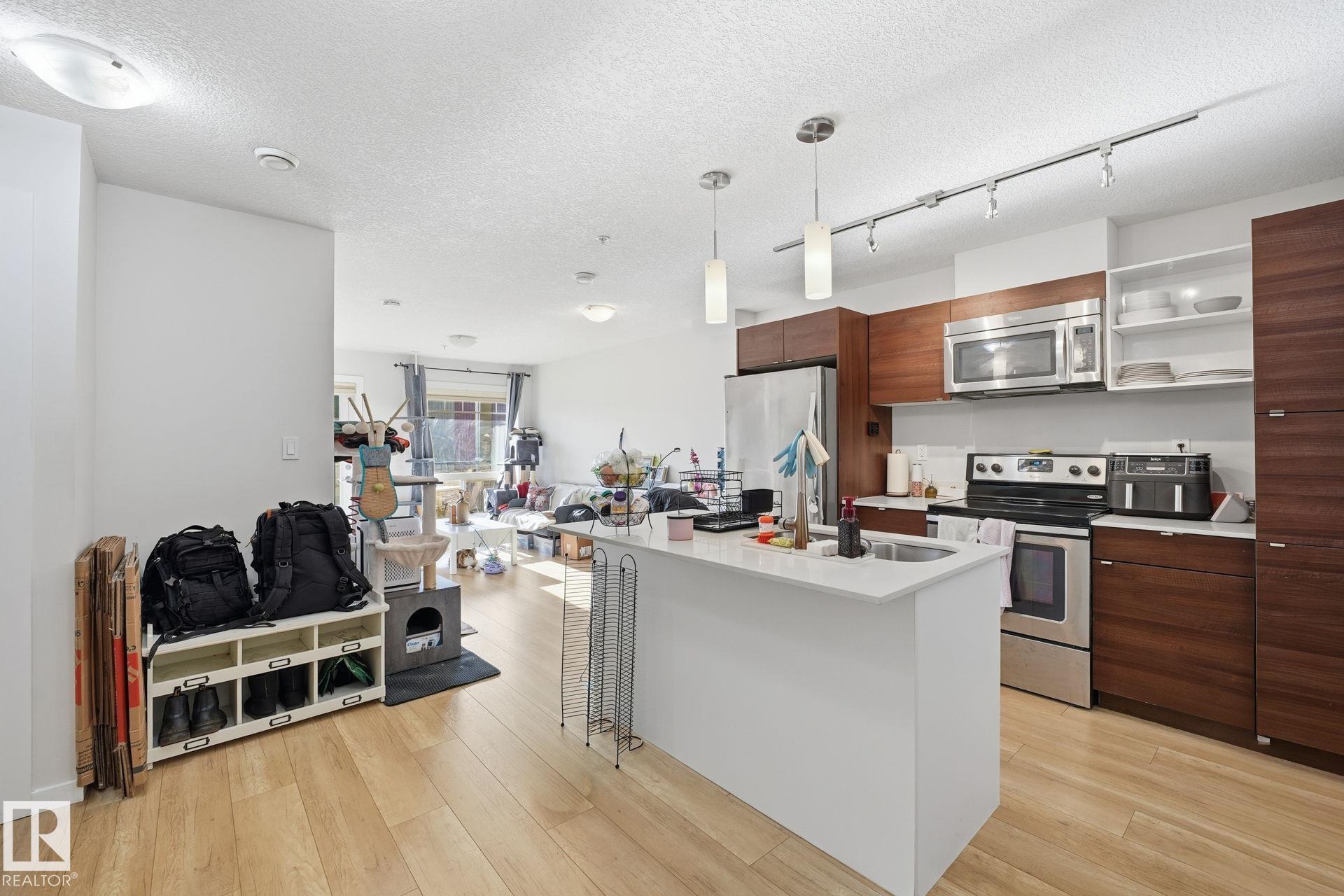 Turnkey investment opportunity in Radiance Condos, Eaux Claires. This well-maintained 1-bedroom, 1-bath unit offers ~562 sq ft of modern living and comes with a reliable tenant paying $1,450 per month, providing immediate income. Built in 2015, the building features in-floor heating, professional management, and low-maintenance construction ideal for hands-off investors. The unit includes quartz countertops, stainless steel appliances, in-suite laundry, and two titled parking stalls--one currently rented for additional income. Located steps from the Eaux Claires Transit Centre, Namao Centre, shops, and restaurants, this is a highly rentable area with consistently low vacancy. With similar units listed higher and renting for comparable amounts, this condo delivers strong cash flow and long-term value in one of North Edmonton's most convenient communities. Perfect for investors seeking steady returns and a worry-free addition to their portfolio.