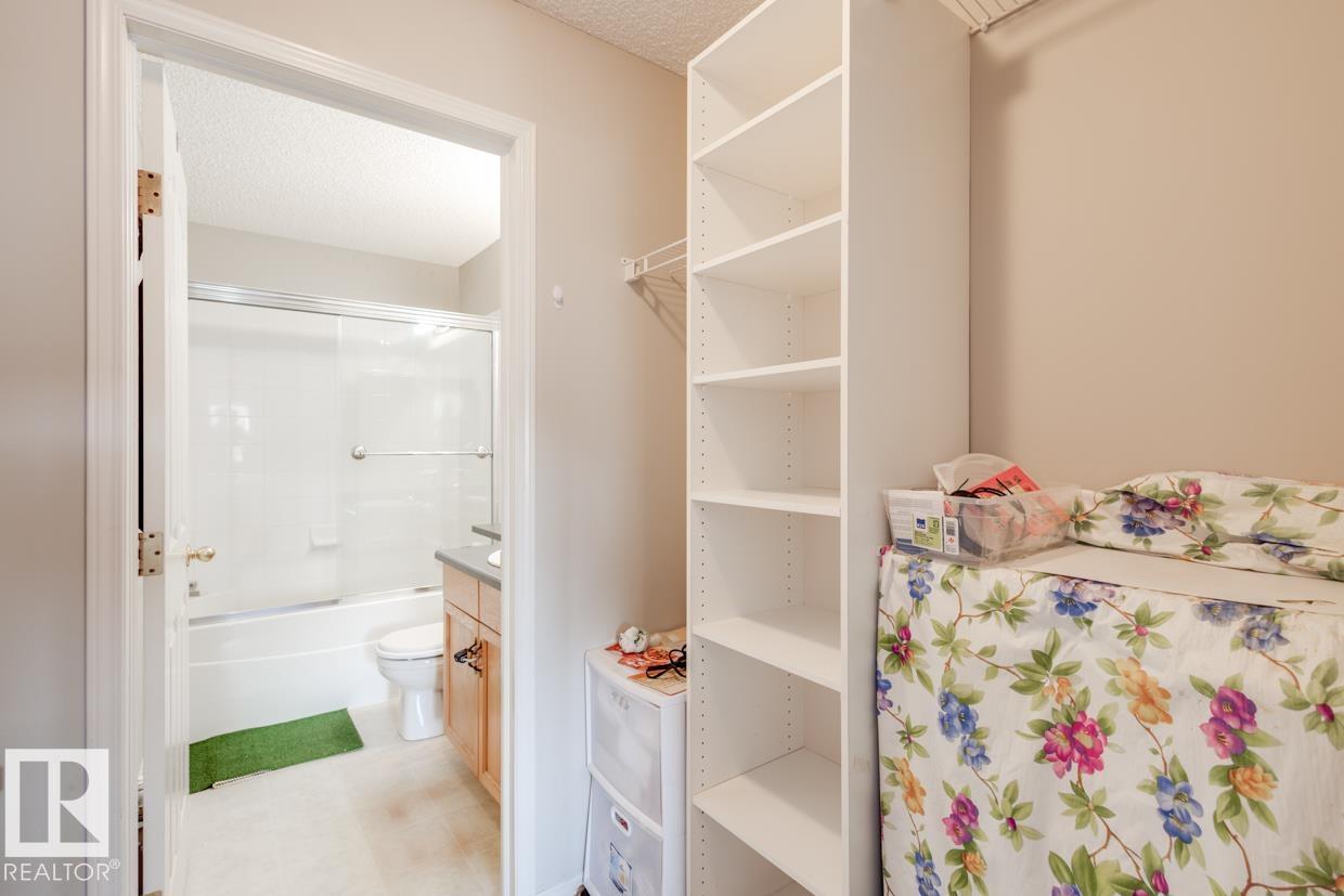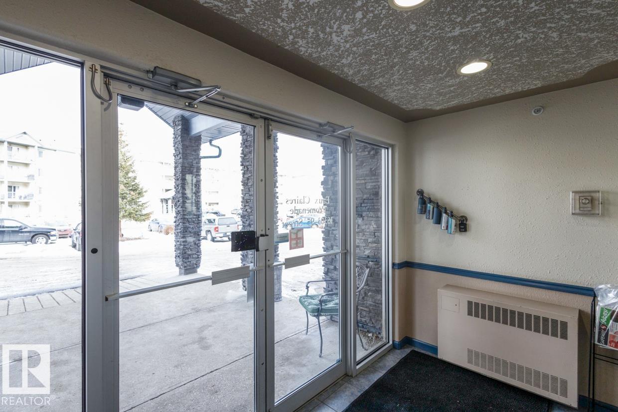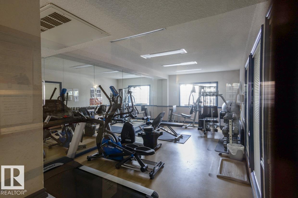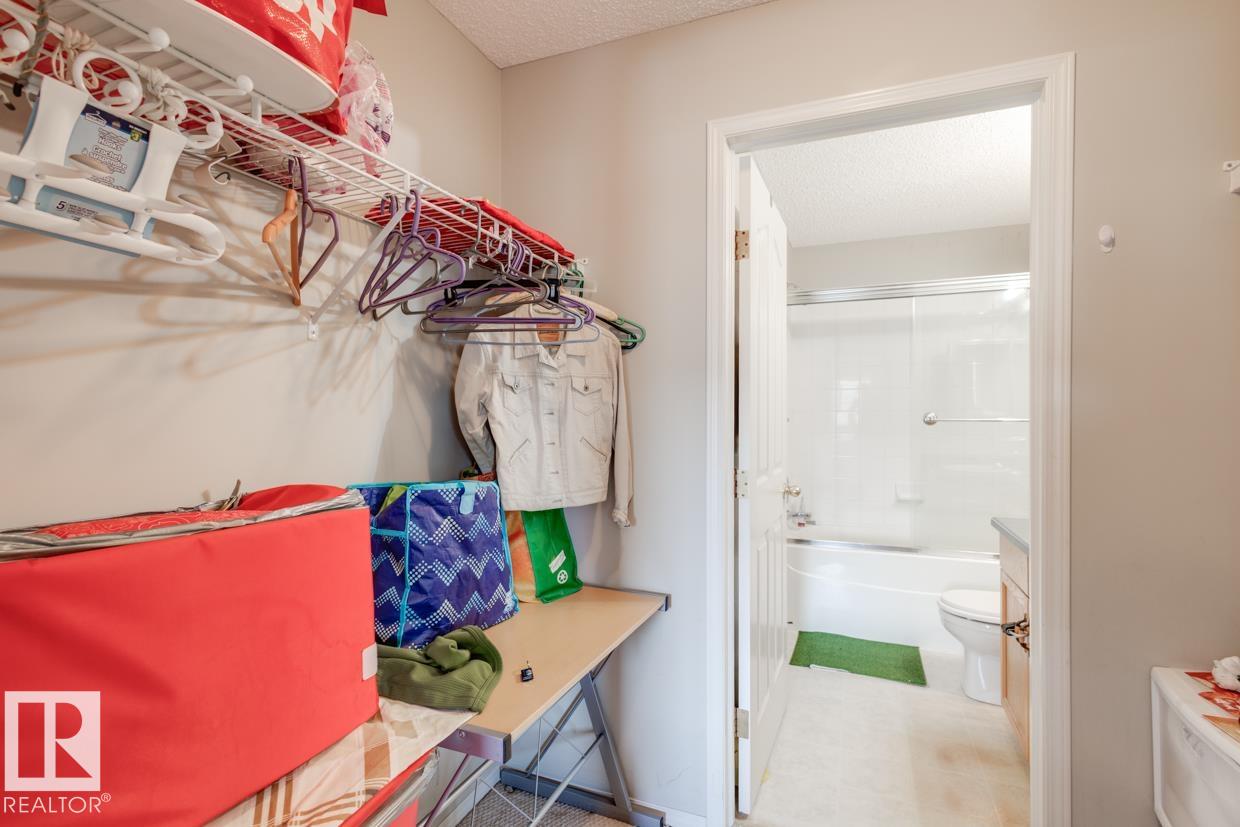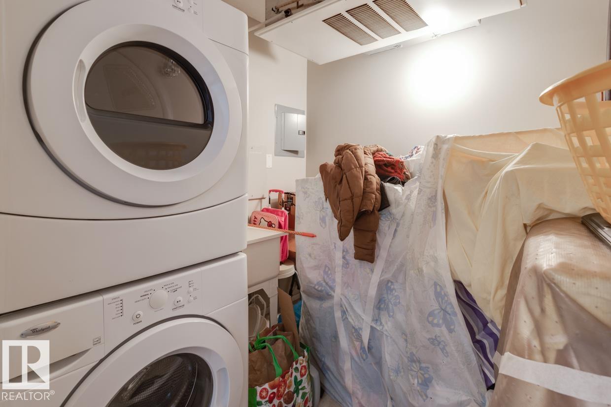 Nestled in the desirable Eaux Claires community, this spacious 2-bedroom, 2-bathroom condo offers an ideal blend of value, comfort, and convenience. The open-concept layout features a well-appointed kitchen with stylish backsplash, extensive oak cabinetry, and a central island that flows seamlessly into the sun-filled living and dining area, all enhanced by newer flooring. The private master suite provides a serene retreat with a generously sized walk-in closet featuring custom organizers. Practical amenities include a separate storage room with newer washer and dryer, plus a handy utility sink, along with an additional titled storage. Step outside to your expansive private balcony, complete with BBQ gas hookup, perfect for relaxing or entertaining. Building amenities include a full-sized gym and versatile party room. The exceptional location puts you steps away from shopping, dining, and transit, with swift access to the Henday for an effortless commute.