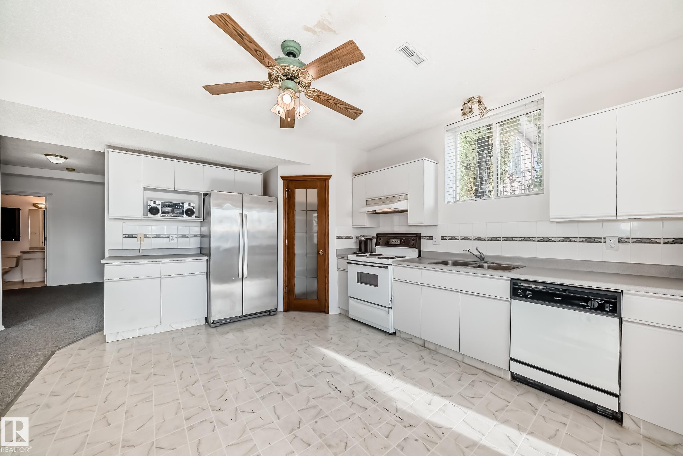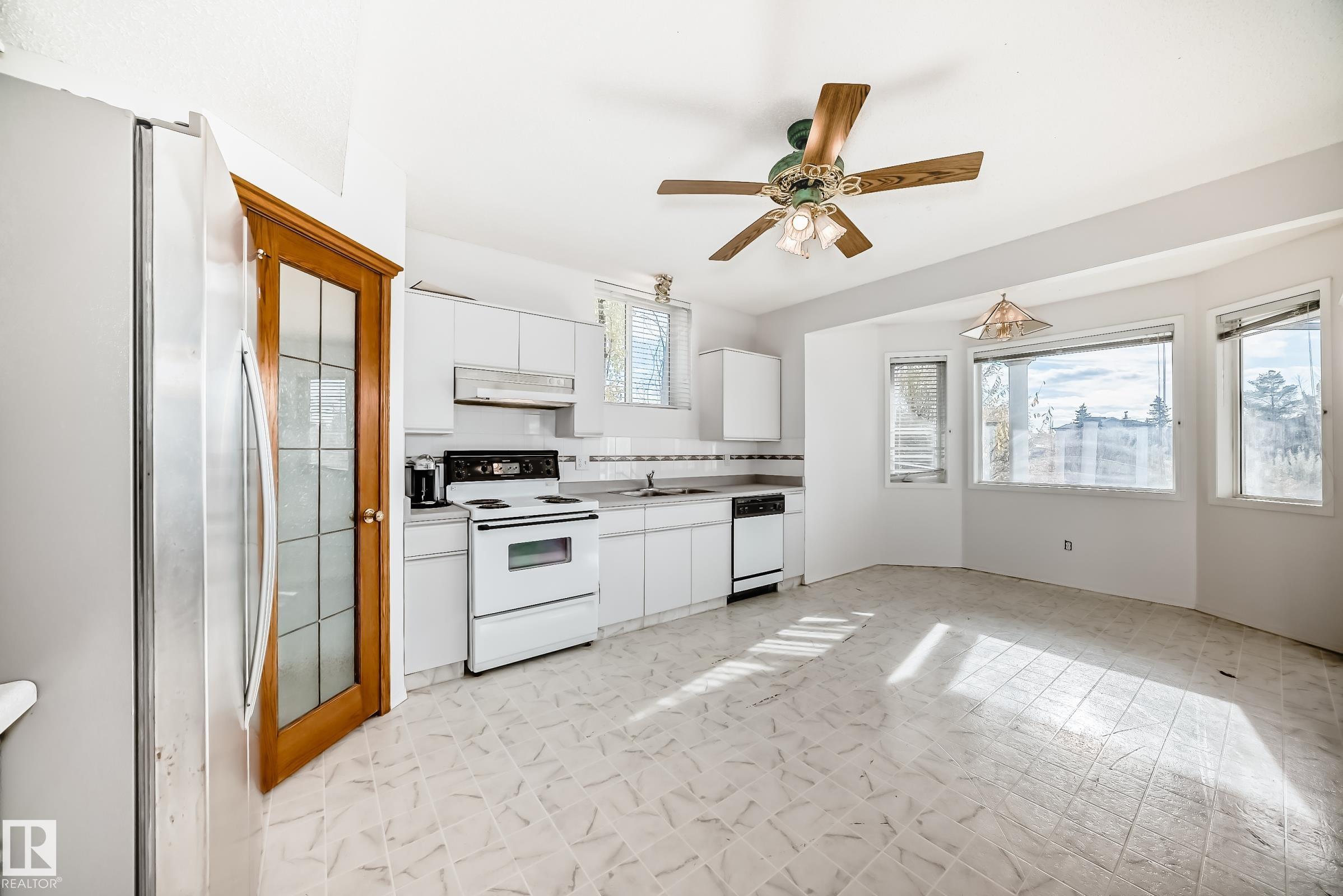 Located in the highly desired community of Elsinore. Walk-out basement, lake backing, A/C and a second kitchen. Welcome to this stunning home featuring black stucco and stone exterior, exposed aggregate with stamp border driveway and heated triple garage. Step inside to a grand formal dining area that flows seamlessly into the open-concept kitchen, complete with a large island, breakfast nook surrounded by windows, and a spacious walk-in pantry. The inviting living room offers a cozy fireplace, perfect for relaxing evenings. Upstairs you'll find three generous bedrooms, 2 full bath, including a beautiful primary suite with a luxurious ensuite featuring a soaker tub and separate standup shower. The fully finished basement offers incredible versatility with a second kitchen, additional living room, bedroom, and full bathroom, ideal for extended family or guests. Enjoy outdoor living on the large deck overlooking the lake and expansive backyard, perfect for entertaining or quiet nights taking in the view.