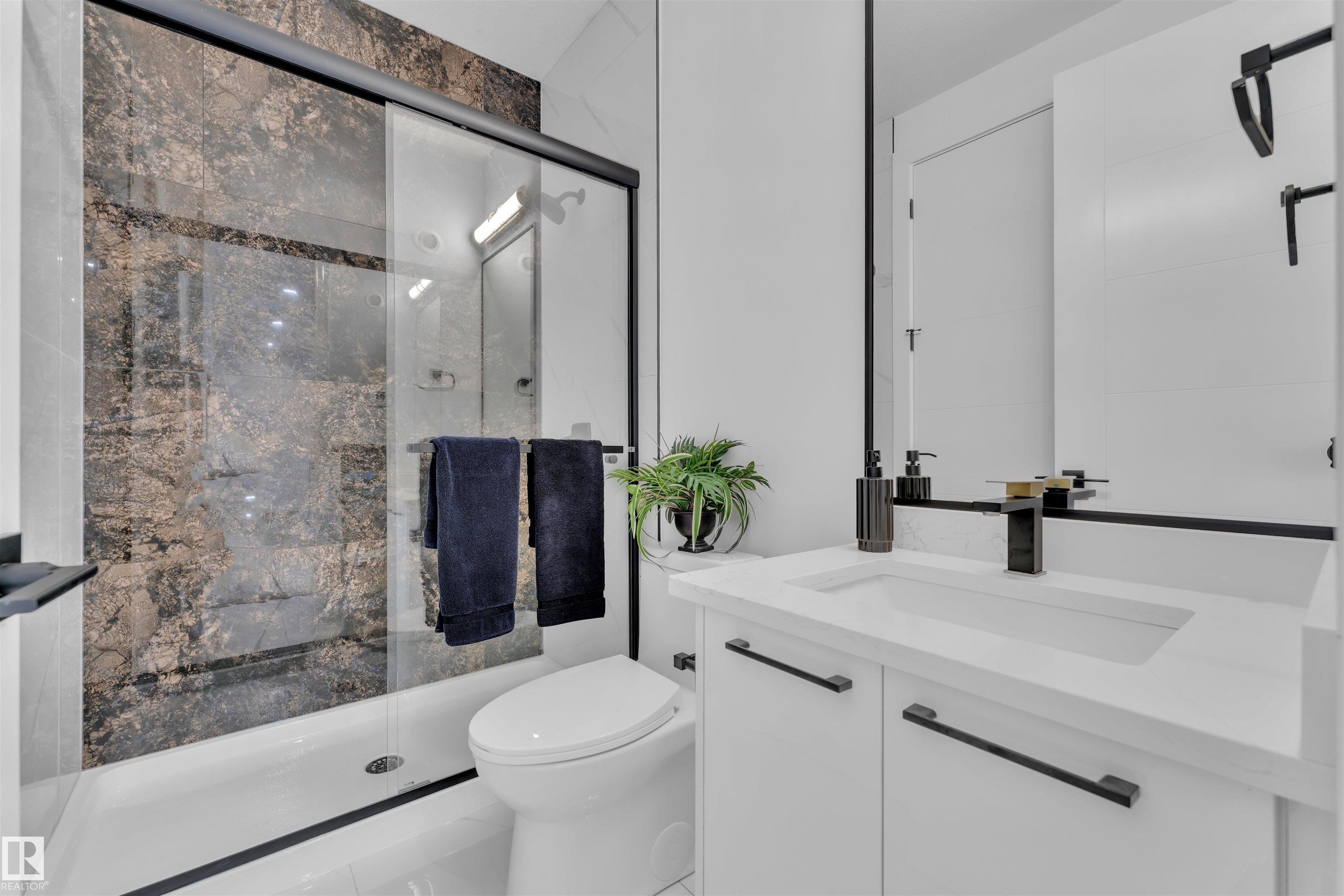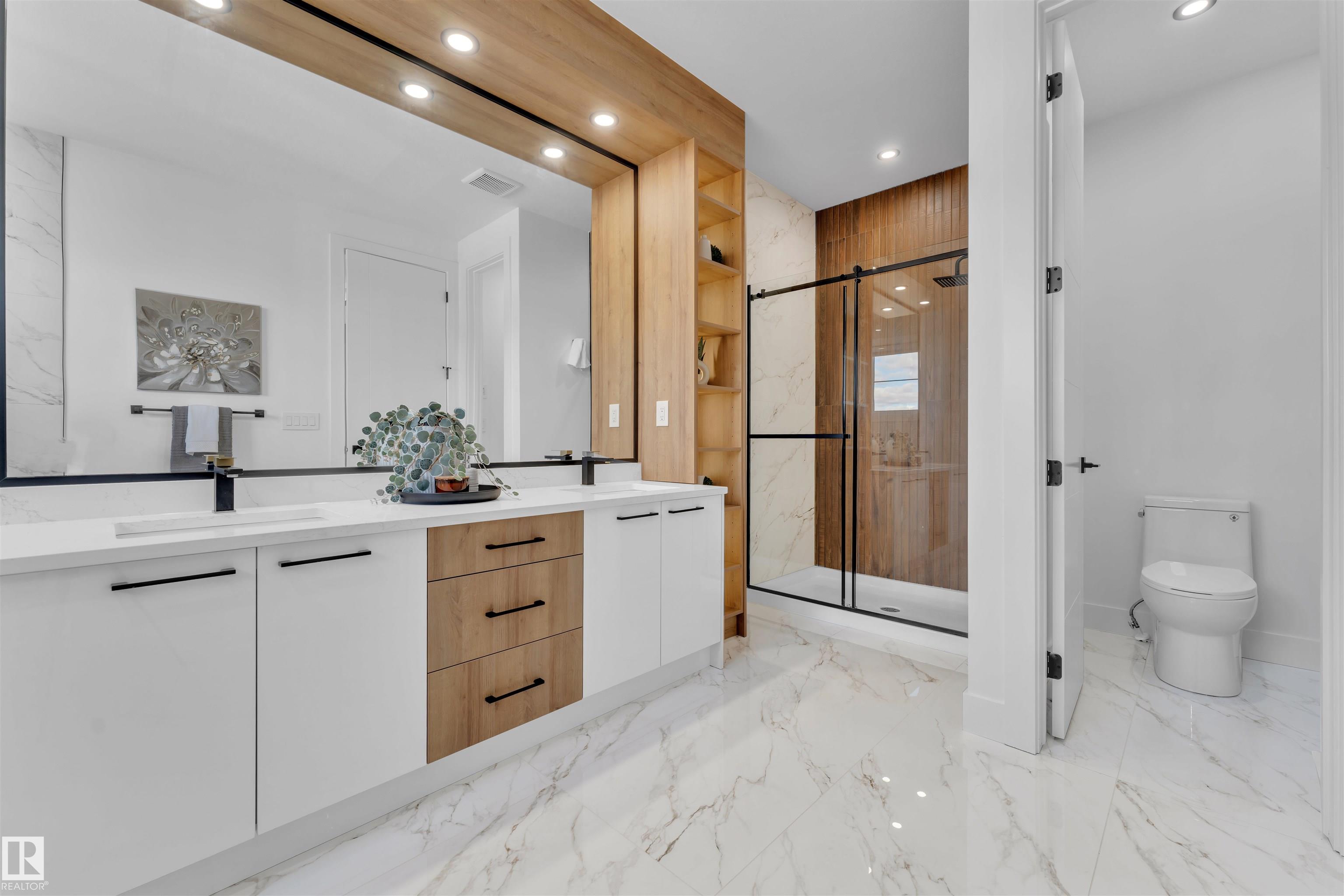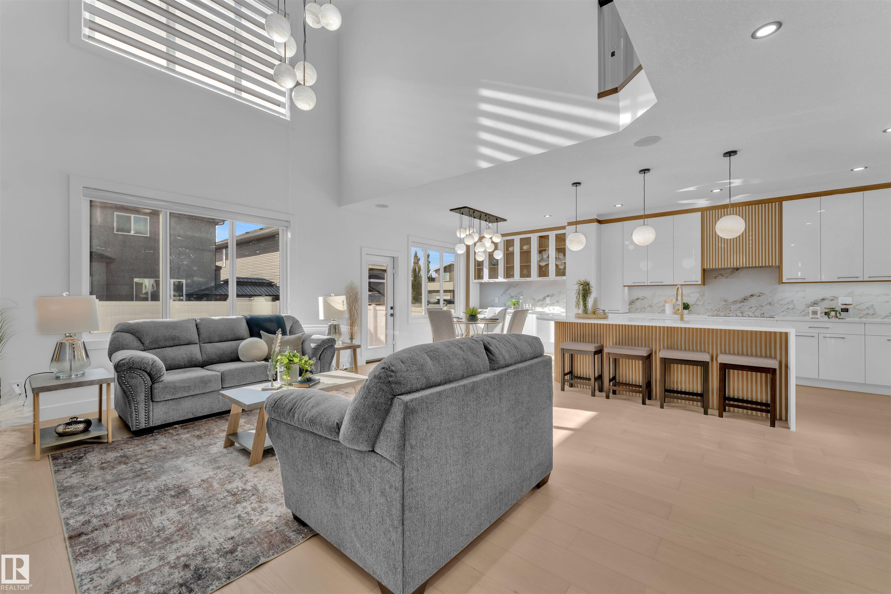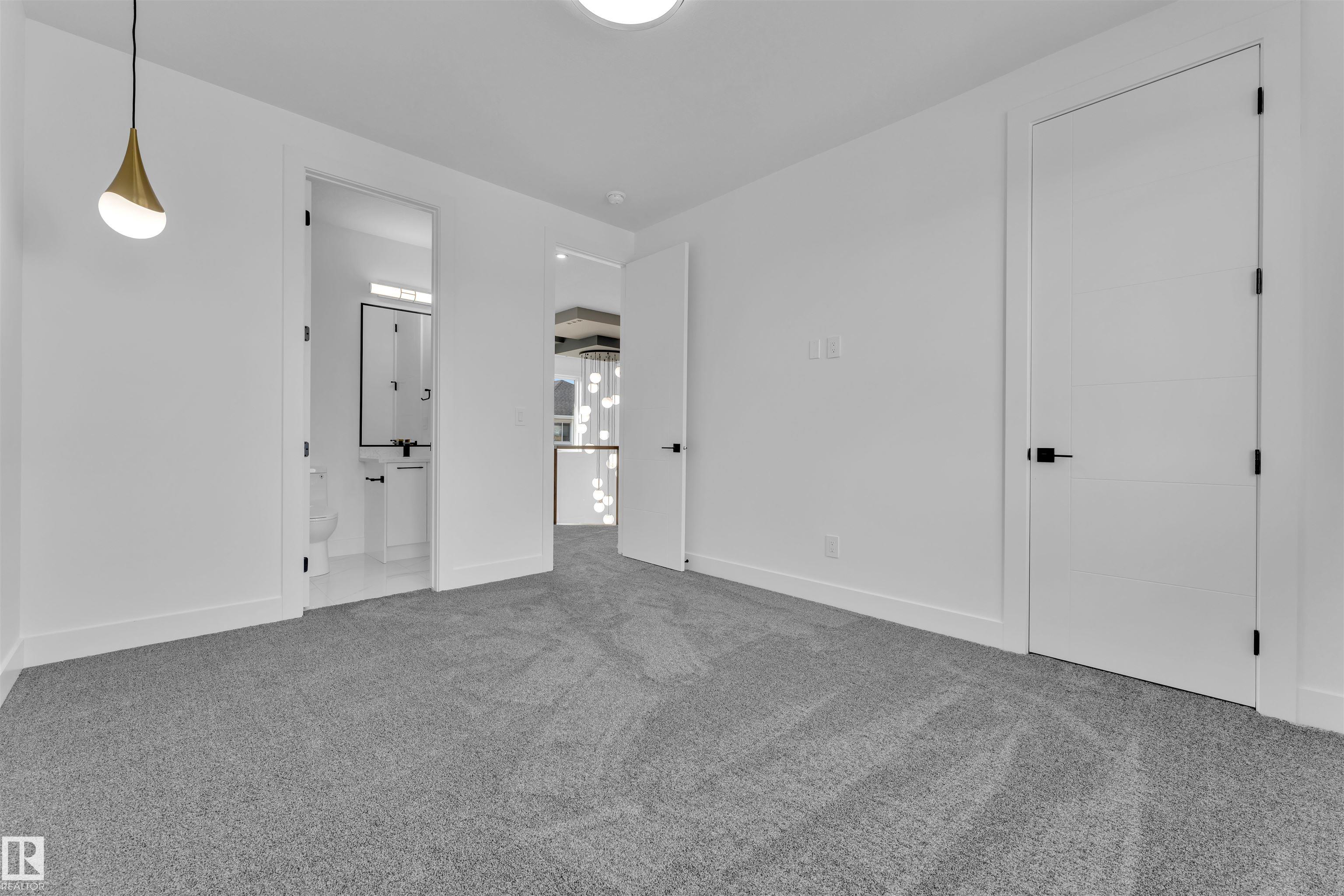 STUNNING ONE-OF-A-KIND FULLY custom home perfectly combines modern comfort with elegant design. 3113 SF of living space, this residence boasts TRIPLE CAR GARAGE, ACRYLIC STUCCO on front exterior invites you into a grand entrance. 9FT ceilings throughout & elegant 8FT DOORS leading to main floor. This exquisite home features MAIN FLOOR BED WITH ENSUITE, OPEN-TO-ABOVE GREAT ROOM, & FORMAL LIVING AREA. MASSIVE SPICE KITCHEN is a chef's delight! OPEN RISER STAIRCASE, mud room, dining space & POWDER ROOM round out the main floor. Abundant windows flood the space with natural light. Upstairs, discover a beautiful BONUS SPACE OVERLOOKING the great room, another master suite with a SPA-LIKE 5PC ENSUITE featuring a FREE-STANDING TUB, plus 3 GENEROUSLY SIZED BED, JACK & JILL BATH, walk-in laundry with SINK & a PRAYER ROOM & if that's not enough to win you over, this home also offers a SEP-ENTRANCE for a potential LEGAL SUITE plus MAN DOOR to garage. Complete Appliances package & blinds installed. Welcome Home!