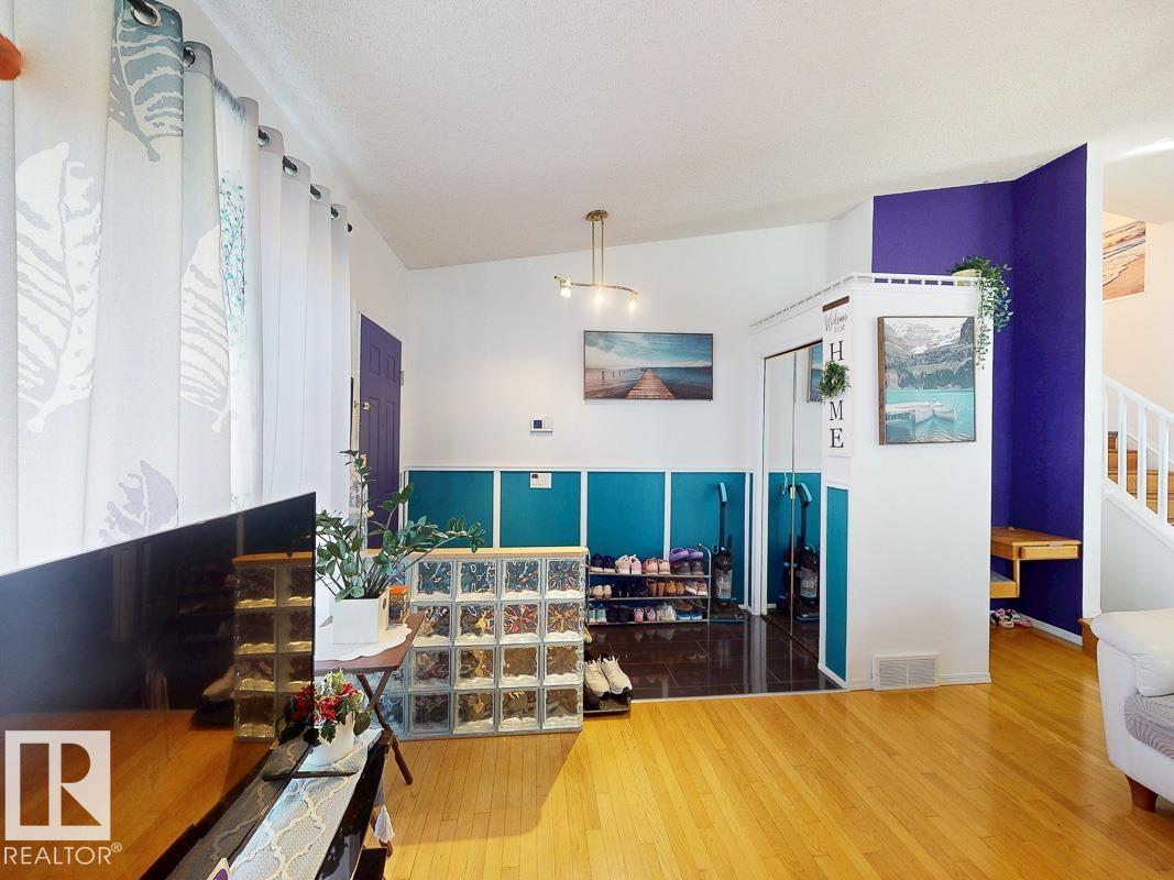 Beautifully Maintained 4-Level Split in La Perle | Nearly 2,350 Sq Ft of Living Space Welcome to this meticulously cared-for 4-level split, offering nearly 2,350 sq ft of well-designed living space in the highly sought-after community of La Perle. Step inside to a spacious front foyer that opens into a bright living room with gleaming hardwood floors, followed by a step up into the formal dining room featuring vaulted ceilings--perfect for entertaining. The kitchen boasts brand new ceramic tile flooring, ample cabinetry, and a patio door that leads to a fully landscaped and fenced backyard complete with a new deck and stone patio. The upper level features three generous bedrooms, including a primary suite with a 3-piece ensuite and walk-in closet. A beautifully updated 4-piece main bathroom with upscale new laminate flooring completes this level. On the third level, you'll find a cozy family room with a wood-burning fireplace, an additional bedroom, a 2-piece powder room, and direct access to the over