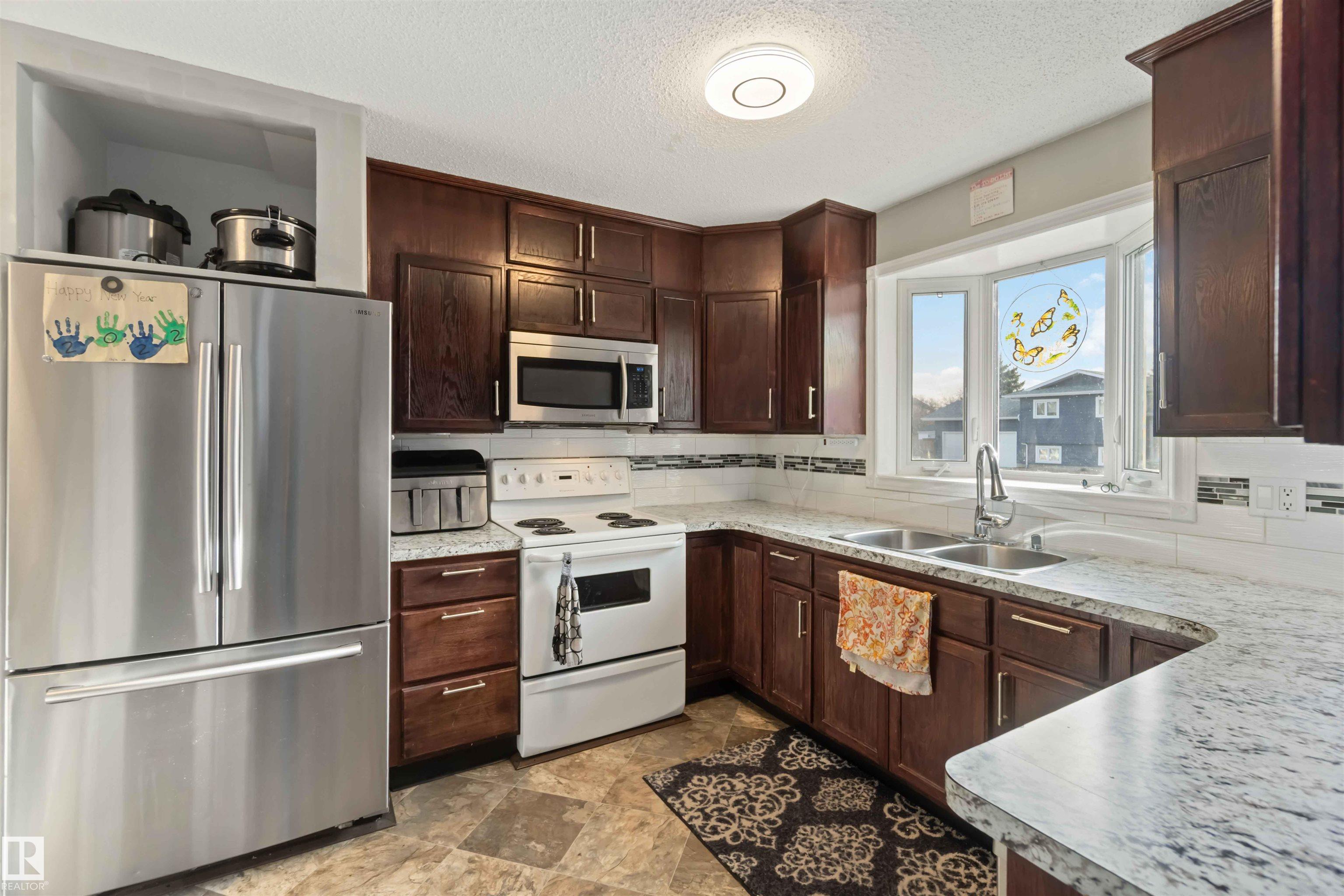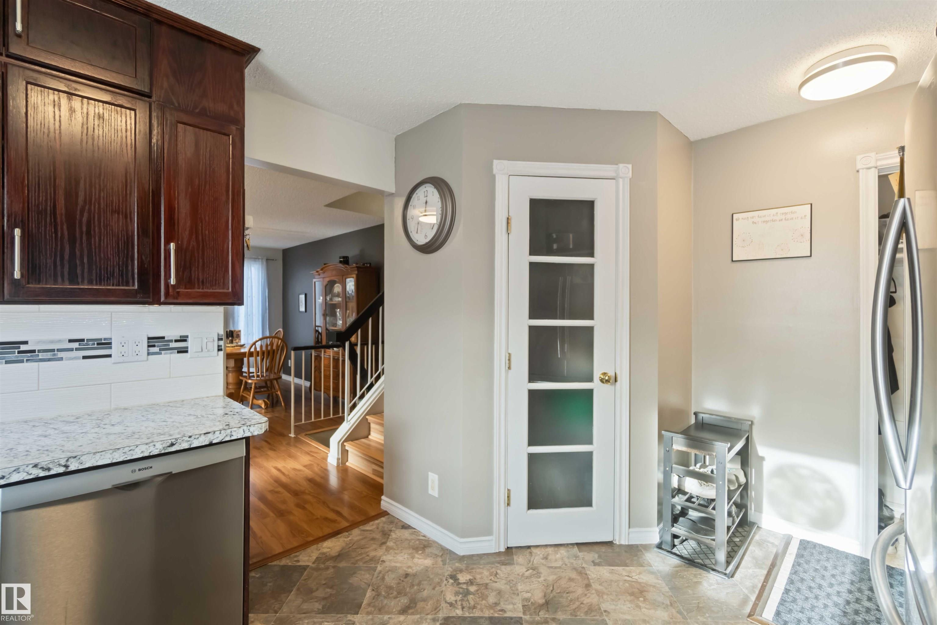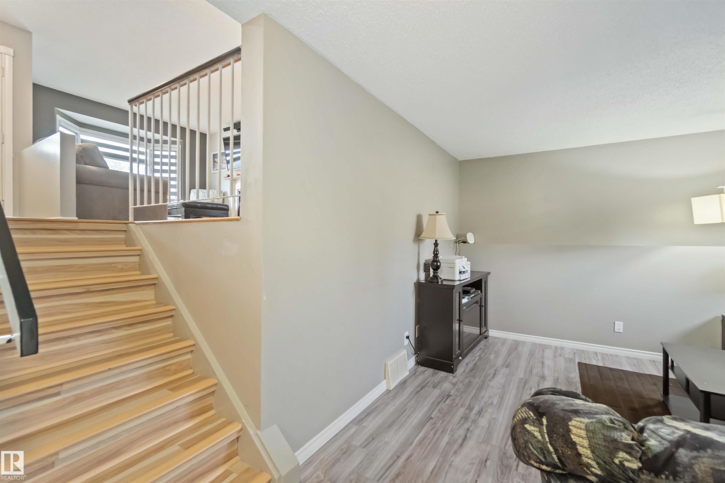 Beautiful 4-level split in La Perle offering 1888sqft of developed living space & a bright, welcoming feel throughout. The main floor features a sunny living room with a large front bay window & a cozy gas fireplace, a spacious dining area & a functional kitchen complete with a walk-in pantry. Upstairs you'll find the primary, an additional comfortable bedroom & a clean, well-kept 4pc bath. The lower level offers a 3rd bedroom, a family room perfect for movie nights & an additional 3pc bath. The basement adds a generous recreation room plus ample storage for seasonal items & hobbies. Outside, enjoy a large fenced yard with a rolling gate, a double detached heated garage & direct access to the green space behind--ideal for pets & kids. Located in a quiet, safe neighbourhood & just steps from shopping, transit, schools & everyday amenities. Updated with laminate & vinyl plank flooring, newer shingles, HWT, and triple pane windows, this home is move-in ready with room to grow. All this home needs is YOU!