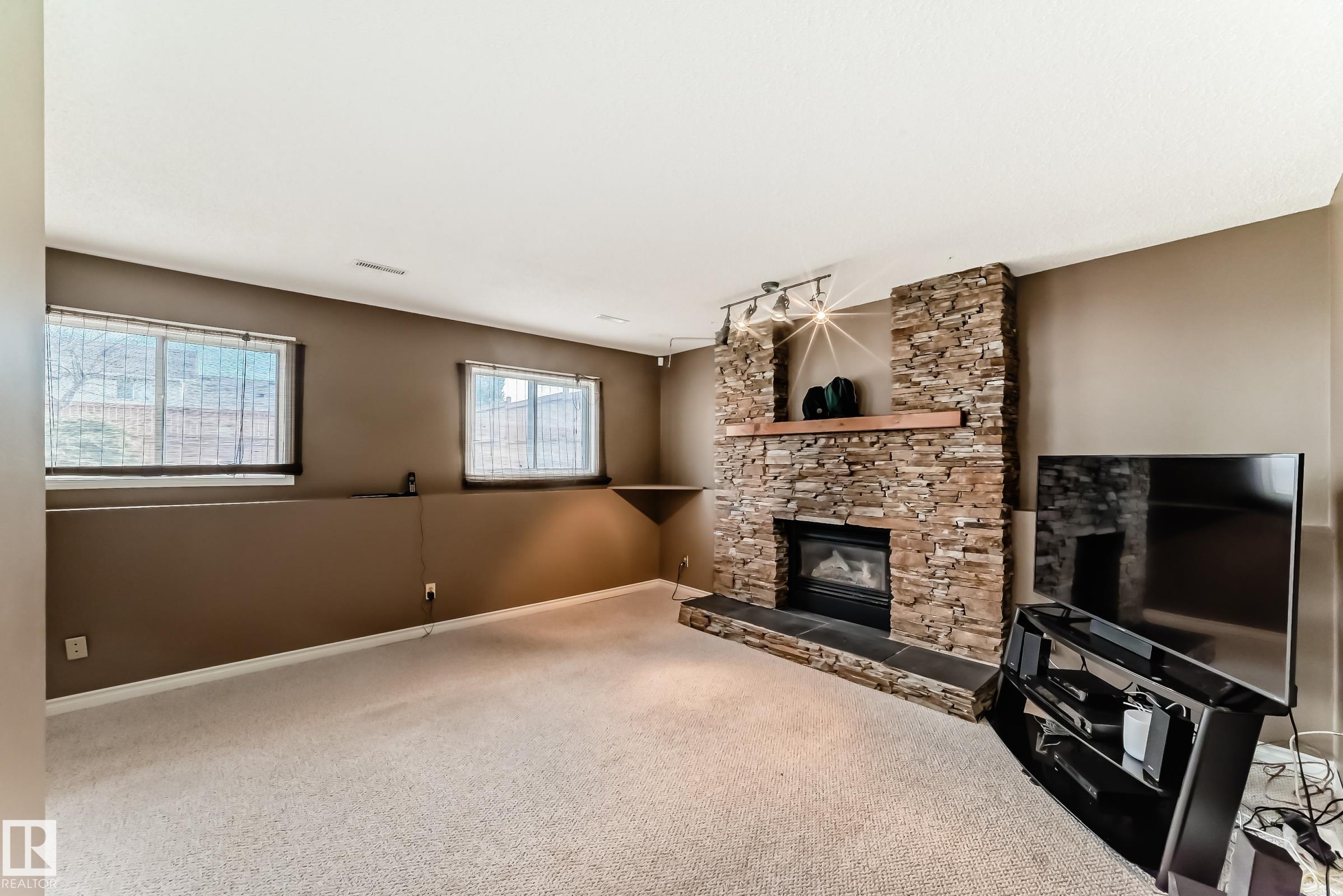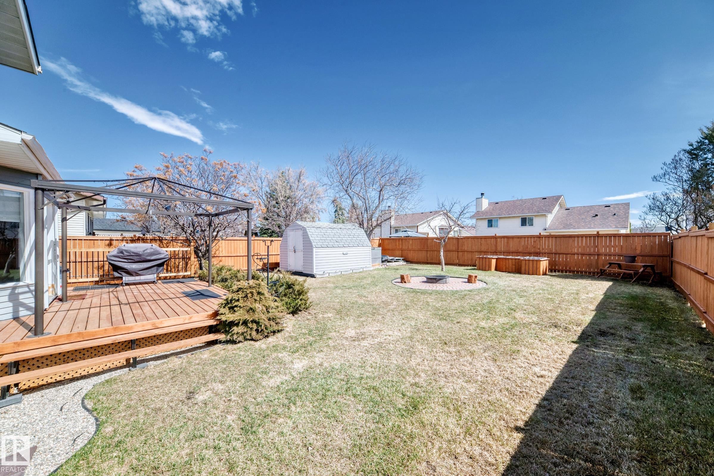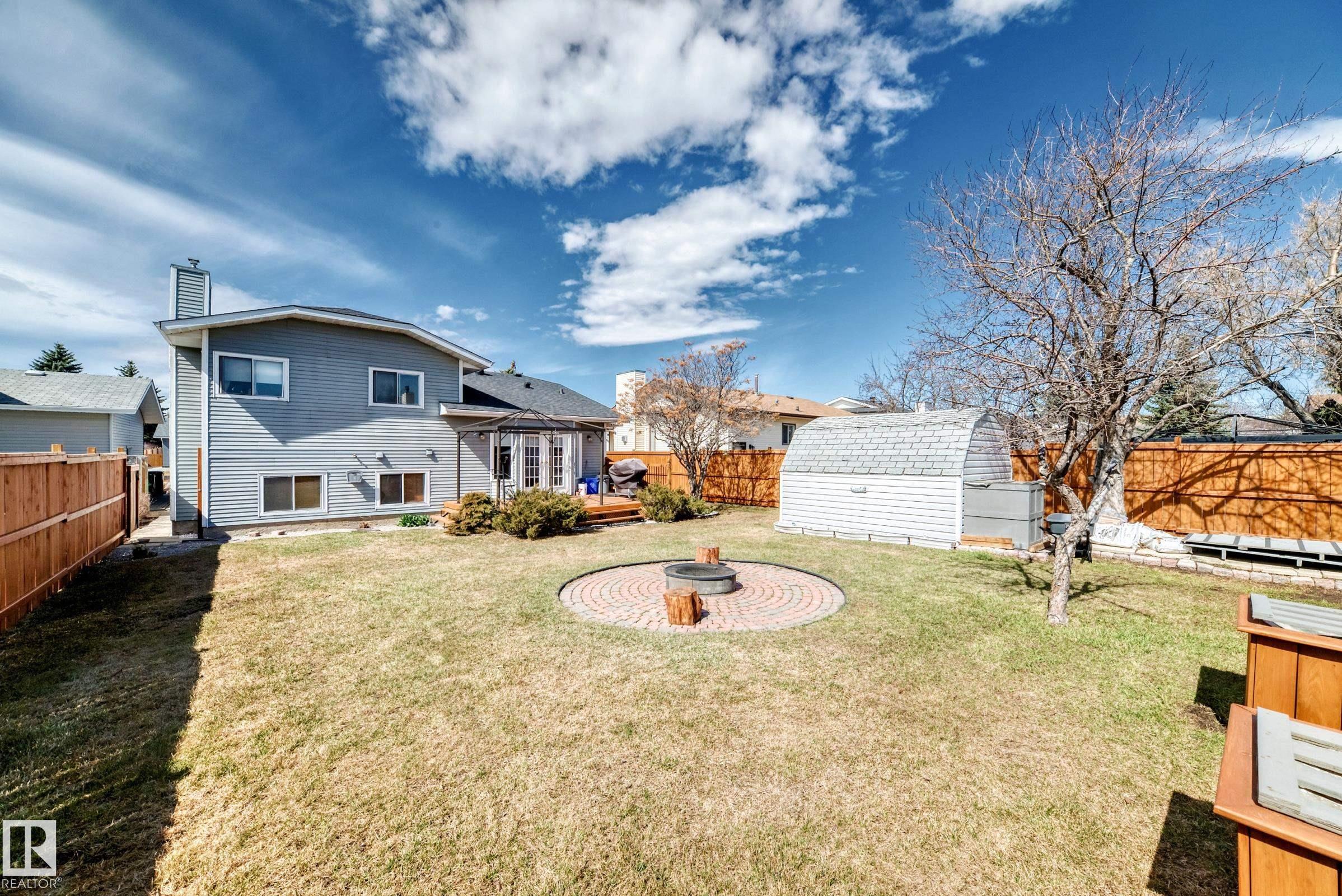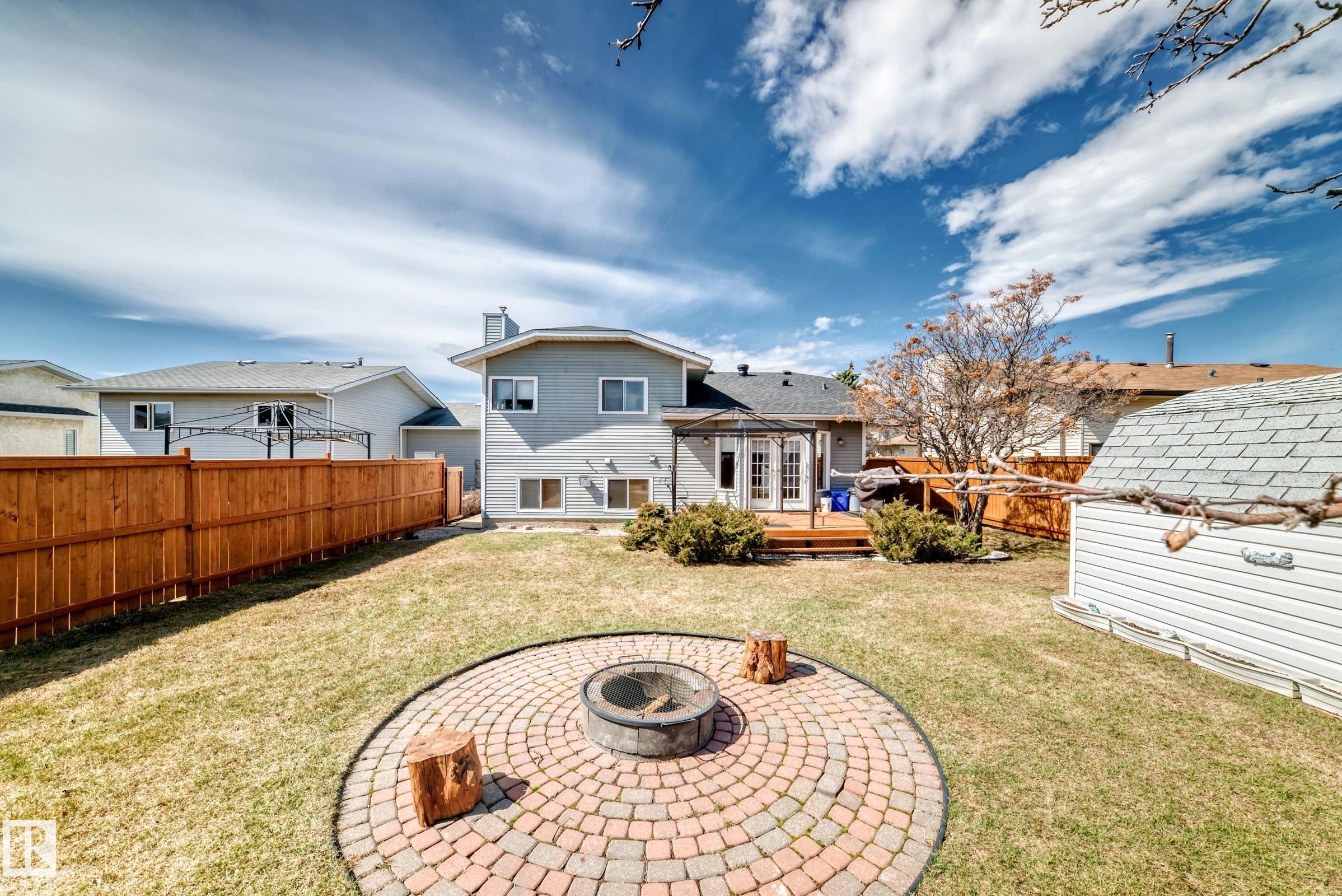 Beautiful fully finished home in very desirable neighborhood of LaPerle in west Edmonton. This upgraded 4 level split has many upgrades throughout, 2022 shingles, 2025 fence, and much more. This home features a total of 4 bedrooms and 4 full bathrooms and over 1,800 sq ft on 3 levels. This home shows great on all 4 levels. The main level has dining room, living room, remodeled spacious kitchen with 4 appliances and a garden door to low maintenance attached deck with gas outlet. The upper level has 3 bedrooms, main 4 piece bathroom and a full 4 piece ensuite bath in the primary bedroom. The 3rd level boasts a fabulous a family room with a gorgeous stone faced gas fireplace, 4th bedroom, laundry and 3 piece bath. The developed 4th level features the spa bathroom with a 2 man air jetted tub with beautiful tile surround and shower. The fully finished Man Cave style double heated garage has a side door entrance. This home shows a 10 out of 10 and needs nothing. The garage door opener in as is condition.