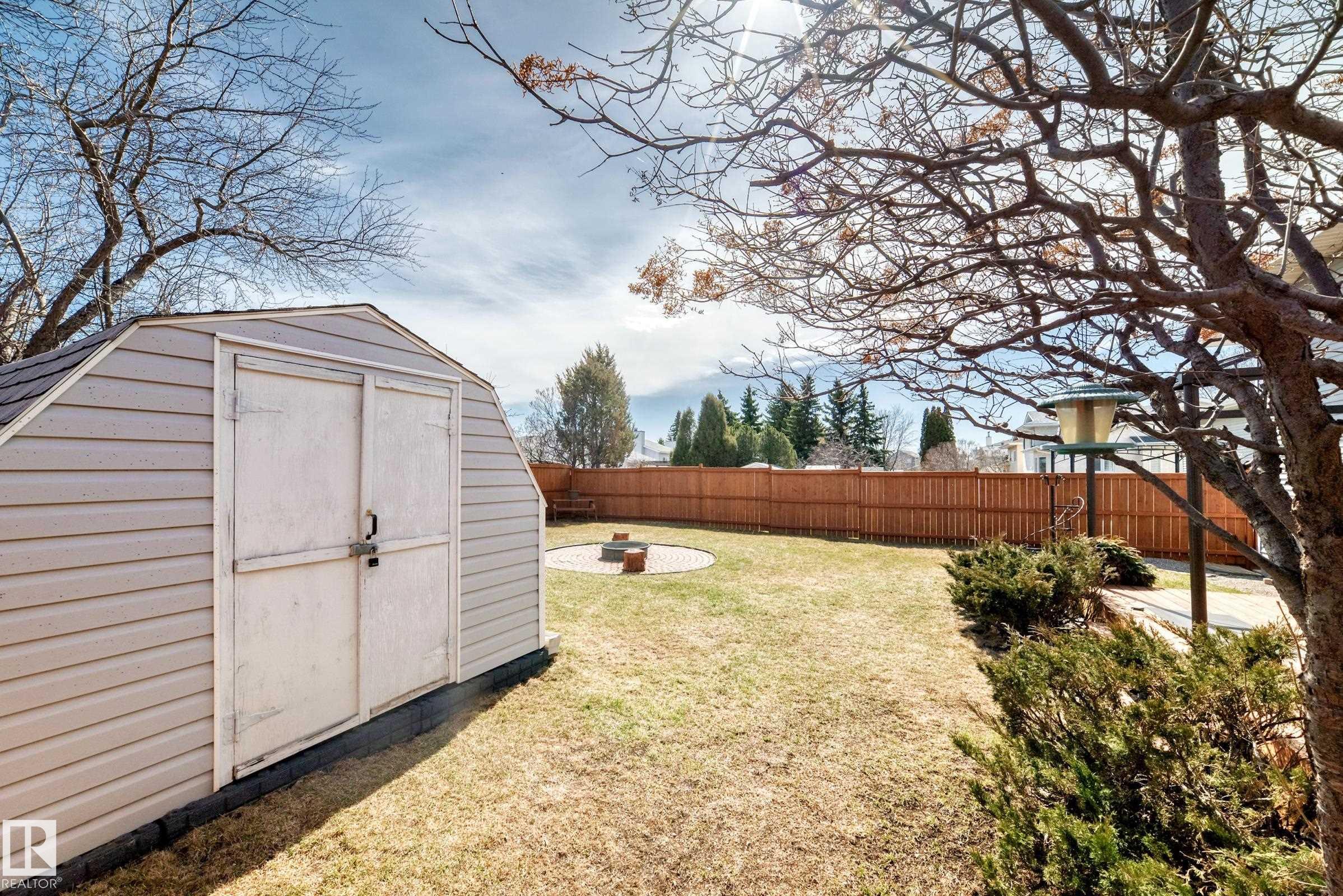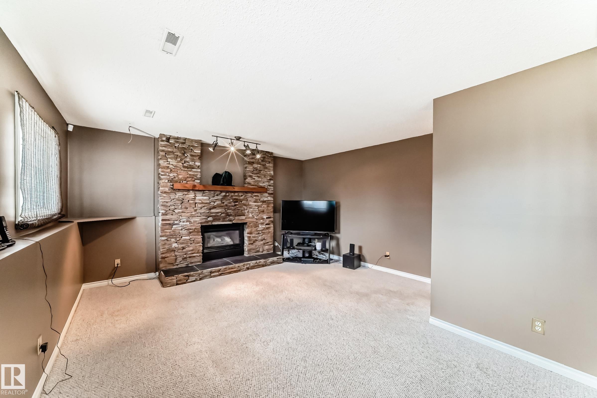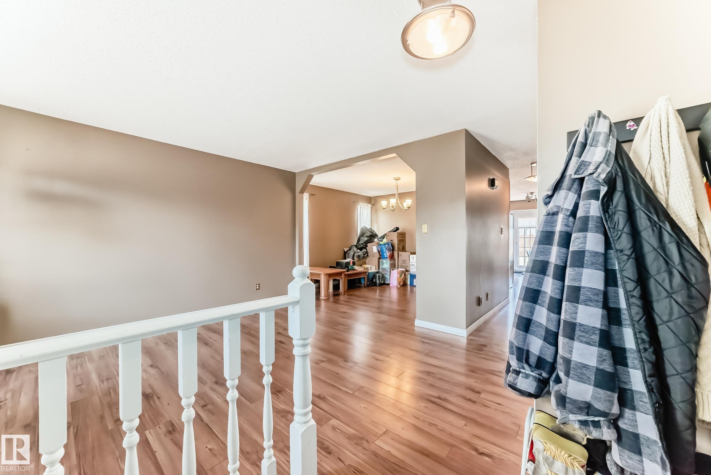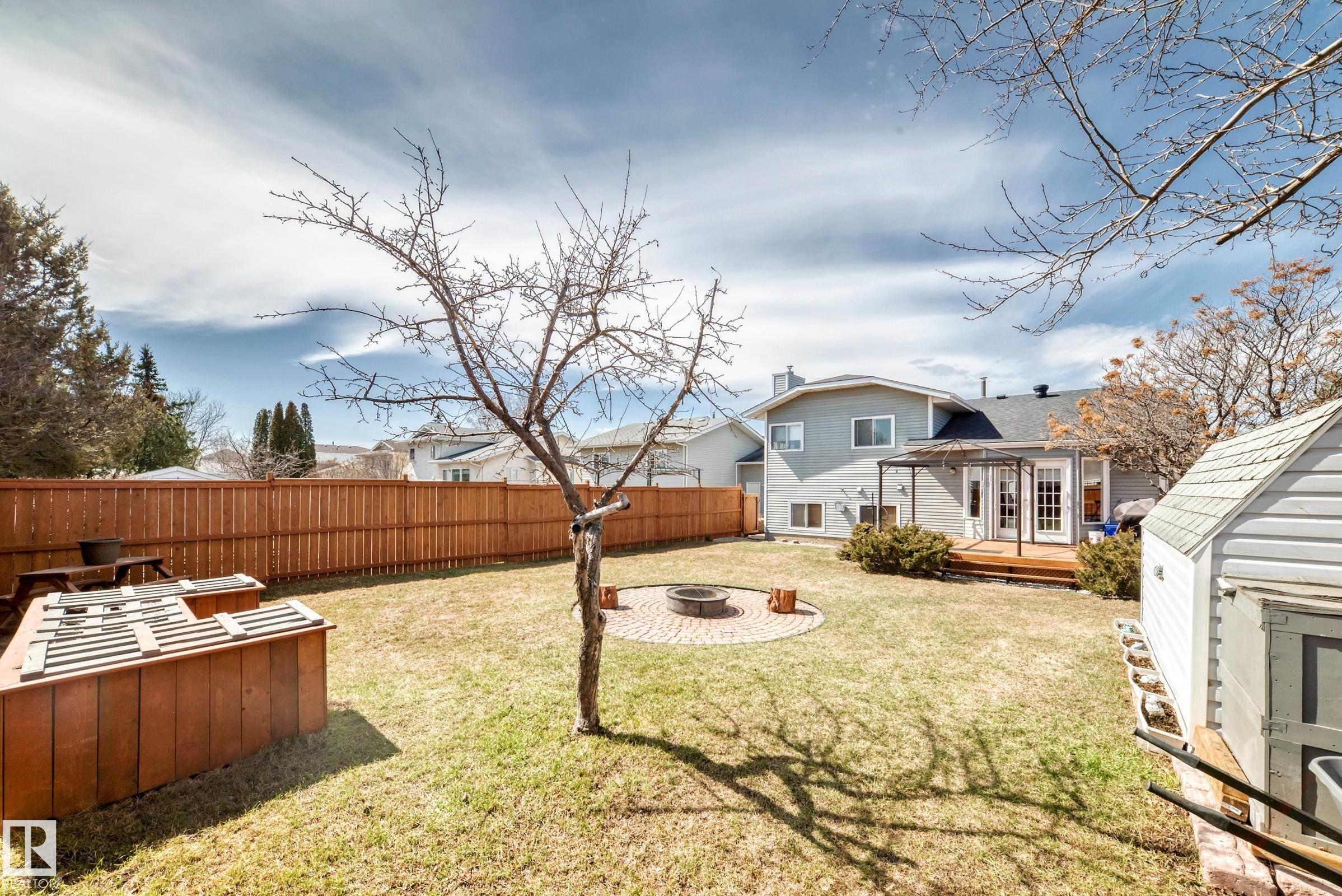 Beautiful fully finished home in very desirable neighborhood of LaPerle in west Edmonton. This upgraded 4 level split has many upgrades throughout, 2022 shingles, 2025 fence, and much more. This home features a total of 4 bedrooms and 4 full bathrooms and over 1,800 sq ft on 3 levels. This home shows great on all 4 levels. The main level has dining room, living room, remodeled spacious kitchen with 4 appliances and a garden door to low maintenance attached deck with gas outlet. The upper level has 3 bedrooms, main 4 piece bathroom and a full 4 piece ensuite bath in the primary bedroom. The 3rd level boasts a fabulous a family room with a gorgeous stone faced gas fireplace, 4th bedroom, laundry and 3 piece bath. The developed 4th level features the spa bathroom with a 2 man air jetted tub with beautiful tile surround and shower. The fully finished Man Cave style double heated garage has a side door entrance. This home shows a 10 out of 10 and needs nothing. The garage door opener in as is condition.