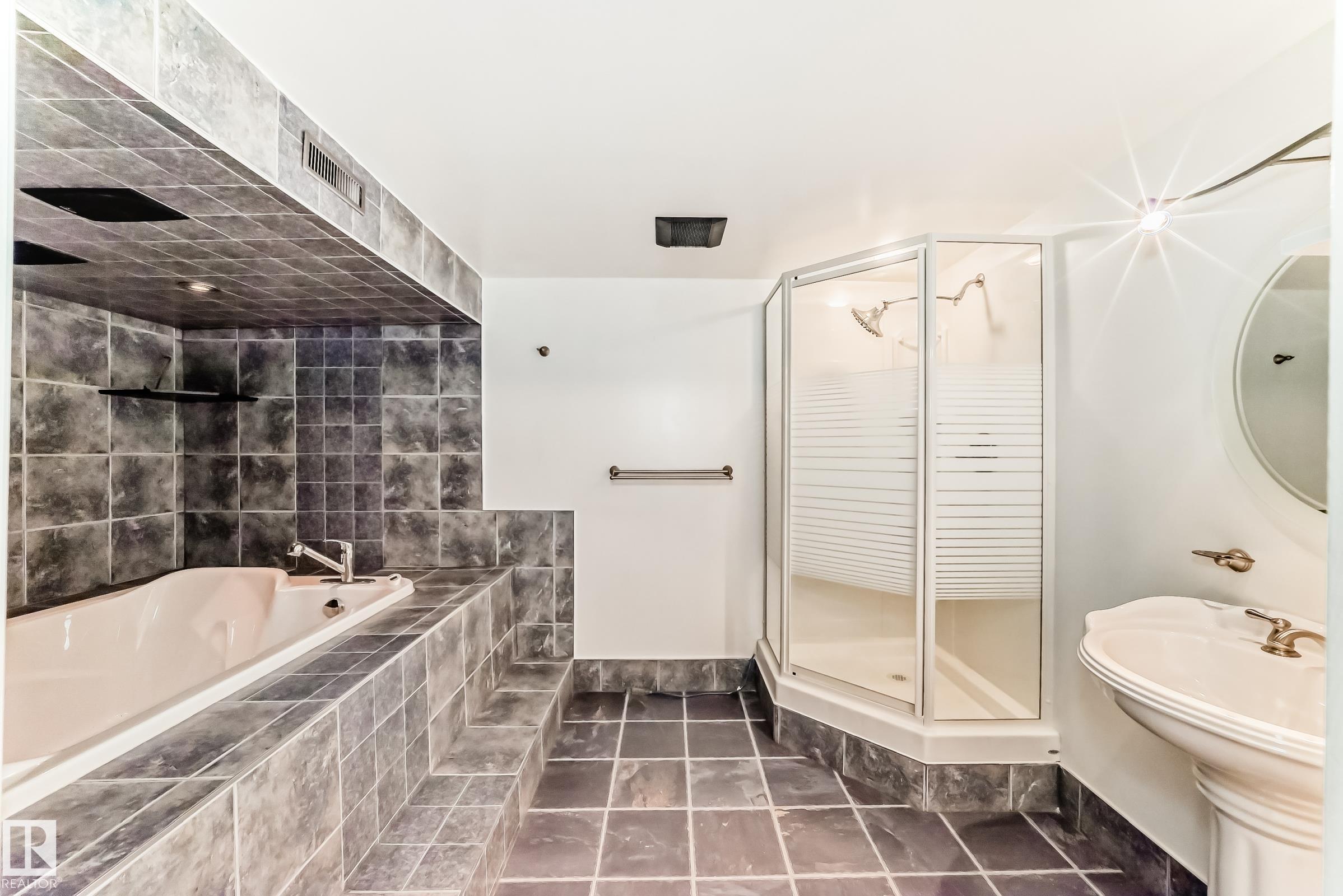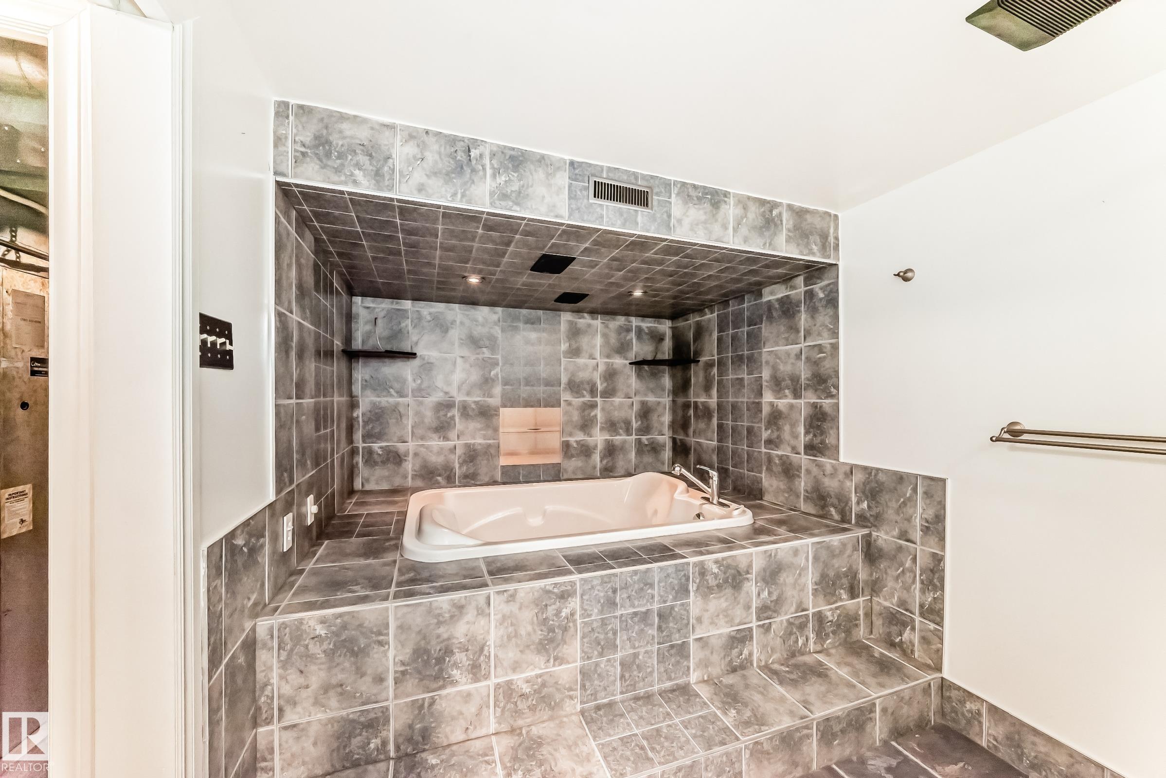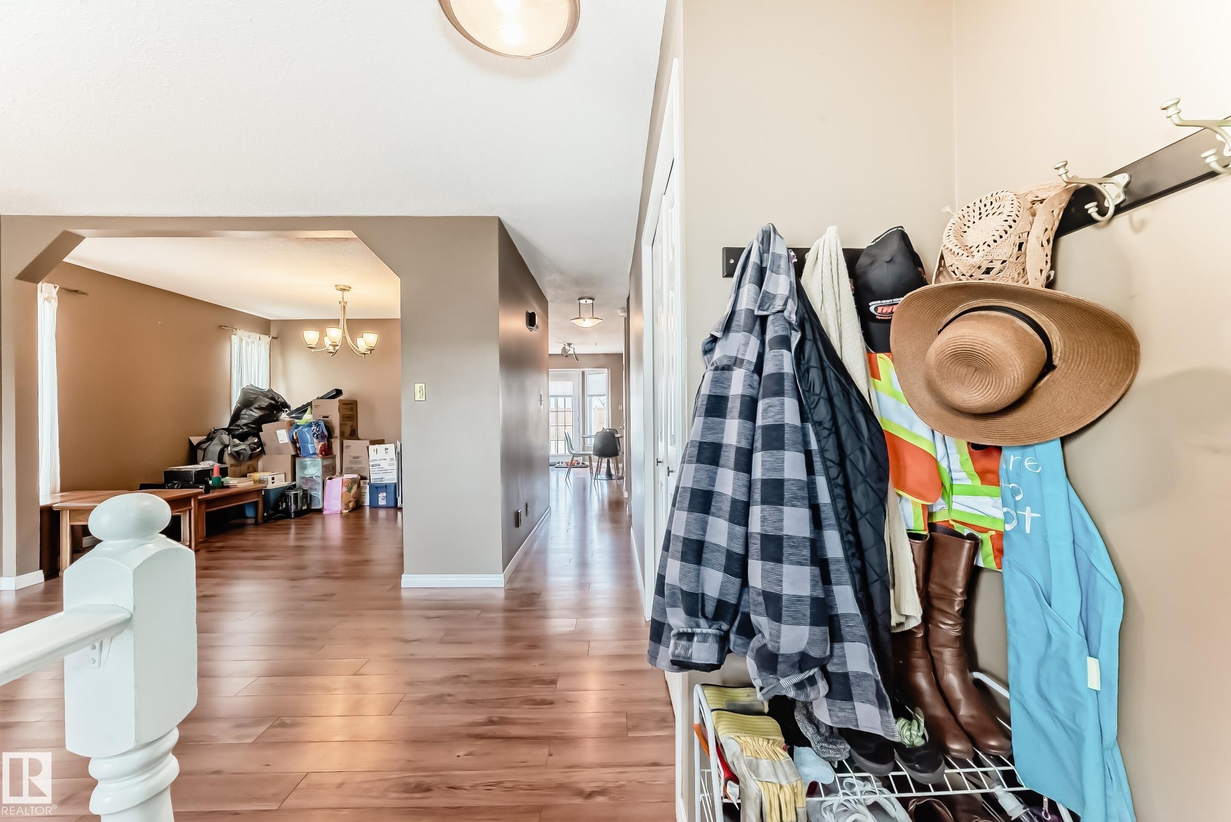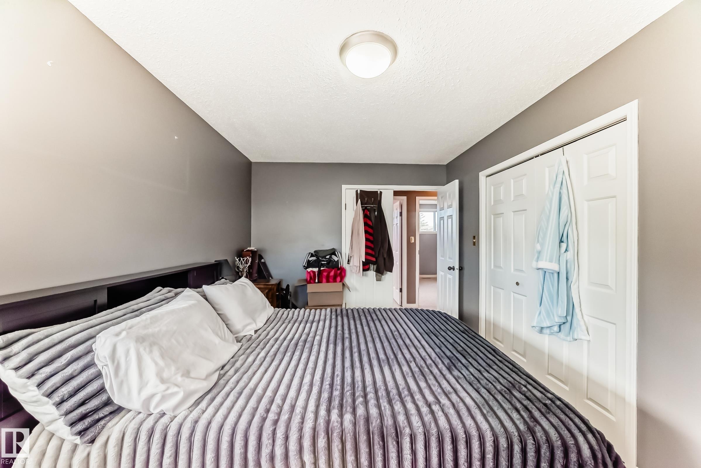 Beautiful fully finished home in very desirable neighborhood of LaPerle in west Edmonton. This upgraded 4 level split has many upgrades throughout, 2022 shingles, 2025 fence, and much more. This home features a total of 4 bedrooms and 4 full bathrooms and over 1,800 sq ft on 3 levels. This home shows great on all 4 levels. The main level has dining room, living room, remodeled spacious kitchen with 4 appliances and a garden door to low maintenance attached deck with gas outlet. The upper level has 3 bedrooms, main 4 piece bathroom and a full 4 piece ensuite bath in the primary bedroom. The 3rd level boasts a fabulous a family room with a gorgeous stone faced gas fireplace, 4th bedroom, laundry and 3 piece bath. The developed 4th level features the spa bathroom with a 2 man air jetted tub with beautiful tile surround and shower. The fully finished Man Cave style double heated garage has a side door entrance. This home shows a 10 out of 10 and needs nothing. The garage door opener in as is condition.