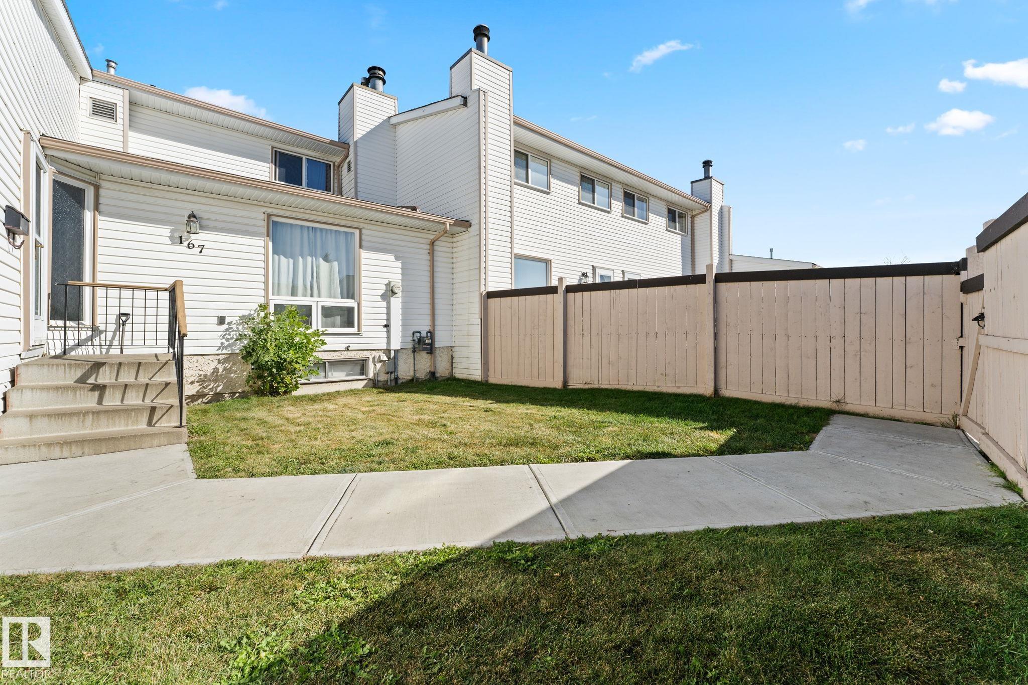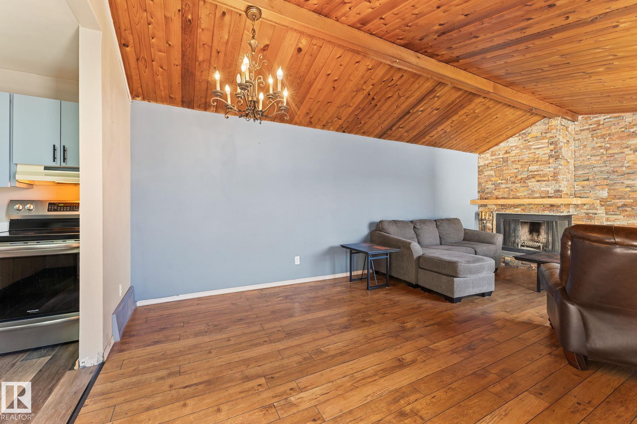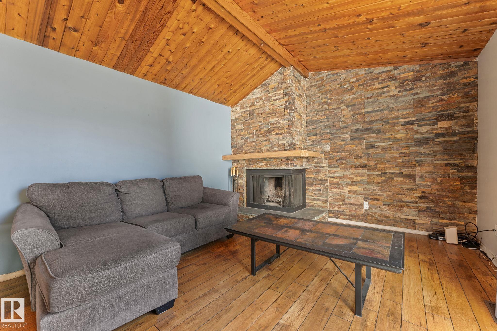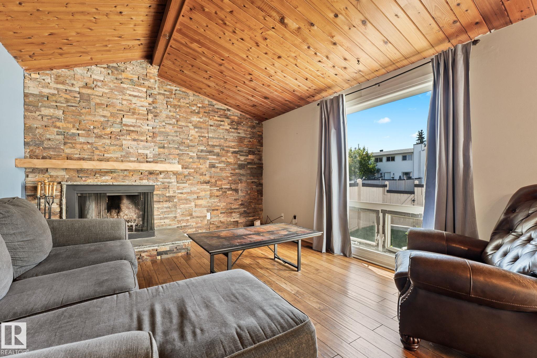 Welcome to this END UNIT bungalow style townhouse in Ormsby! The standout features of this home are the gorgeous vaulted ceilings, beautifully updated laminate flooring paired with a stunning real stone feature wall, creating a warm and cozy atmosphere around your wood burning fireplace. The functional layout includes convenient main-floor laundry, making everyday living easy and practical. The large unfinished basement has one window that makes adding an additional bedroom a great option. You will notice the fully fenced, landscaped and private front yard perfect for pets and kids. Perfectly situated close to schools, shopping, and major roadways, yet tucked away on a quiet street away from heavy traffic.  Whether you're a first-time buyer, downsizing, or looking for an investment property, this home offers comfort and convenience in a desirable location. Don't miss the opportunity to make this charming townhouse yours!