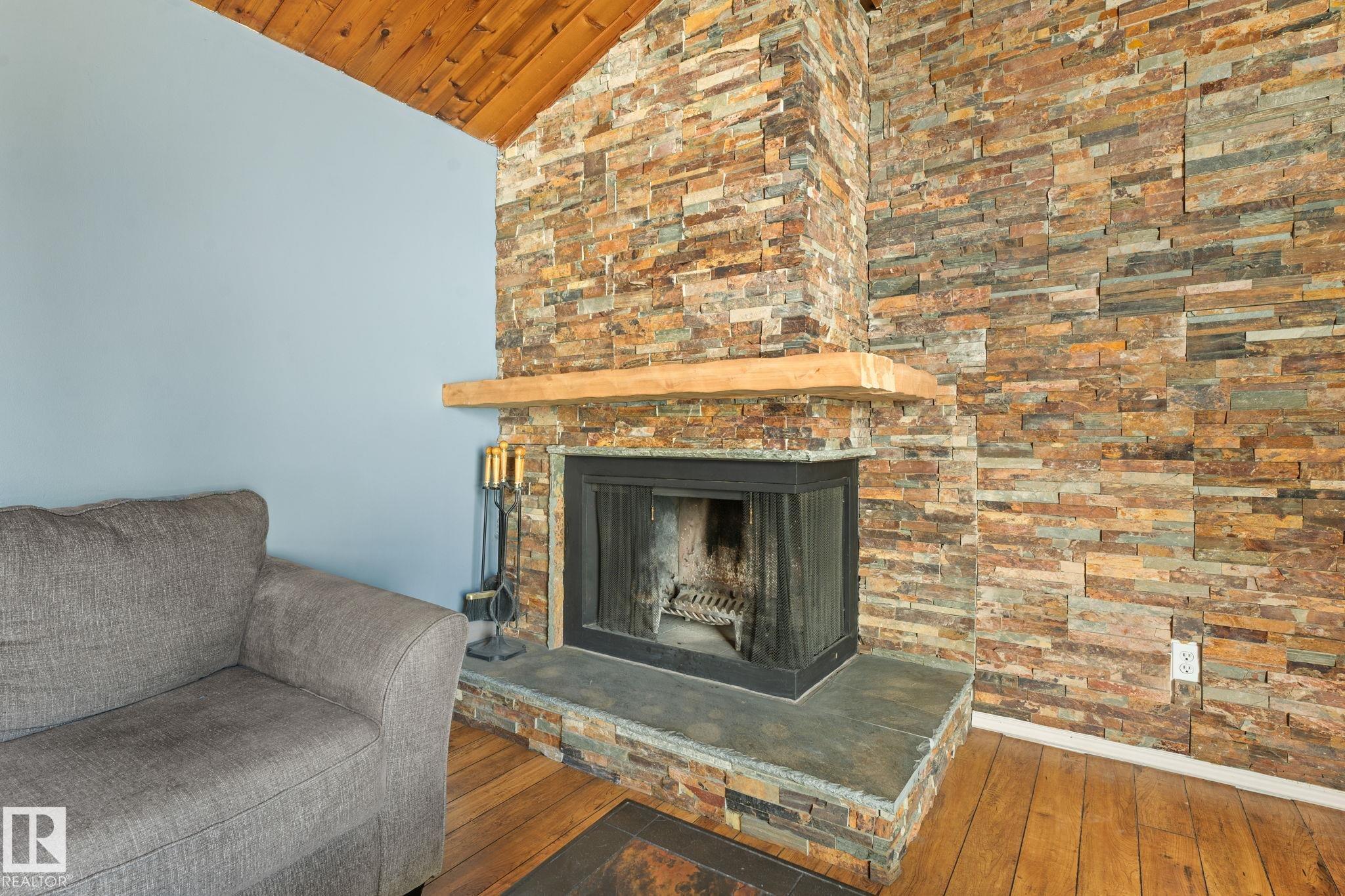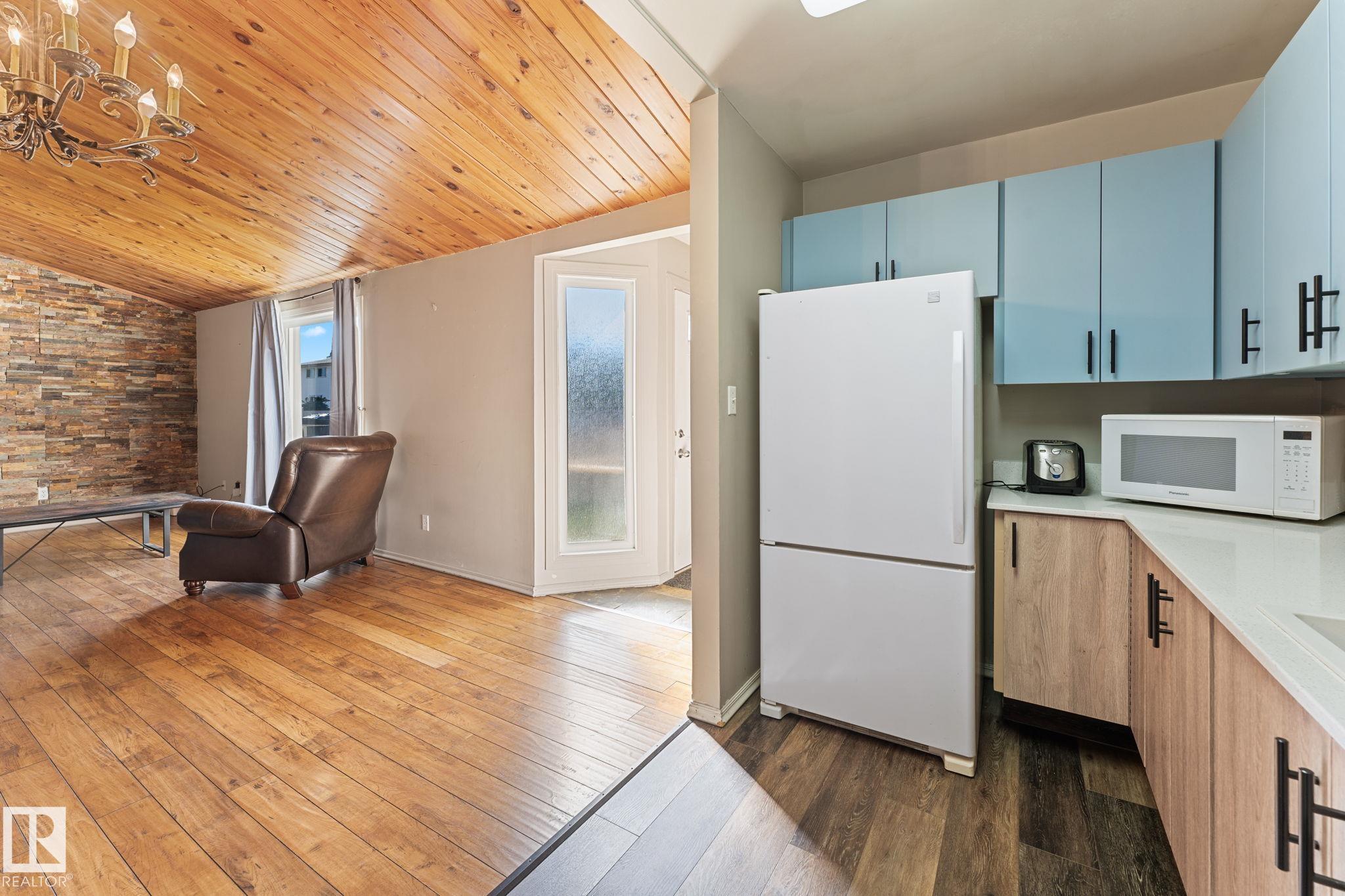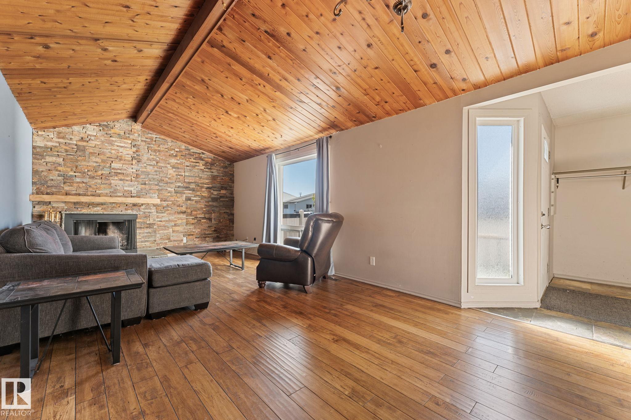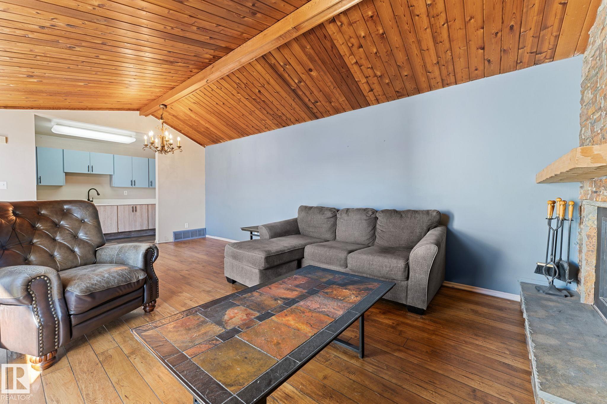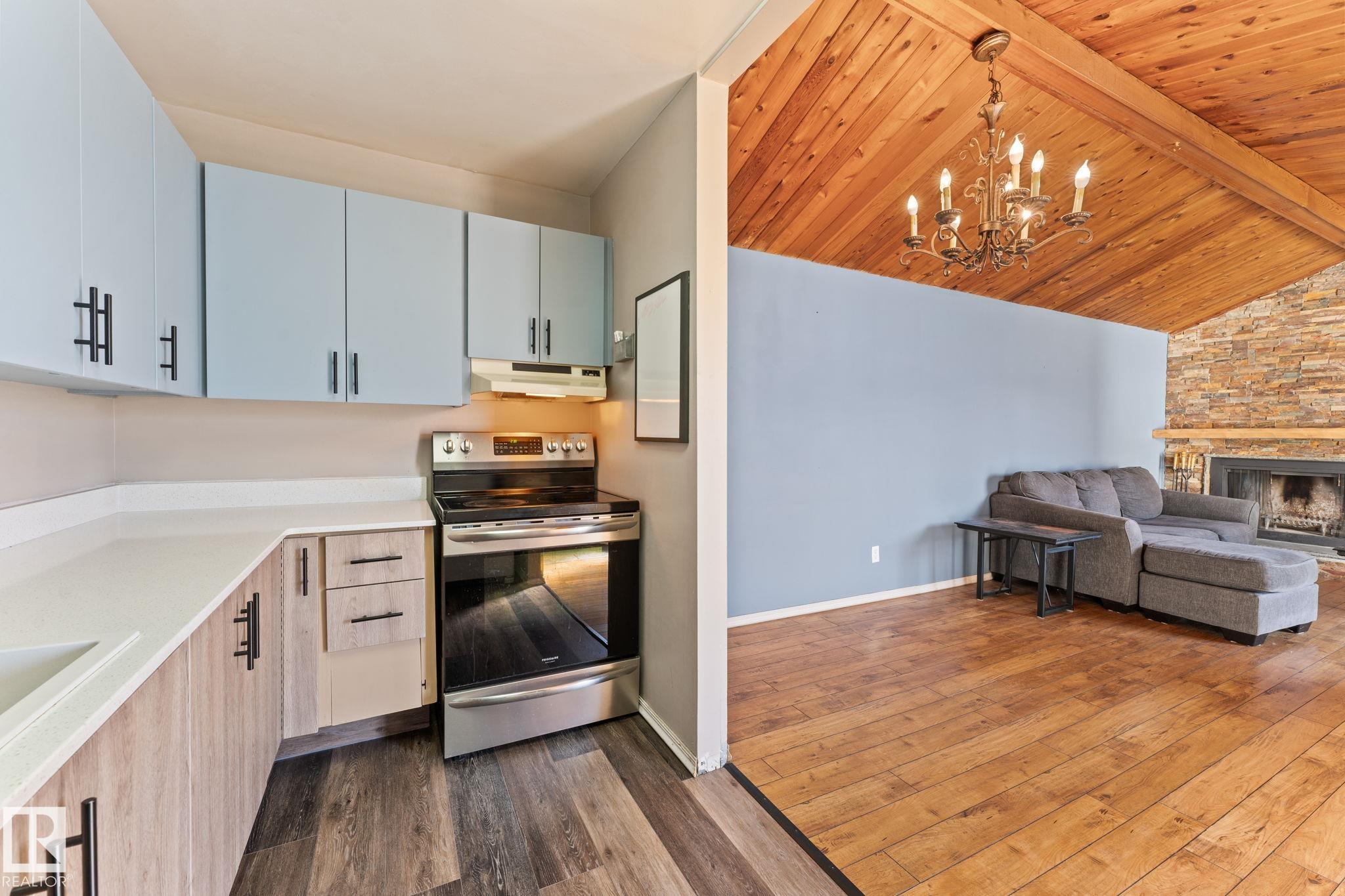 Welcome to this END UNIT bungalow style townhouse in Ormsby! The standout features of this home are the gorgeous vaulted ceilings, beautifully updated laminate flooring paired with a stunning real stone feature wall, creating a warm and cozy atmosphere around your wood burning fireplace. The functional layout includes convenient main-floor laundry, making everyday living easy and practical. The large unfinished basement has one window that makes adding an additional bedroom a great option. You will notice the fully fenced, landscaped and private front yard perfect for pets and kids. Perfectly situated close to schools, shopping, and major roadways, yet tucked away on a quiet street away from heavy traffic.  Whether you're a first-time buyer, downsizing, or looking for an investment property, this home offers comfort and convenience in a desirable location. Don't miss the opportunity to make this charming townhouse yours!