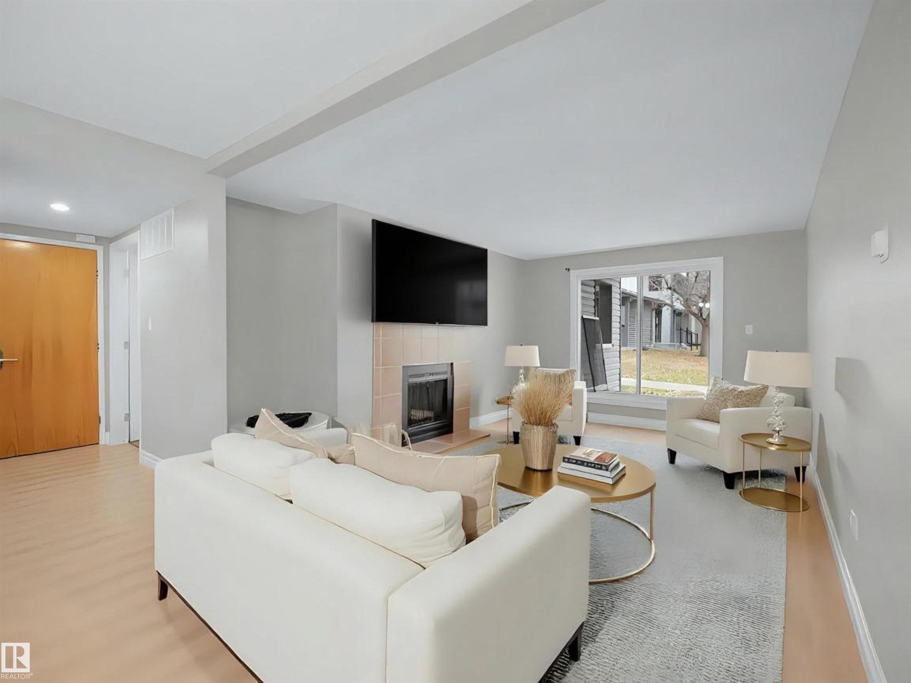 Excellent opportunity for investors or first-time buyers! This well-maintained 2-bedroom condo in the desirable neighborhood of Ormsby Place offers comfort, style, and convenience. Featuring a bright open floor plan, spacious kitchen with ample counter space, and a cozy living room with fireplace that opens to a large patio--perfect for relaxing or entertaining. Enjoy the convenience of in-suite laundry and updated features including new flooring, interior doors, and freshly painted walls. The master bedroom includes a handy half ensuite, while the second bedroom is generous in size with a nearby full bath. Located just 10 minutes from West Edmonton Mall and minutes from public transit, this condo combines easy living with excellent value. Move-in ready and ideal for those seeking a low-maintenance lifestyle in a prime West Edmonton location!