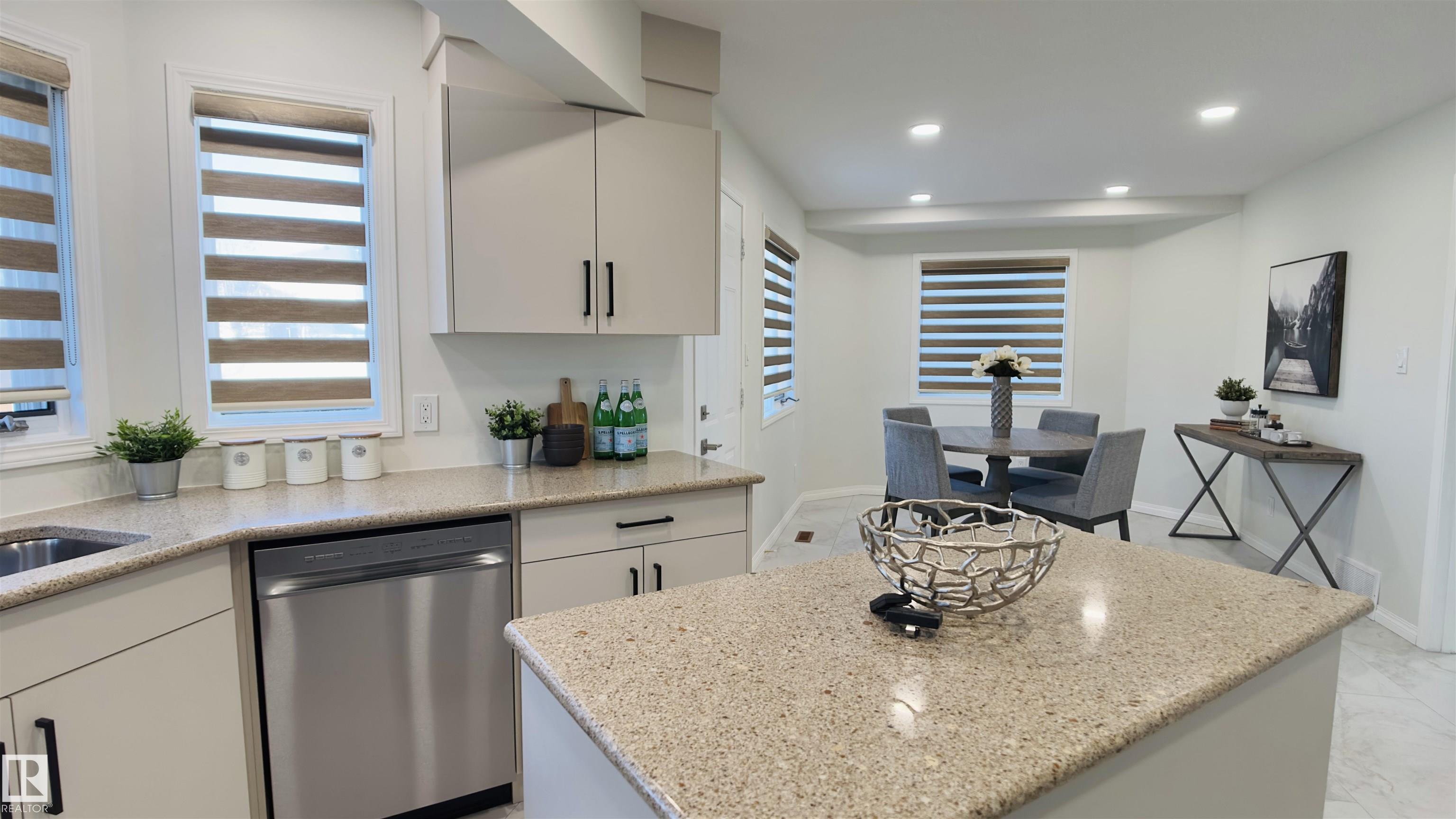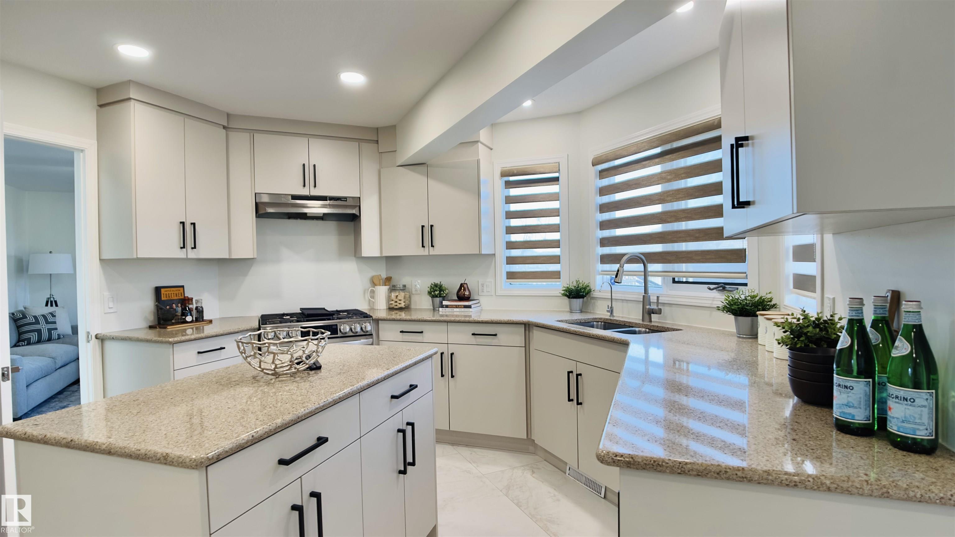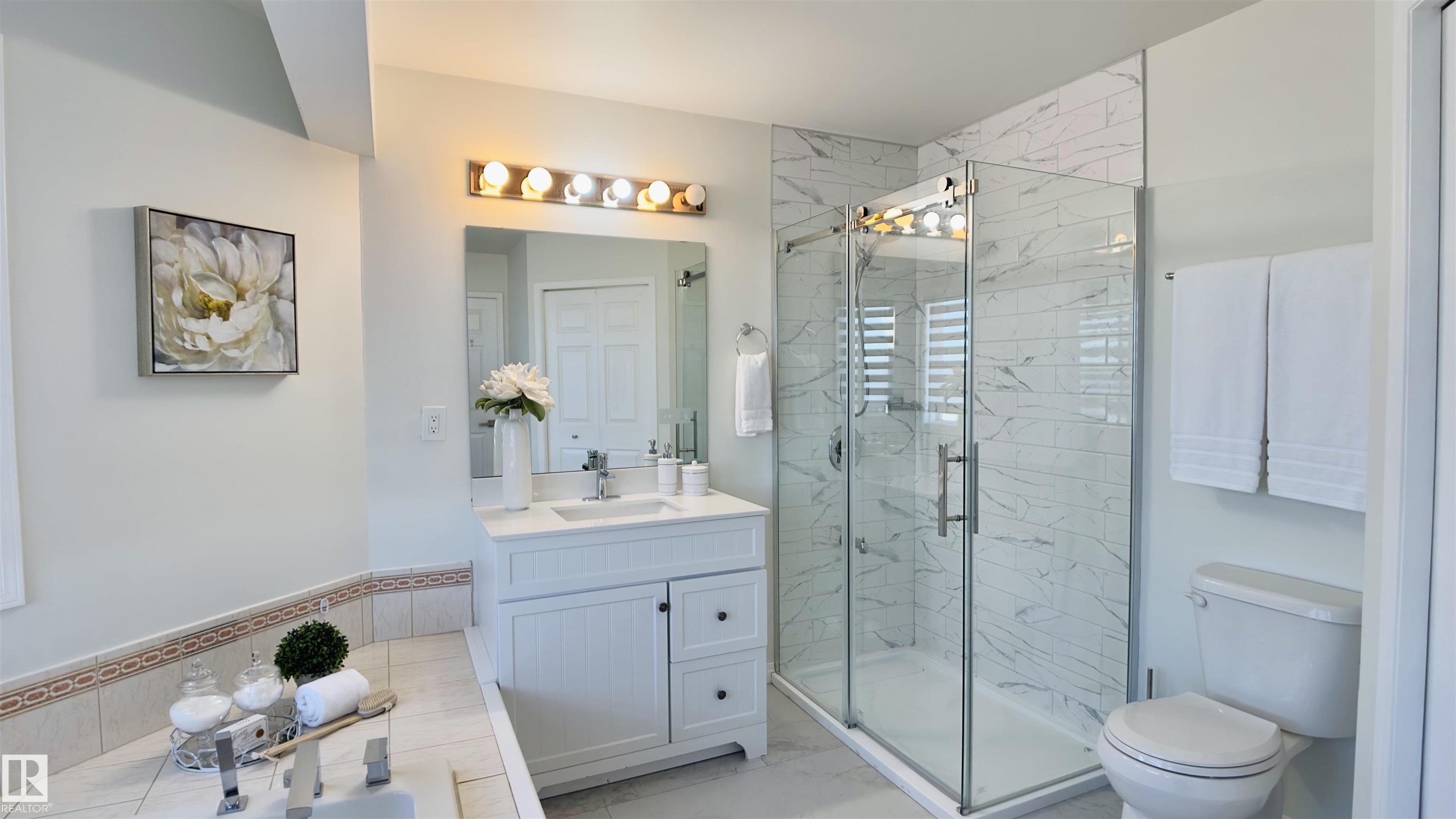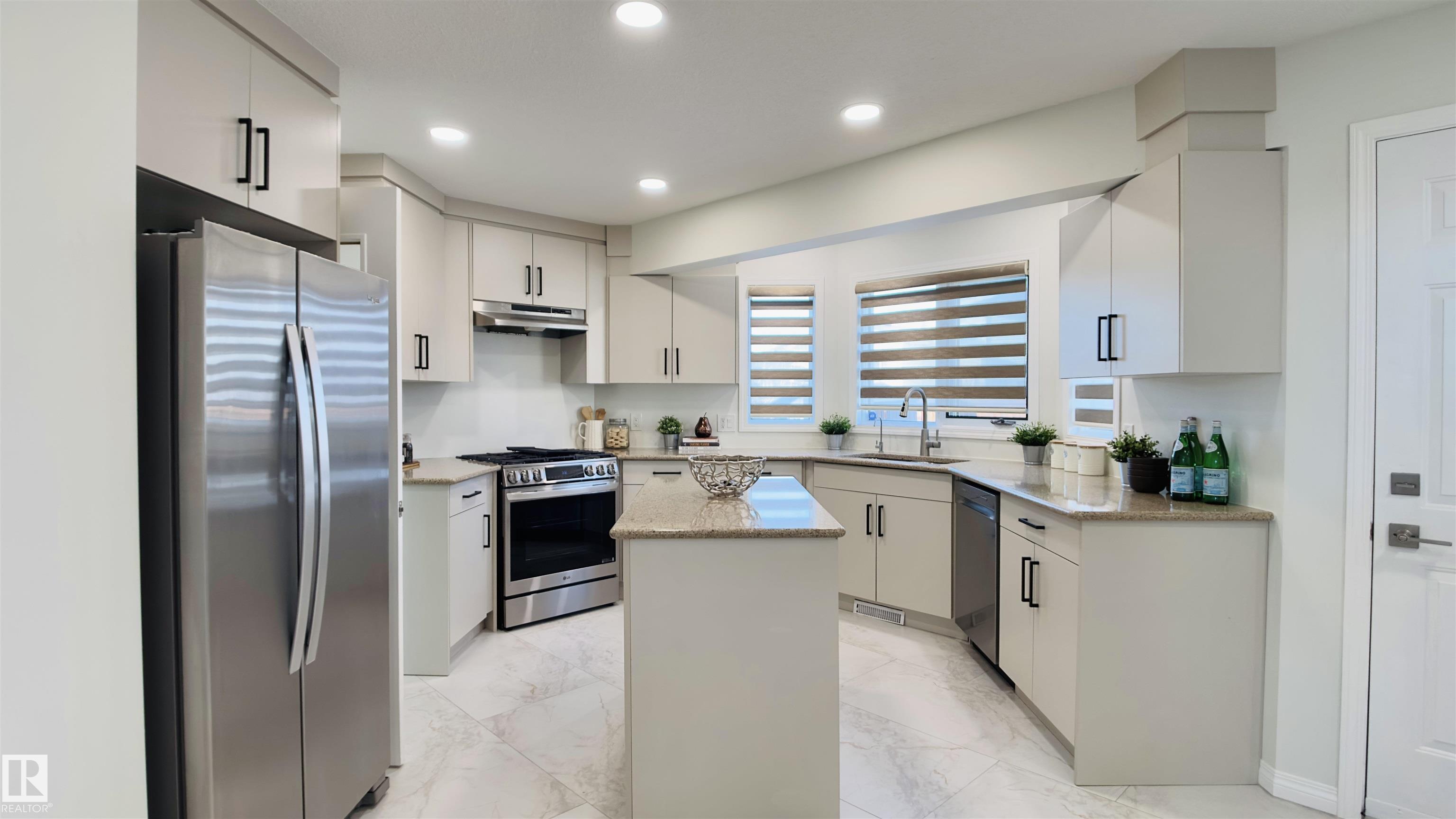 Experience luxury living in the prestigious Ozerna community! This impeccably renovated 2,325 sq. ft. home offers exceptional value steps from scenic lakes and top-rated schools. 2024 updates ensure peace of mind with new shingles, A/C, and a hot water tank. The sun-drenched interior impresses with soaring vaulted ceilings, brand-new flooring, and a versatile layout featuring two distinct living spaces and two dining areas, including a formal dining room. The modern kitchen dazzles with fresh cabinetry and stainless steel appliances, flowing into a sunny breakfast nook. Ideal for multigenerational living, the main floor includes a bedroom and a full bath. Upstairs, the massive primary suite boasts a spa-like ensuite. The fully finished basement is refreshed with plush new carpet, offering a sprawling rec room and a sparkling new washroom. Complete with a double garage and a new back shed, this turnkey gem ensures quick access to the Anthony Henday.