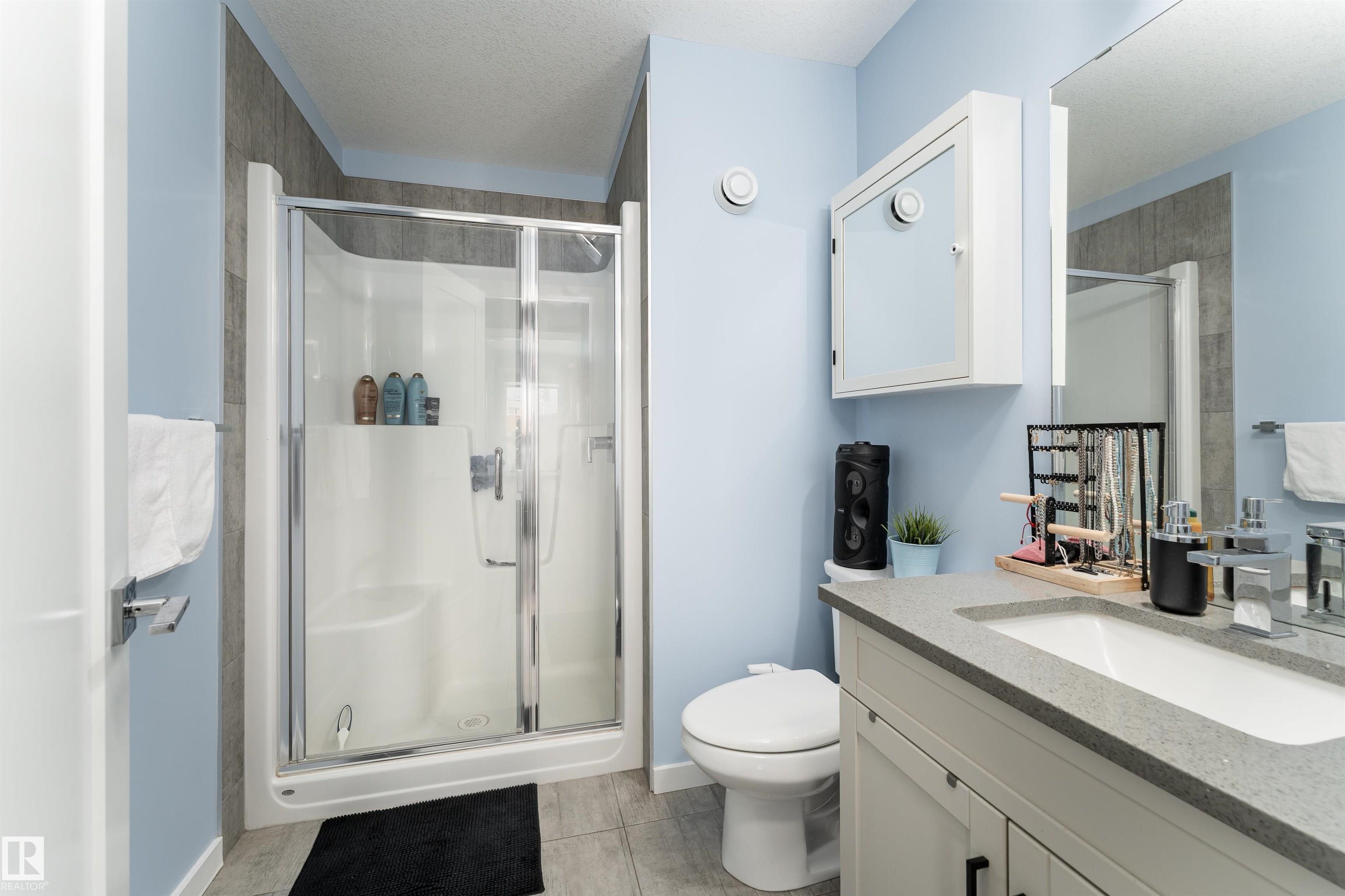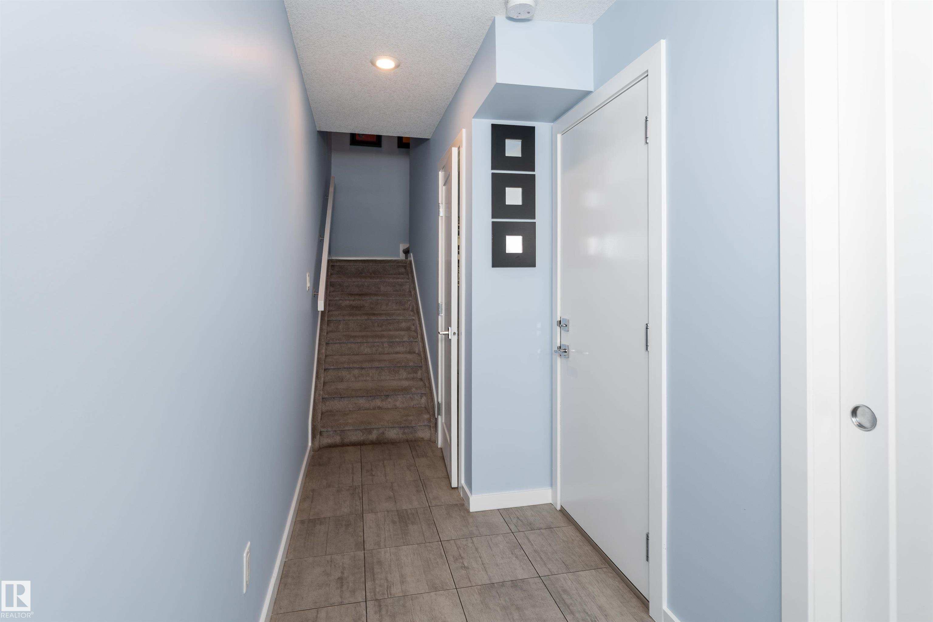 Contemporary comfort meets exceptional value in Rutherford! This stylish 3-storey townhome offers a fantastic entry into South Edmonton living with impressively low condo fees. Step inside to a welcoming foyer with easy access to the fully finished attached garage. The sun-filled main level showcases soaring windows, a sleek open-concept kitchen complete with quartz countertops and stainless steel appliances, a designated dining area, and a modern living space perfect for entertaining. The upper level features 2 spacious bedrooms, including a king-sized primary retreat with a walk-through closet and a private ensuite boasting an oversized shower. A full 4pc bathroom and convenient upstairs laundry complete this floor. Added perks include a main-floor 2pc powder room, custom garage storage and built-ins, and guest parking located just steps from the unit. Ideally located near trails, green spaces, schools, shopping, and major commuter routes.