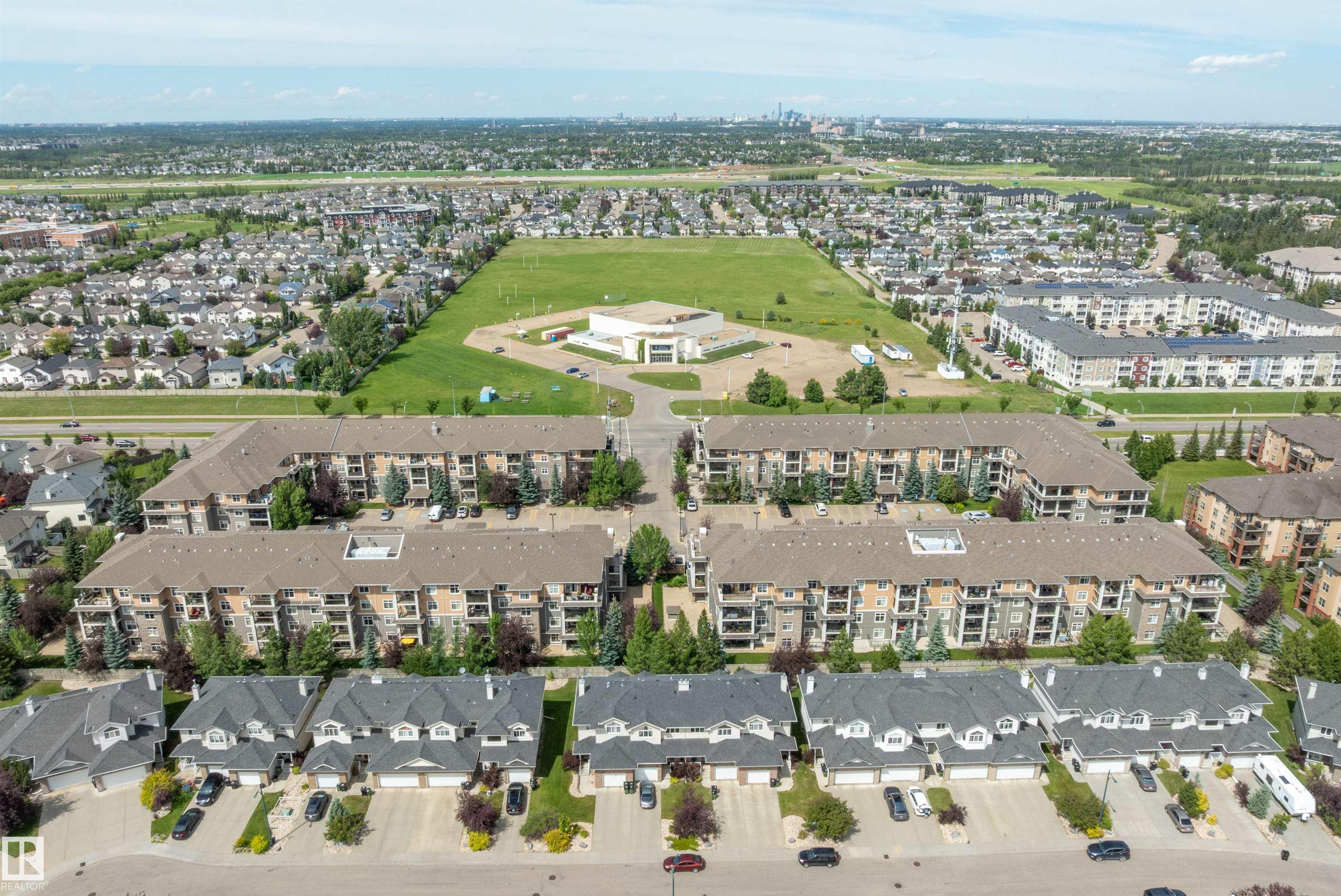 OVER 1,000sq ft of living space in Rutherford Gate! This bright and spacious two-bedroom condo offers exceptional value with a titled underground parking stall and secure storage cage. The primary bedroom features a walk-in closet and private three-piece ensuite, while the second bedroom is conveniently located near the full four-piece bathroom. Enjoy a thoughtfully designed island-style kitchen with abundant cabinetry and a window over the sink, creating a light-filled workspace. The large living room is warm and inviting with a cozy gas fireplace and expansive windows. Step outside to your wraparound, two-sided balcony with windows on two exposures, bringing in natural light throughout the day. A generously sized in-suite laundry room adds everyday convenience. Ideal for first-time buyers, downsizers, or investors seeking comfort, style, and an unbeatable south Edmonton location close to amenities and major routes.