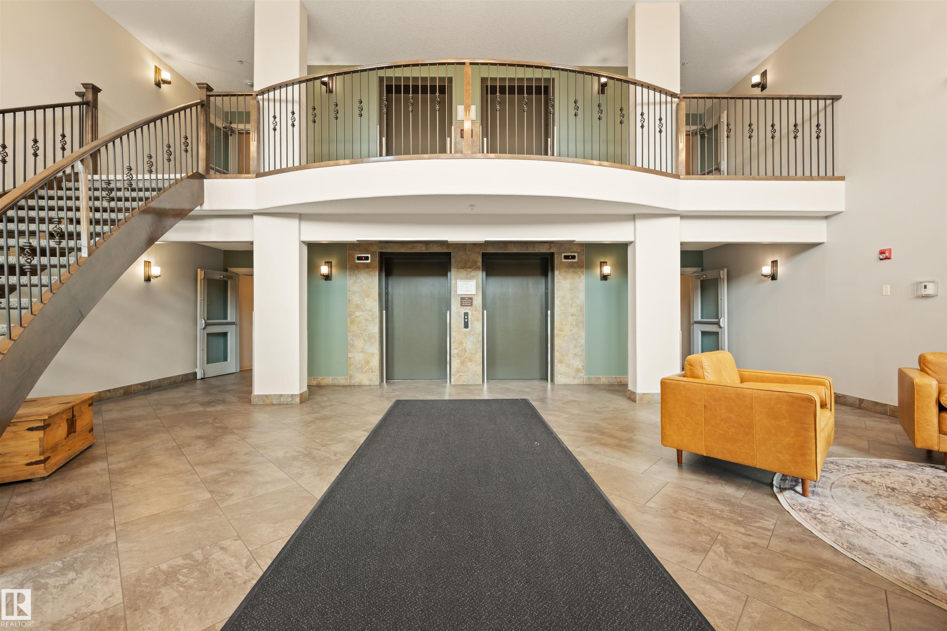 Welcome to this sophisticated and highly coveted corner unit with central A/C in this adult (18+) condo building. A stylish, private foyer welcomes you into the elegant dining area and open-concept layout. Newer luxury hardwood flooring flows throughout the space. The bright kitchen features stainless steel appliances, a pantry, and an island, while 9' ceiling and large windows flood the living room with natural light and frame the cozy natural gas fireplace. The spacious primary bedroom includes a walk-in closet and full ensuite. A second bedroom sits conveniently beside the main 4 piece bath. You'll also love the generous laundry room, dedicated office space/flex room, and the huge balcony--perfect for hosting guests. Comes with a titled underground parking stall and underground storage locker. Enjoy exceptional amenities: gym, sauna, steam room, social/games room, guest suite, bike room, and car wash. This building is also pet-friendly!