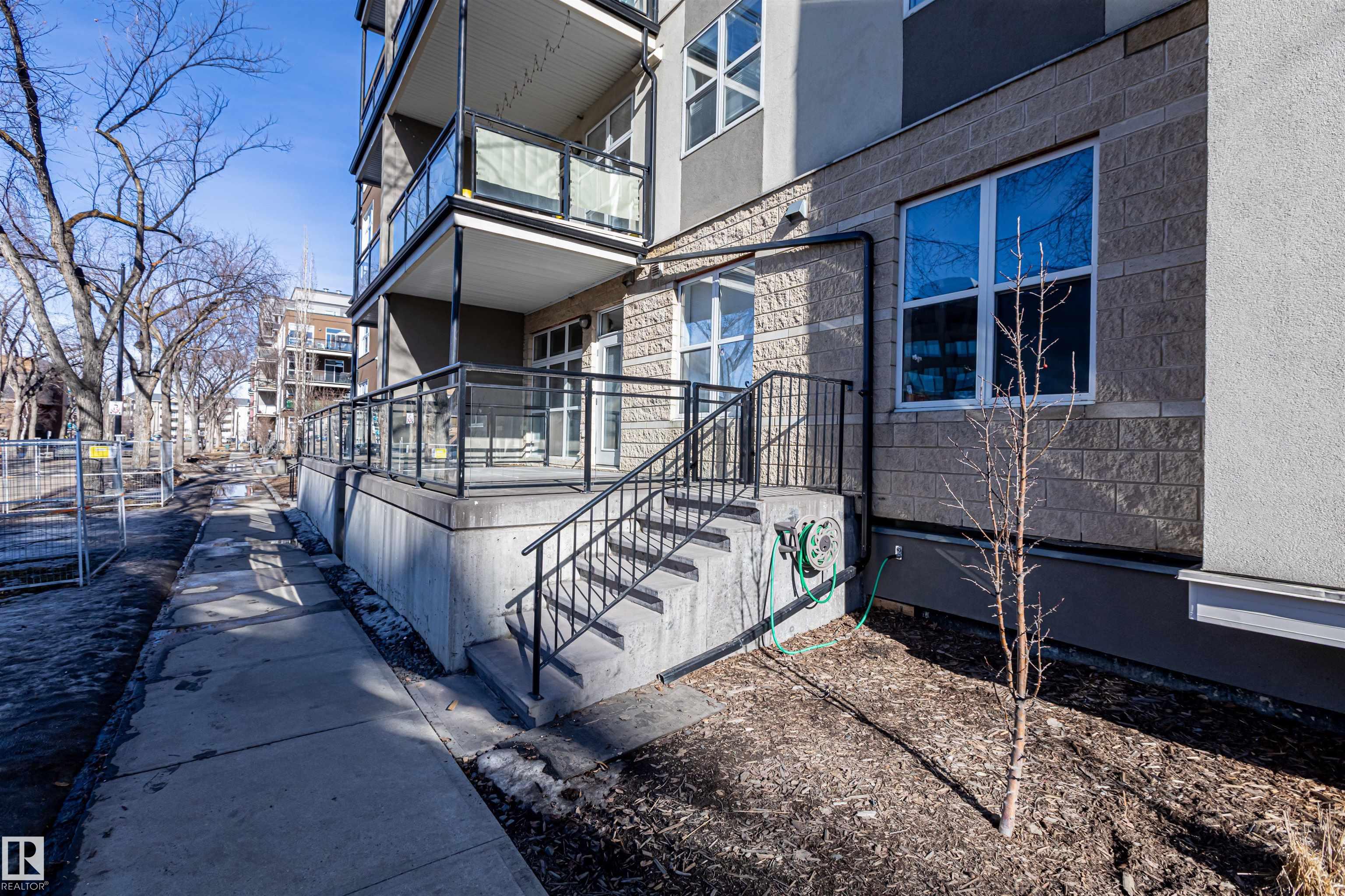 Welcome to urban sophistication at Glenora Gates! This PET FRIENDLY, 1 bed/1 bath unit offers a seamless open-concept design with soaring 10' ceilings, freshly painted interiors & abundance of natural light. The spacious bedroom features a generous walk-in closet, offering ample storage for your wardrobe essentials. A well-appointed galley kitchen is the central hub & includes a raised island eating bar. Step outside to discover the expansive balcony, gated for privacy & featuring direct access to the sidewalk--a coveted spot for those seeking a commercial unit to welcome clients! Alternatively, it's an ideal space for pet owners, providing easy access for walks or enjoying fresh air. Additional highlights: in-suite laundry, A/C & underground parking for convenience and security--a true rarity in urban living. Located in the heart of Glenora, between the vibrant Brewery District and the eclectic shops and restaurants along 124th Street, Glenora Gates ensures you're always at the center of urban living.