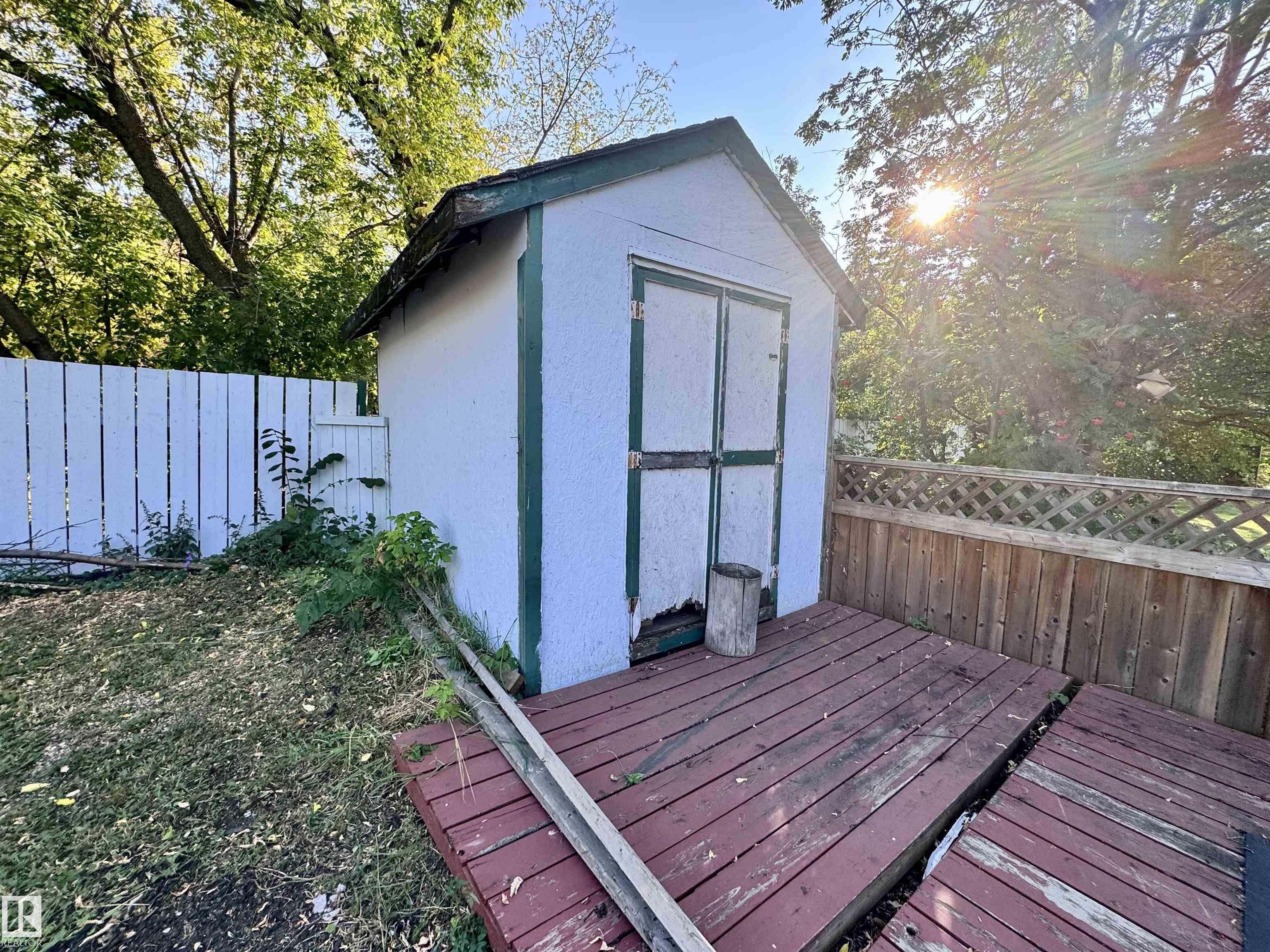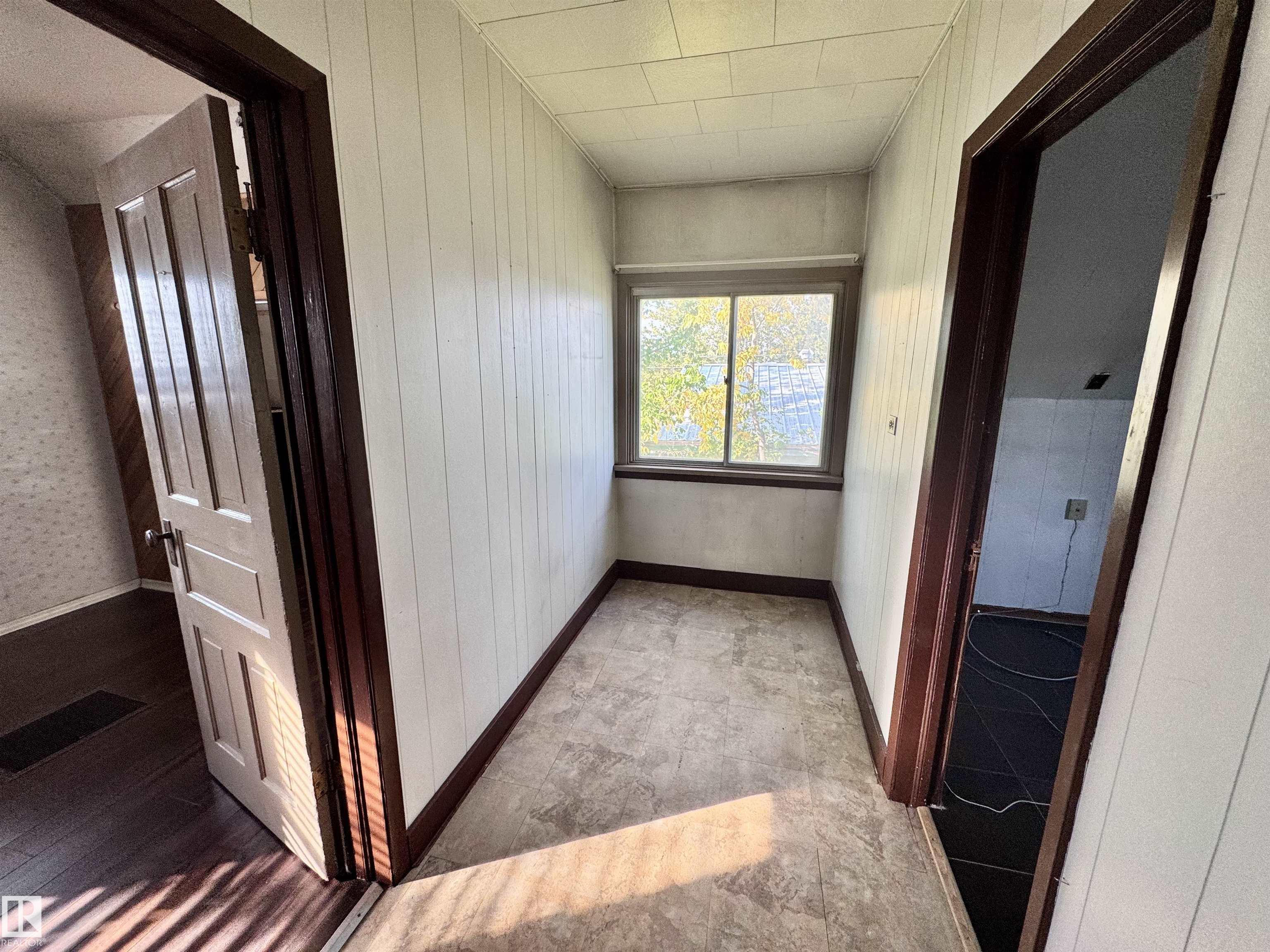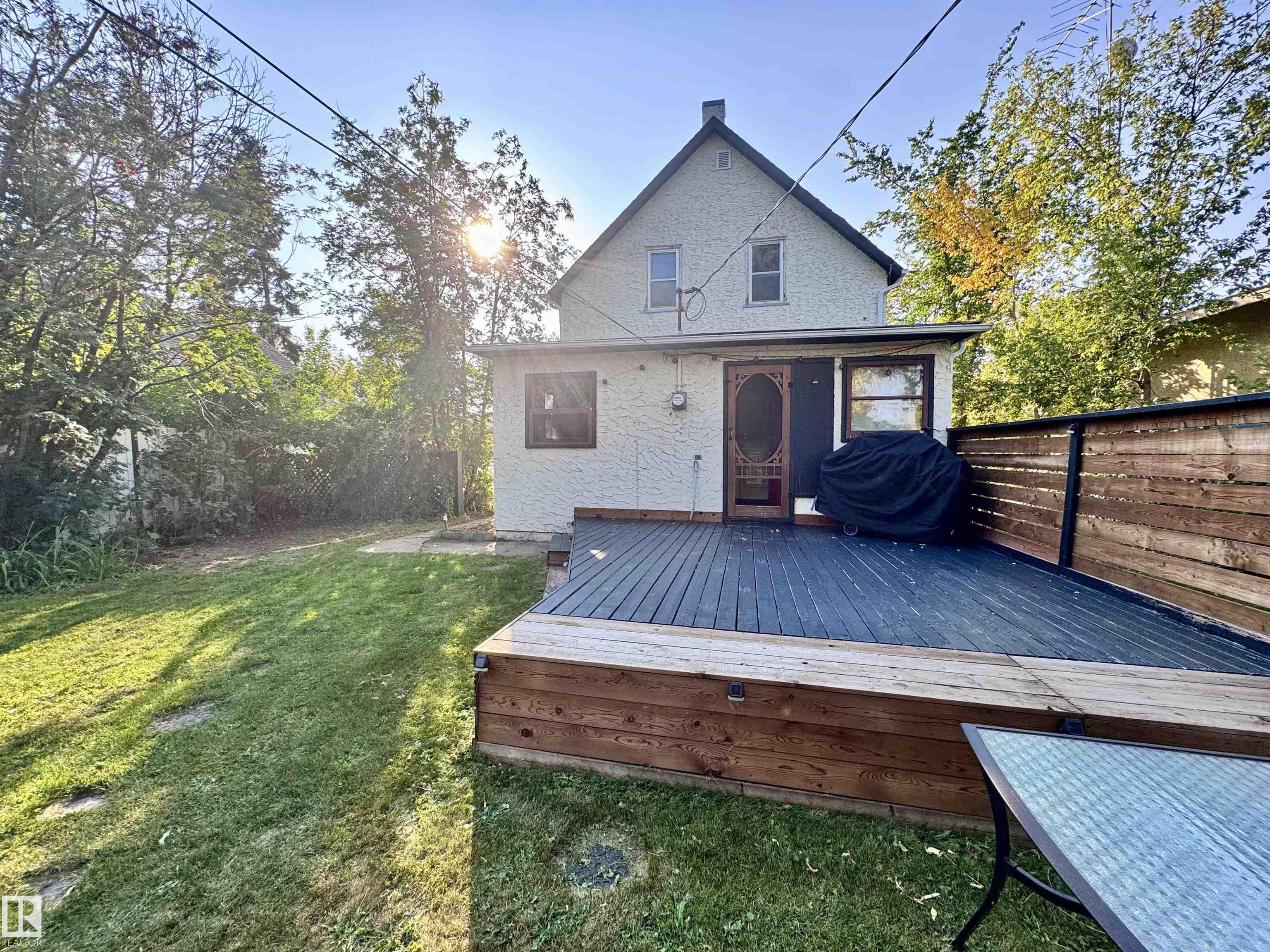 Charming character home nestled on the south side of Vegreville! This inviting property exudes warmth both inside and out. The main floor features a spacious kitchen, a cozy living area, a bright breakfast nook or sun room, main-floor laundry, and a convenient 3-pc bath. Upstairs, you'll find two generously sized bedrooms, a versatile office/flex space, and a large 3-pc bath to complete the layout. Step outside to a beautifully landscaped backyard showcasing a private deck, mature trees, lush greenery, and a fire pit--perfect for outdoor gatherings. There's also a handy shed for all your lawn care tools, a separate fenced area ideal for a garden or dog run, and a single-car garage, a cement pad for RV storage or off street parking for added convenience. Recent updates/upgrades include: appliances, furnace, hot water tank, soffits, fascia, fencing, and shingles on the house and a new roof on the garage.