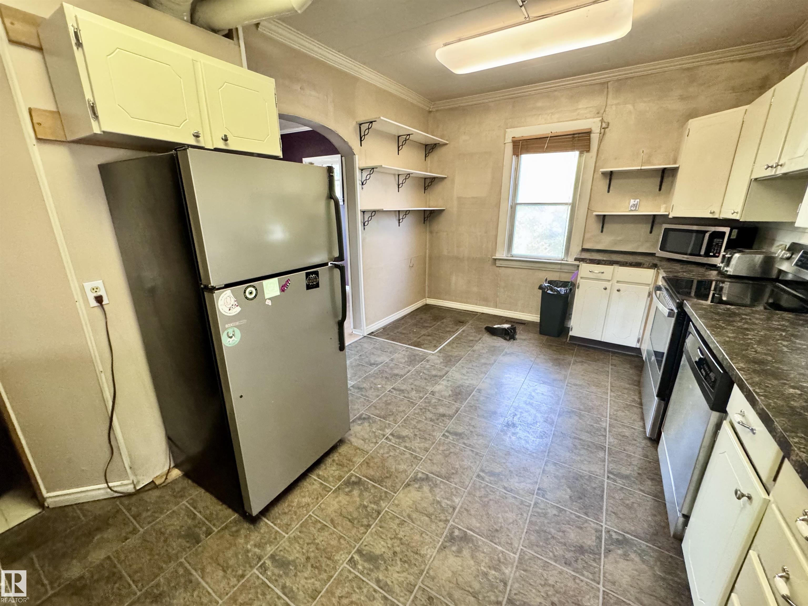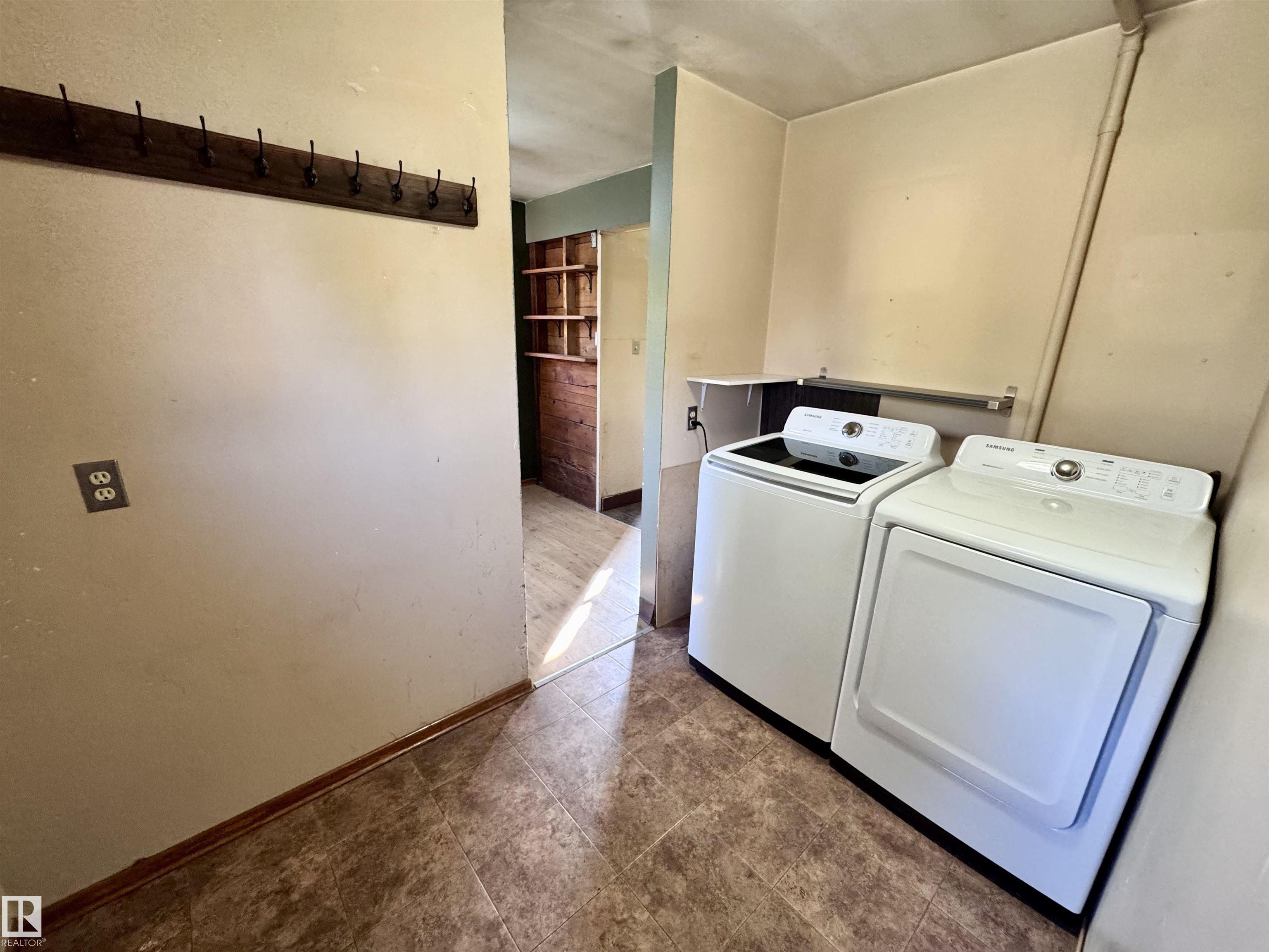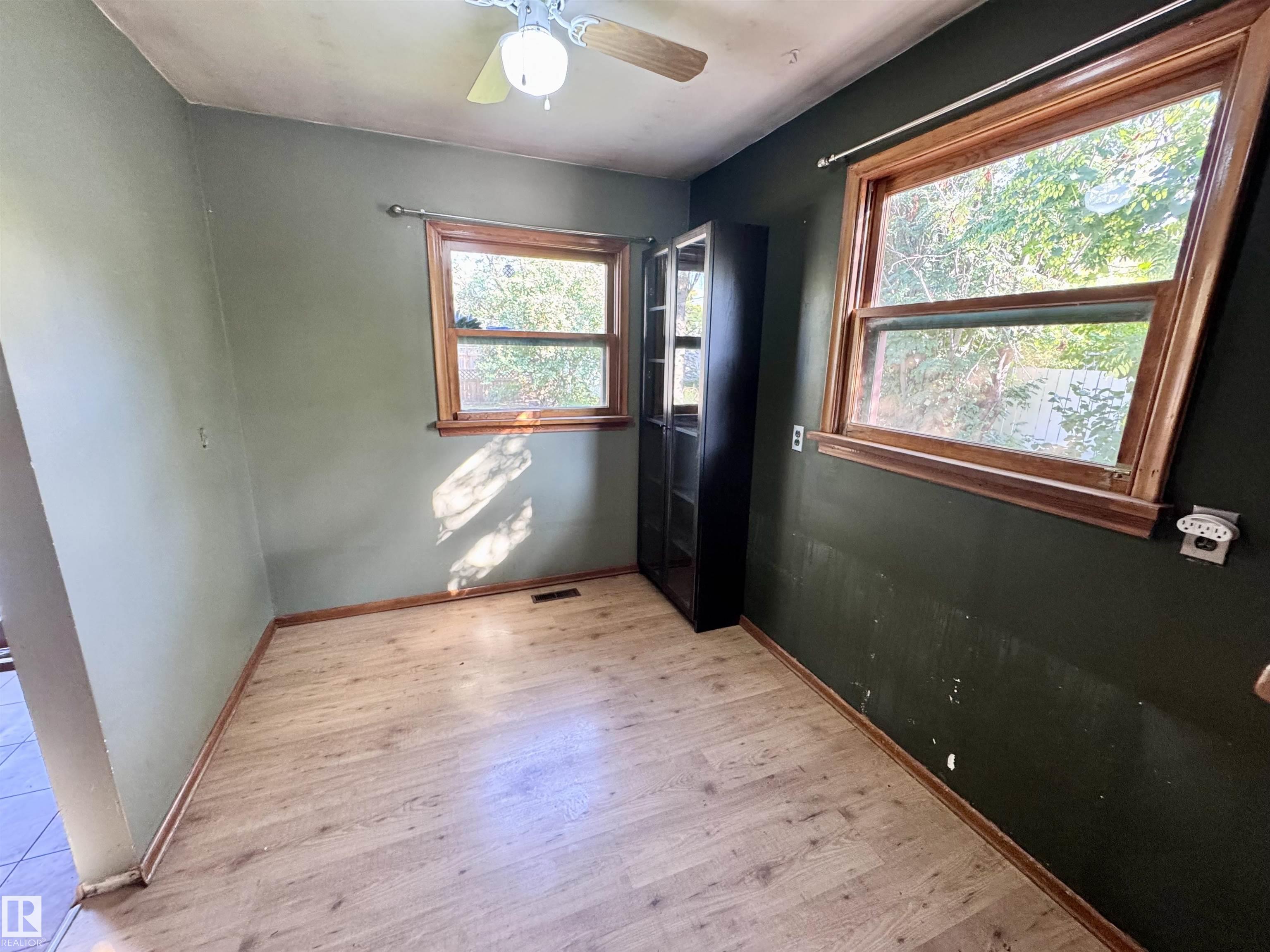 Charming character home nestled on the south side of Vegreville! This inviting property exudes warmth both inside and out. The main floor features a spacious kitchen, a cozy living area, a bright breakfast nook or sun room, main-floor laundry, and a convenient 3-pc bath. Upstairs, you'll find two generously sized bedrooms, a versatile office/flex space, and a large 3-pc bath to complete the layout. Step outside to a beautifully landscaped backyard showcasing a private deck, mature trees, lush greenery, and a fire pit--perfect for outdoor gatherings. There's also a handy shed for all your lawn care tools, a separate fenced area ideal for a garden or dog run, and a single-car garage, a cement pad for RV storage or off street parking for added convenience. Recent updates/upgrades include: appliances, furnace, hot water tank, soffits, fascia, fencing, and shingles on the house and a new roof on the garage.