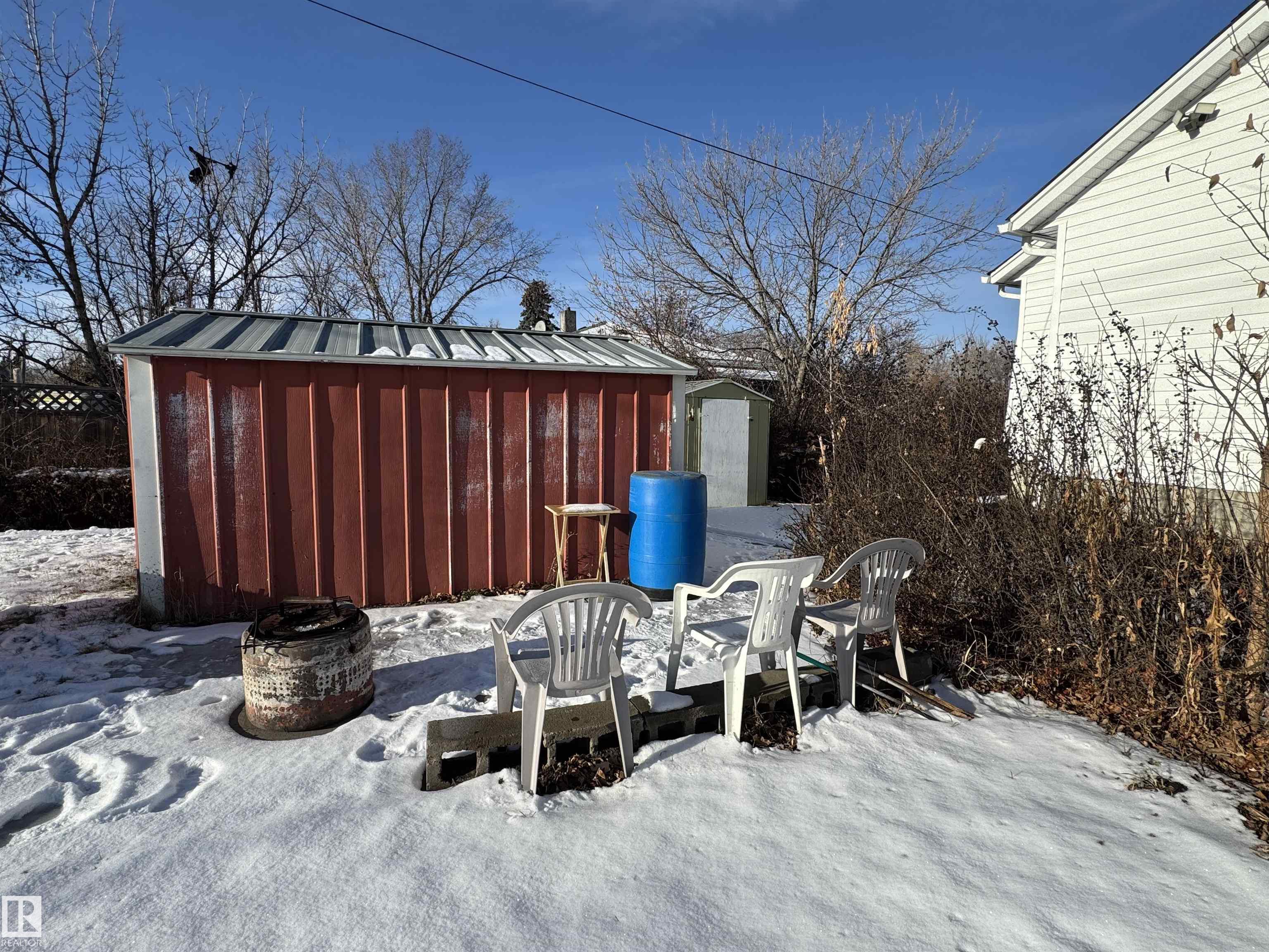 Situated on a large 9375 sq ft lot sits this lovely two bedroom bungalow. As one enters the home through a covered porch you are welcomed into the eat in kitchen with bench seating, a 4 pc updated bathroom and the secondary bedroom. A bright living room leads to a spacious primary bedroom. Downstairs features a partially finished basement complete with family room, laundry area, central vacuum and storage area. Updates throughout the years include, shingles, vinyl siding and windows, paved driveway, furnace, hot water tank, bathroom and 100 amp electrical. The spacious yard is partially fenced, offers RV parking, a single detached garage with long driveway and two storage sheds.