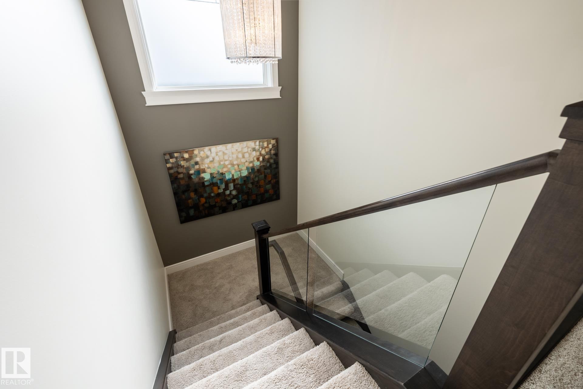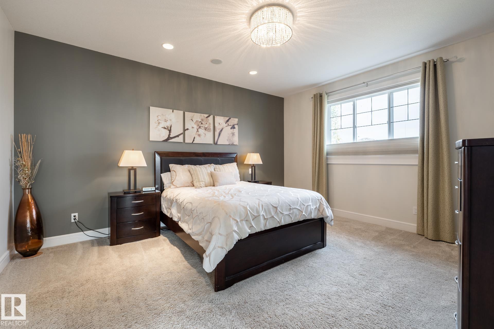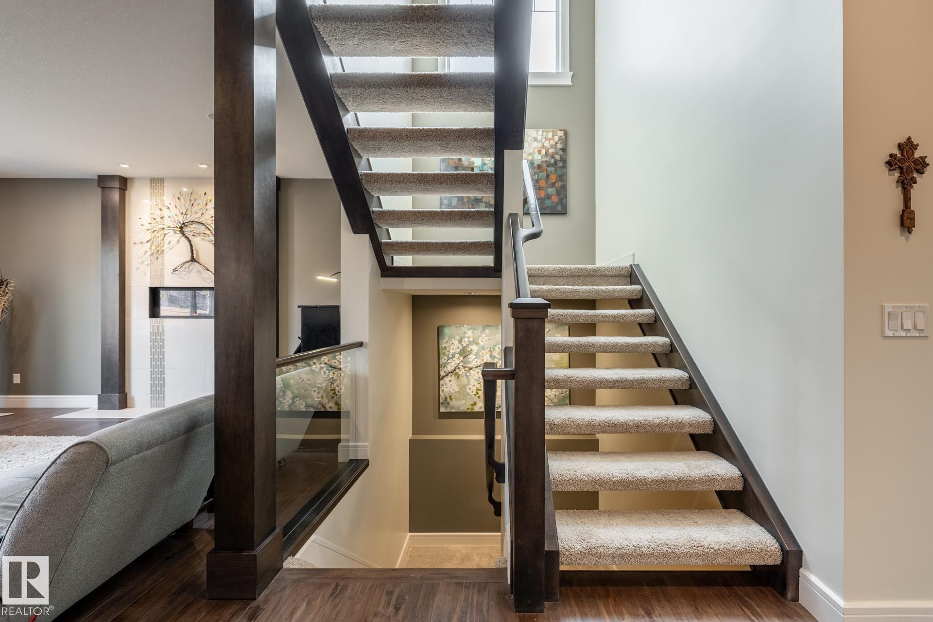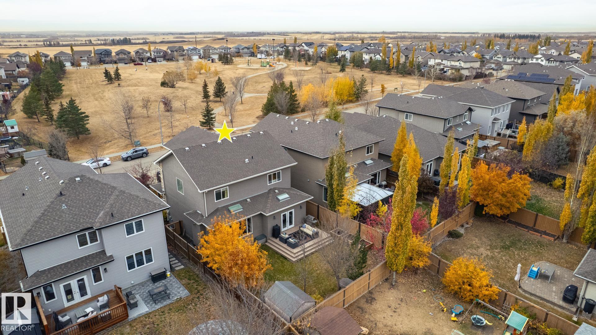 Stunning 2600 sq.ft. former showhome in North Ridge, perfectly located across from Napoleon Park with its playground, off-leash area, and skating rink. The open-concept main floor features a spacious great room with gas fireplace, skylights, and glass artwork. The gourmet kitchen offers granite counters, gas range, double ovens, walk-through pantry, and large island ideal for entertaining. A main floor office with French doors, mudroom, laundry, and 2-piece bath add convenience. Upstairs, the soundproof bonus room with park views and built-in speakers is perfect for movie nights. The primary suite includes a walk-in closet and 5-piece ensuite, with two bedrooms and a 4-piece bath completing the level. The finished basement offers a glass-enclosed gym, rec room, bedroom, and spa-like bath with rain shower. Enjoy built-in speakers throughout, engineered hardwood, oversized insulated garage, and a landscaped yard with sprinklers. Located in a friendly community with trails, schools, & neighbourhood events!