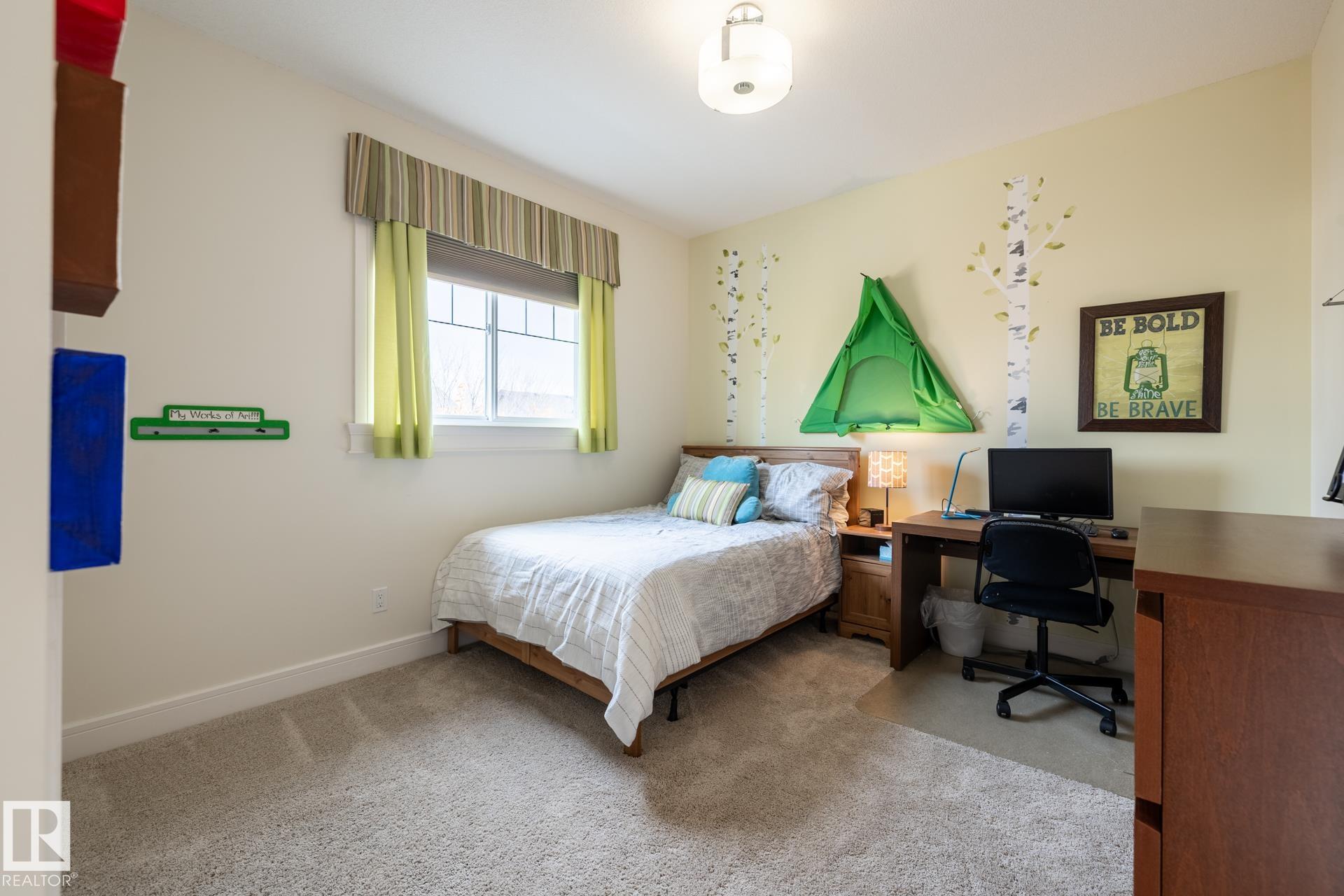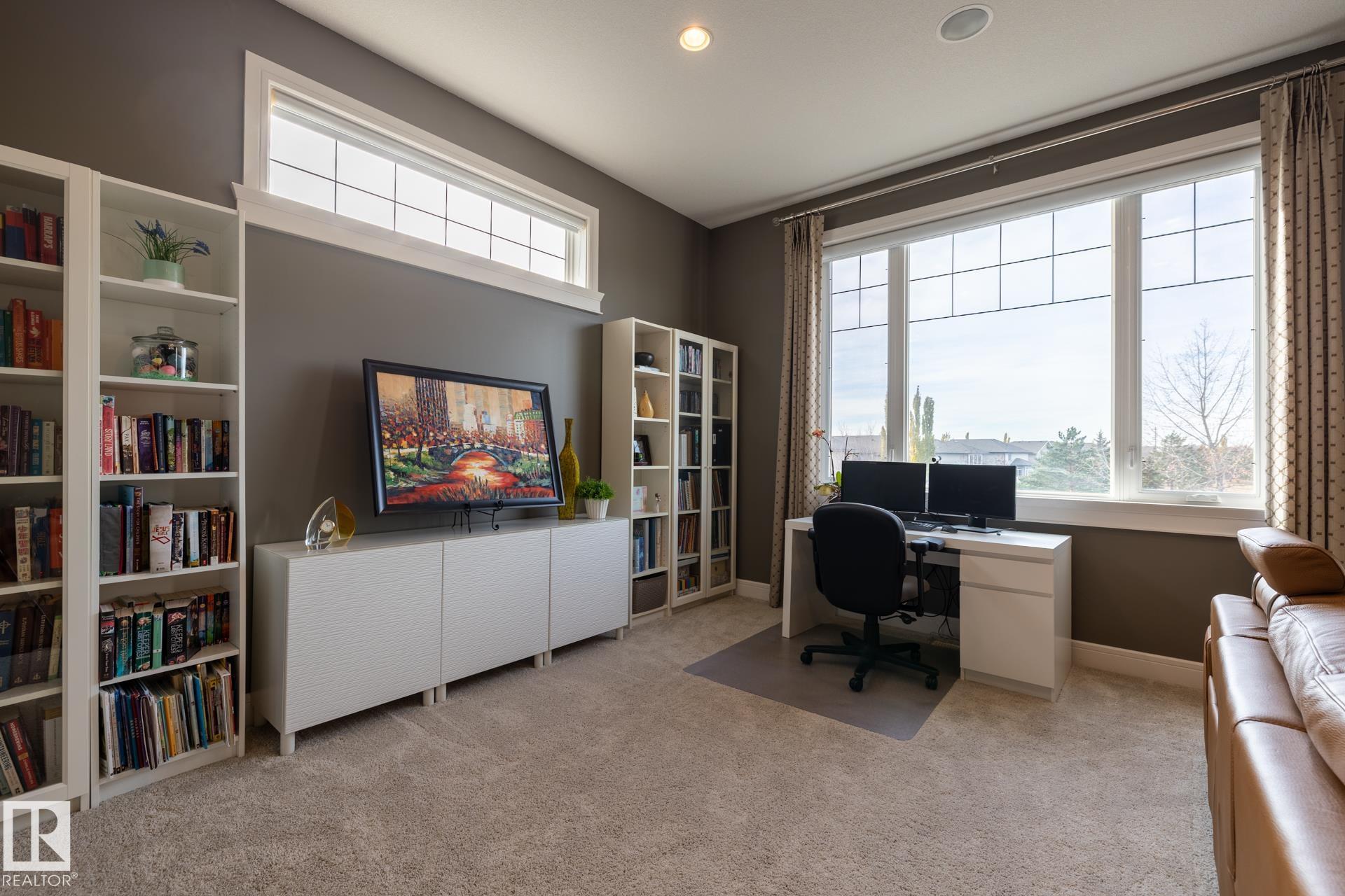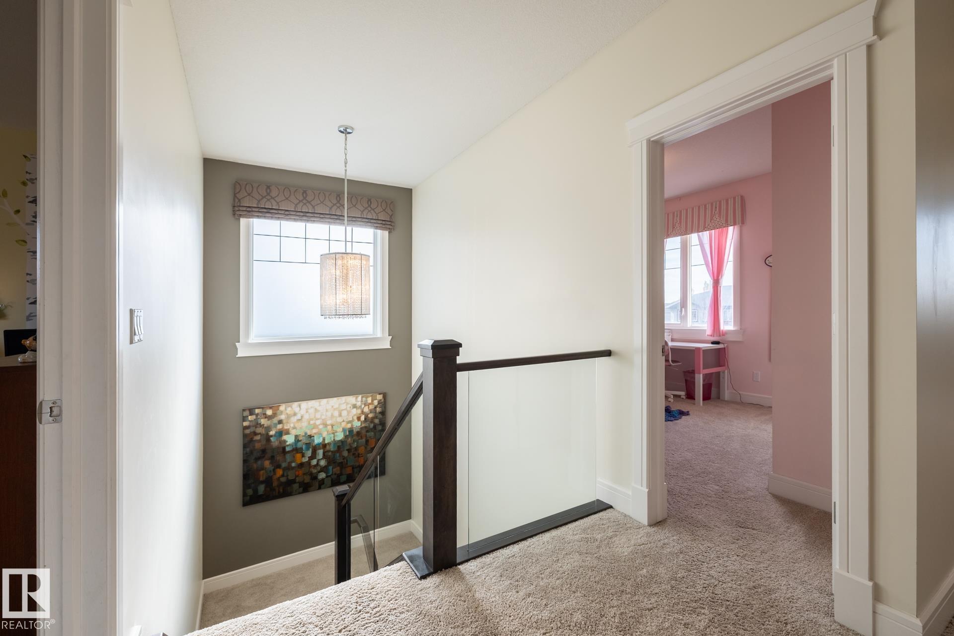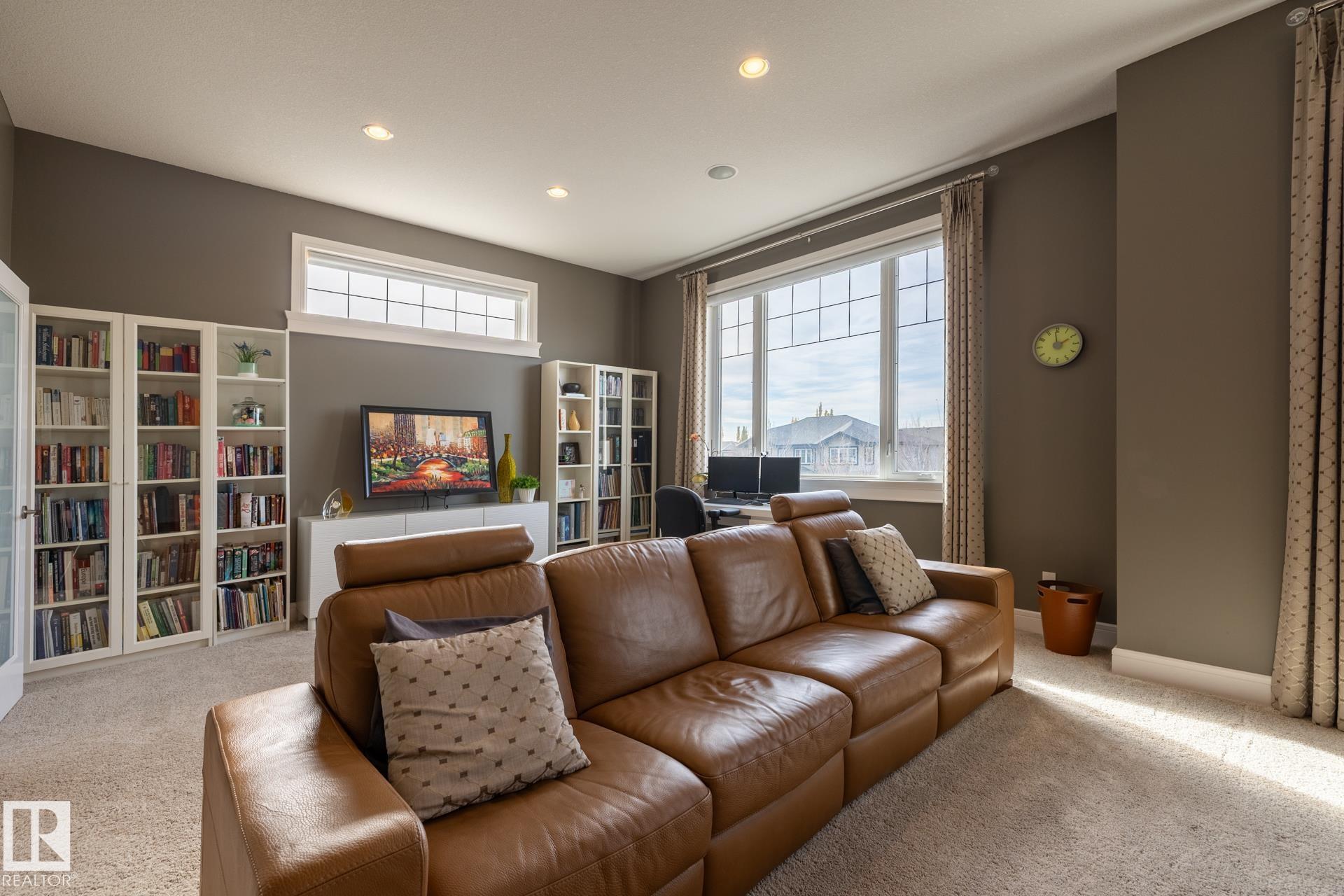 Stunning 2600 sq.ft. former showhome in North Ridge, perfectly located across from Napoleon Park with its playground, off-leash area, and skating rink. The open-concept main floor features a spacious great room with gas fireplace, skylights, and glass artwork. The gourmet kitchen offers granite counters, gas range, double ovens, walk-through pantry, and large island ideal for entertaining. A main floor office with French doors, mudroom, laundry, and 2-piece bath add convenience. Upstairs, the soundproof bonus room with park views and built-in speakers is perfect for movie nights. The primary suite includes a walk-in closet and 5-piece ensuite, with two bedrooms and a 4-piece bath completing the level. The finished basement offers a glass-enclosed gym, rec room, bedroom, and spa-like bath with rain shower. Enjoy built-in speakers throughout, engineered hardwood, oversized insulated garage, and a landscaped yard with sprinklers. Located in a friendly community with trails, schools, & neighbourhood events!