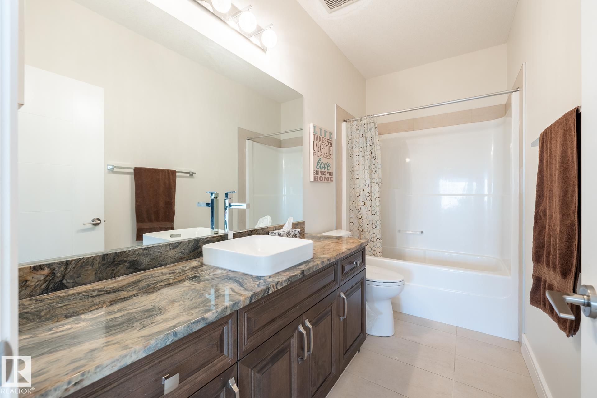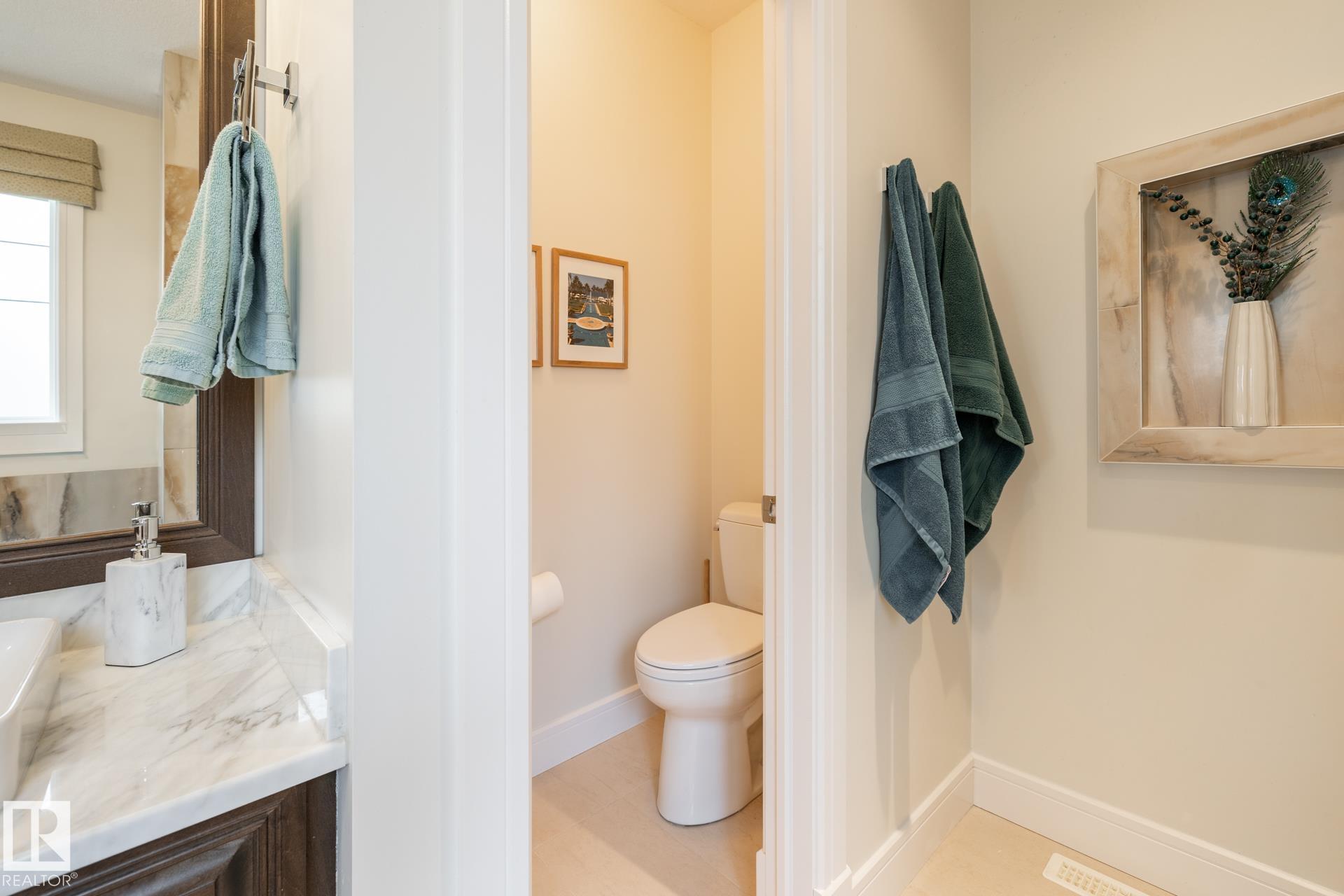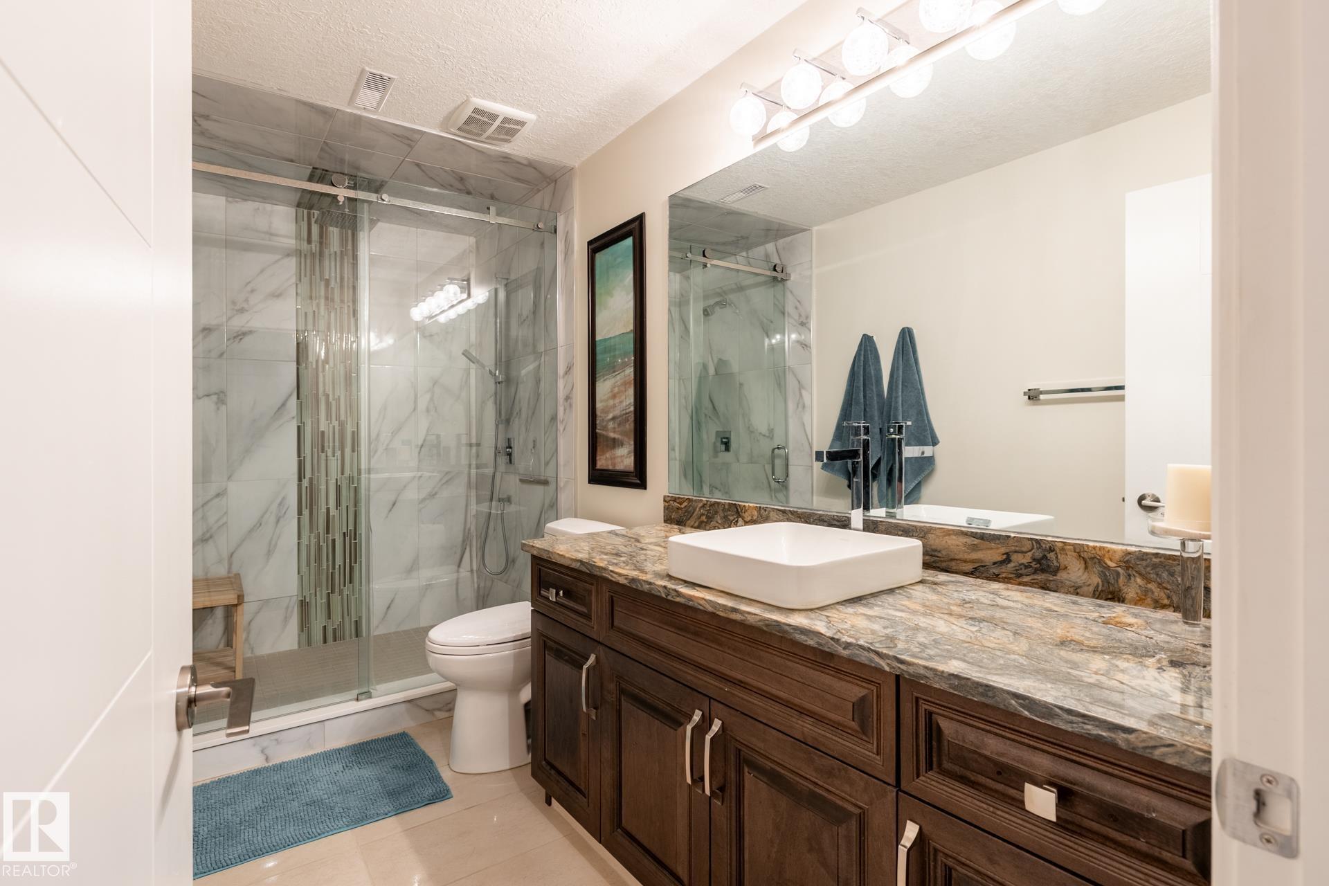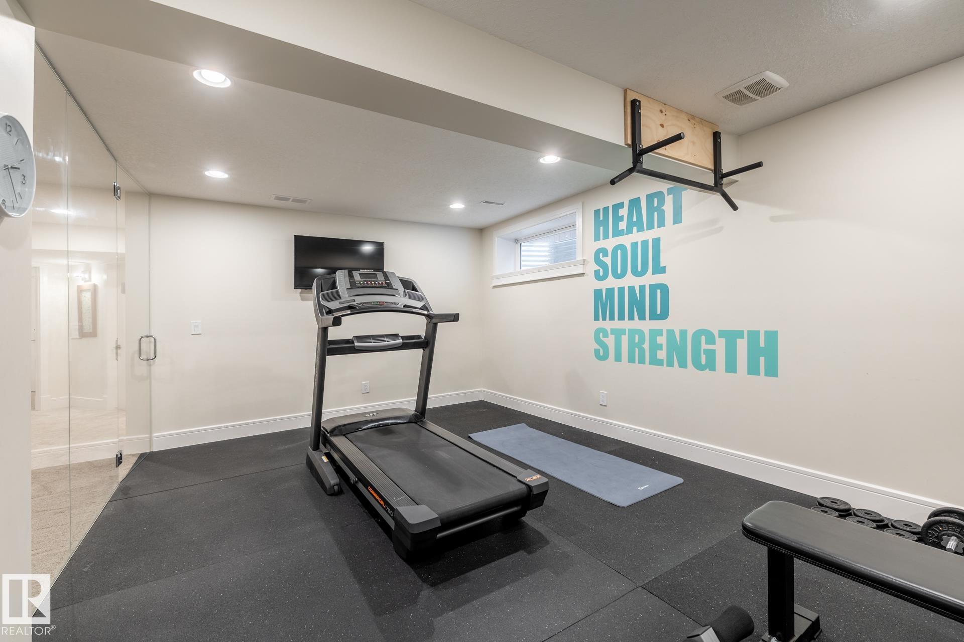 Stunning 2600 sq.ft. former showhome in North Ridge, perfectly located across from Napoleon Park with its playground, off-leash area, and skating rink. The open-concept main floor features a spacious great room with gas fireplace, skylights, and glass artwork. The gourmet kitchen offers granite counters, gas range, double ovens, walk-through pantry, and large island ideal for entertaining. A main floor office with French doors, mudroom, laundry, and 2-piece bath add convenience. Upstairs, the soundproof bonus room with park views and built-in speakers is perfect for movie nights. The primary suite includes a walk-in closet and 5-piece ensuite, with two bedrooms and a 4-piece bath completing the level. The finished basement offers a glass-enclosed gym, rec room, bedroom, and spa-like bath with rain shower. Enjoy built-in speakers throughout, engineered hardwood, oversized insulated garage, and a landscaped yard with sprinklers. Located in a friendly community with trails, schools, & neighbourhood events!