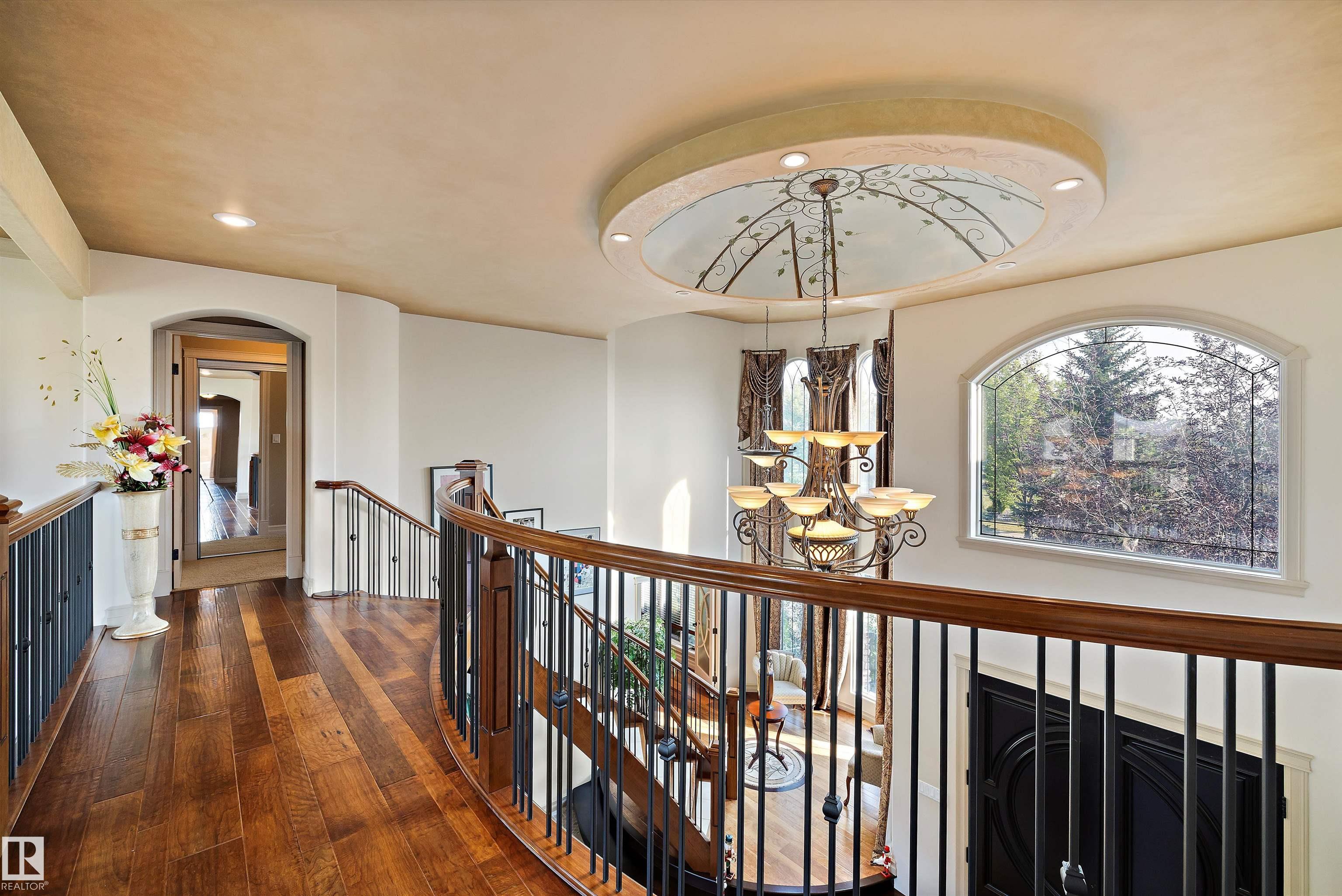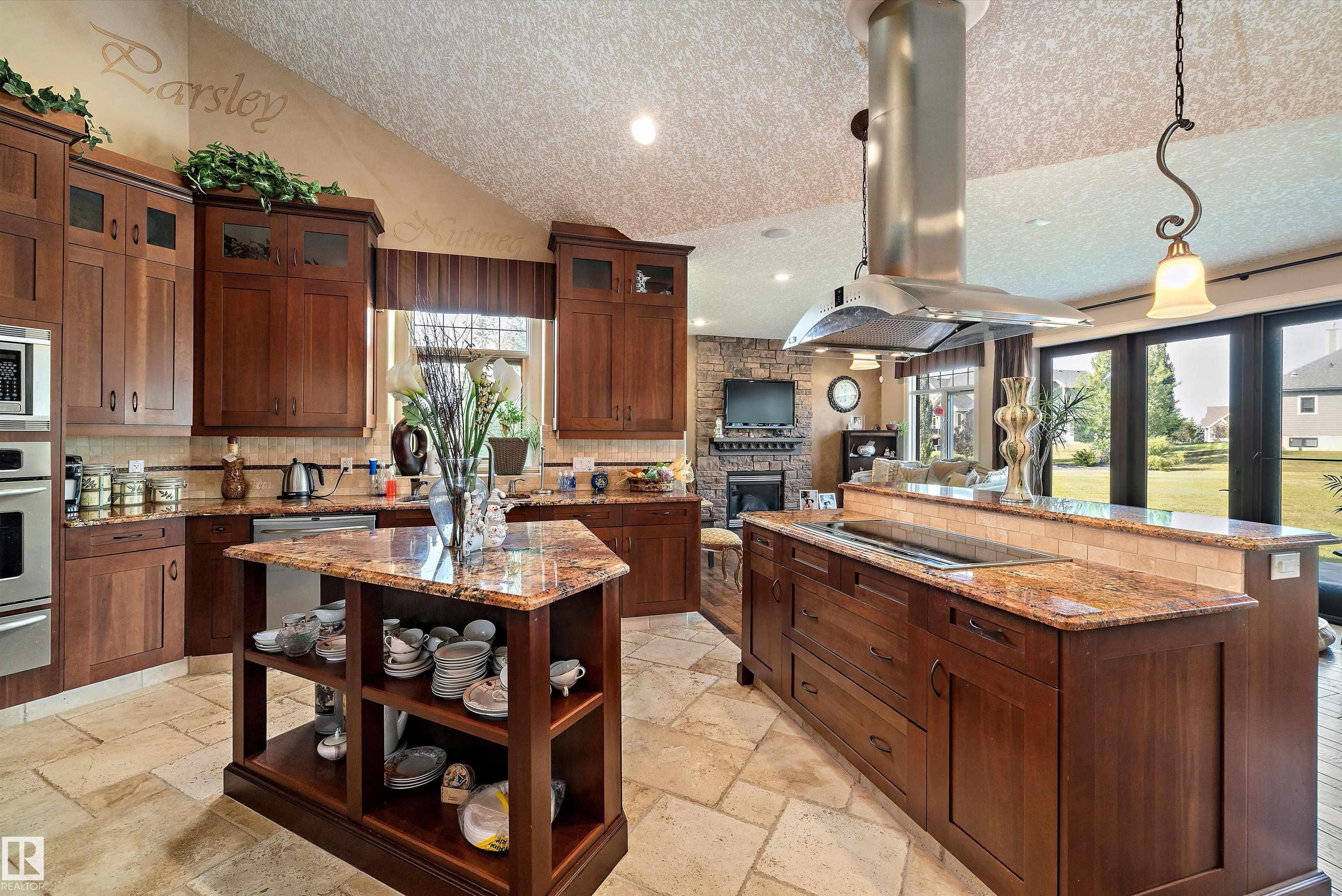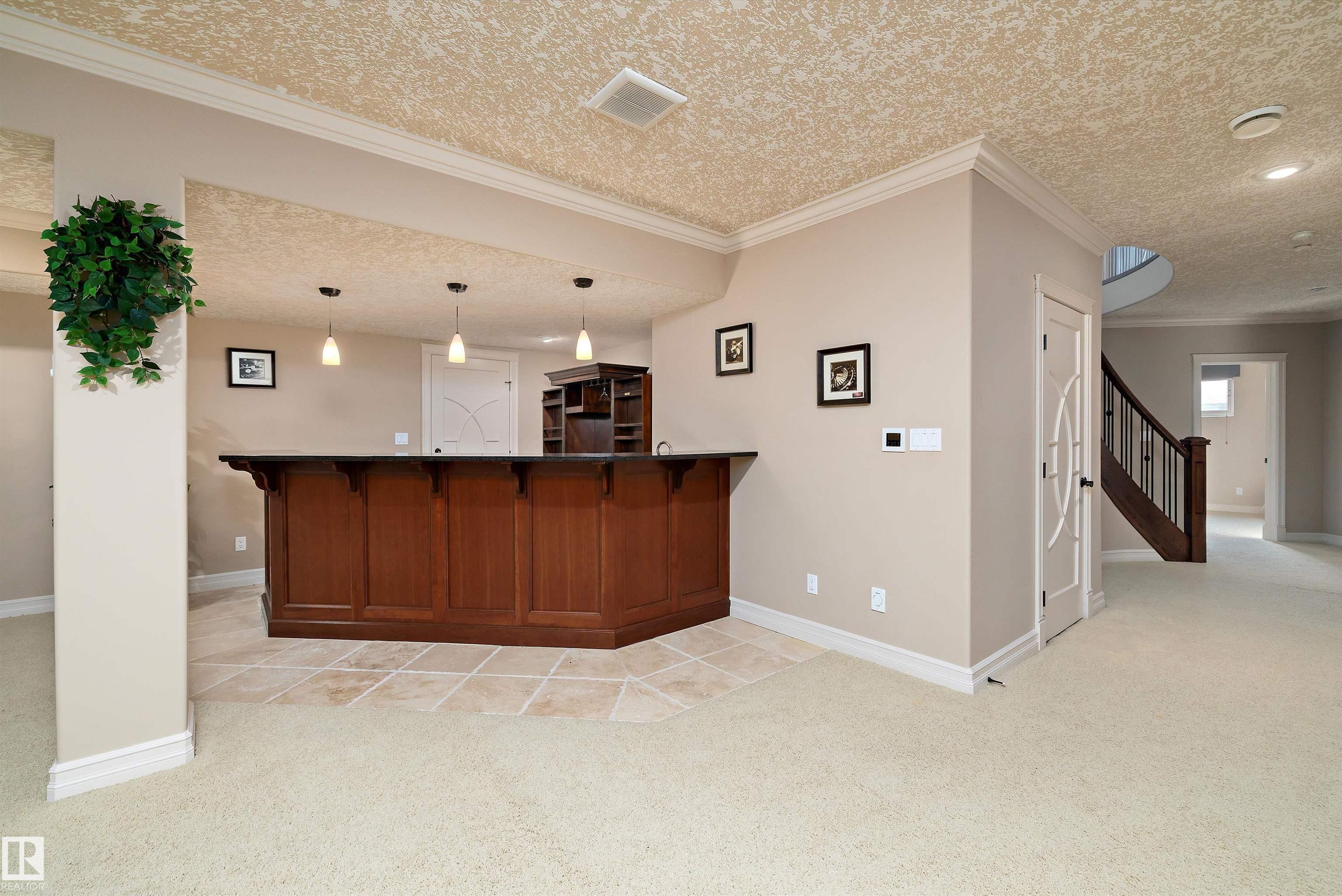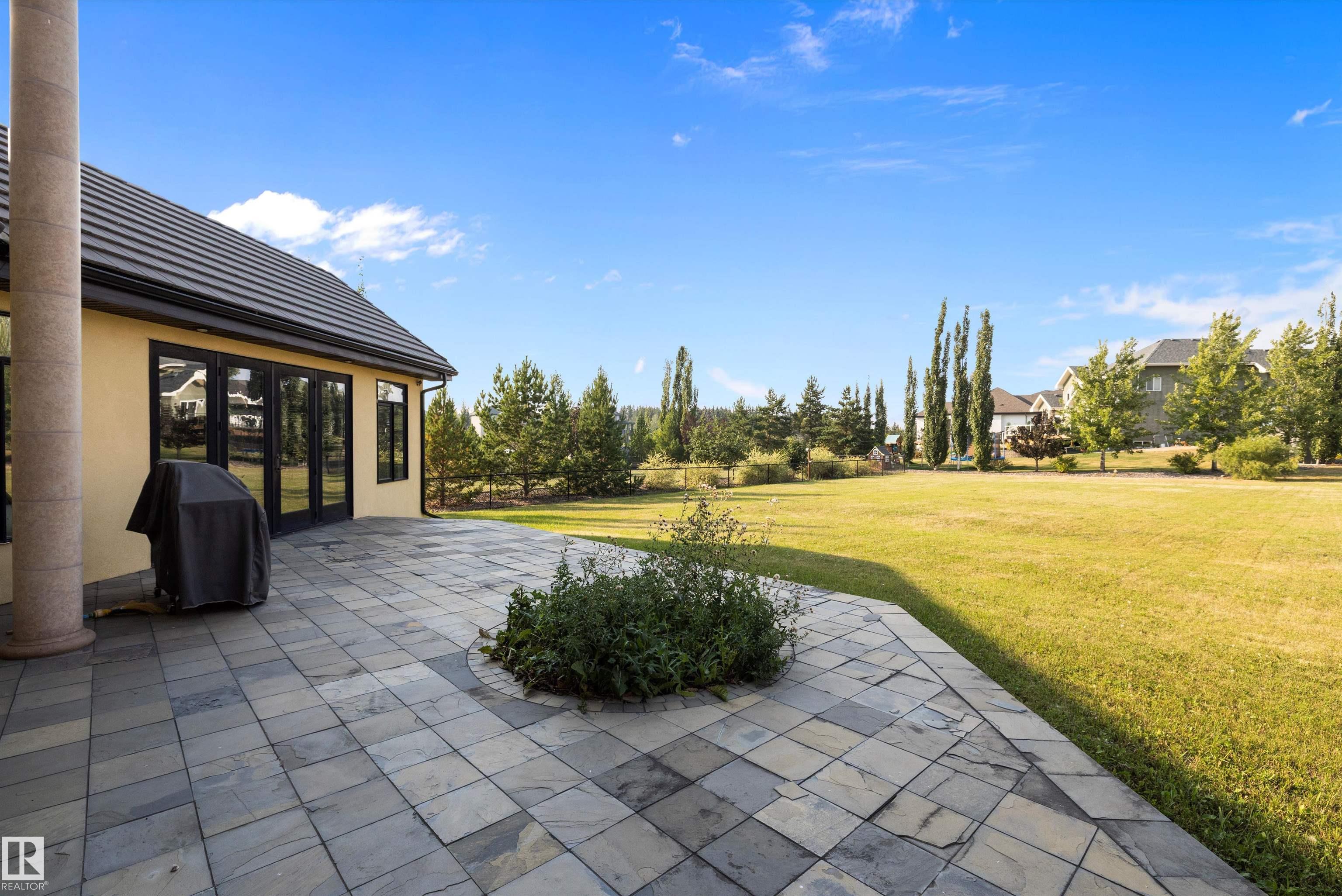 This could be the home you have been waiting for minutes from Edmonton & St. Albert. This 3687 sq. ft. 6 bedroom 2 storey is situated on a half acre fully serviced lot in Tuscany Hills. This home features geo-thermal heating and cooling, concrete roof tile shingles, smooth acrylic stucco exterior, Tumbled travertine floors, fumed cherry hardwood, cherry cabinets with granite counters throughout, gourmet vaulted kitchen with dual islands and 66" wide fridge/freeze. The primary bedroom has an ensuite with round jetted tub and Kohler digital shower system. The curved cherrywood staircase with marble inlays takes you upstairs to 3 additional bedroom two with their own ensuites. The downstairs features a theater room, large rec room with bar and fireplace, plenty of storage and utility room. Park your vehicles in the triple attached garage. This home has too many features to mention but you won't be disappointed.