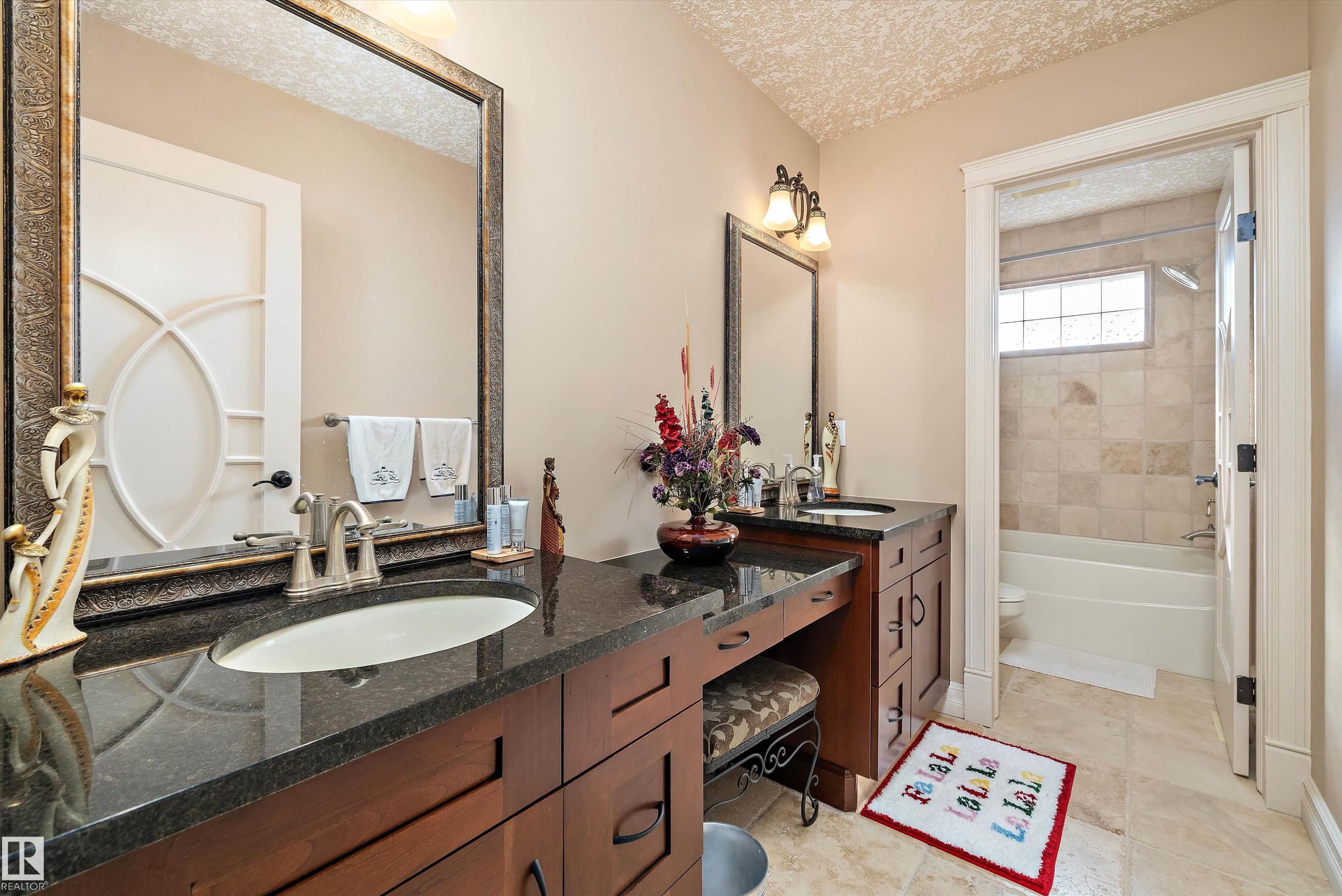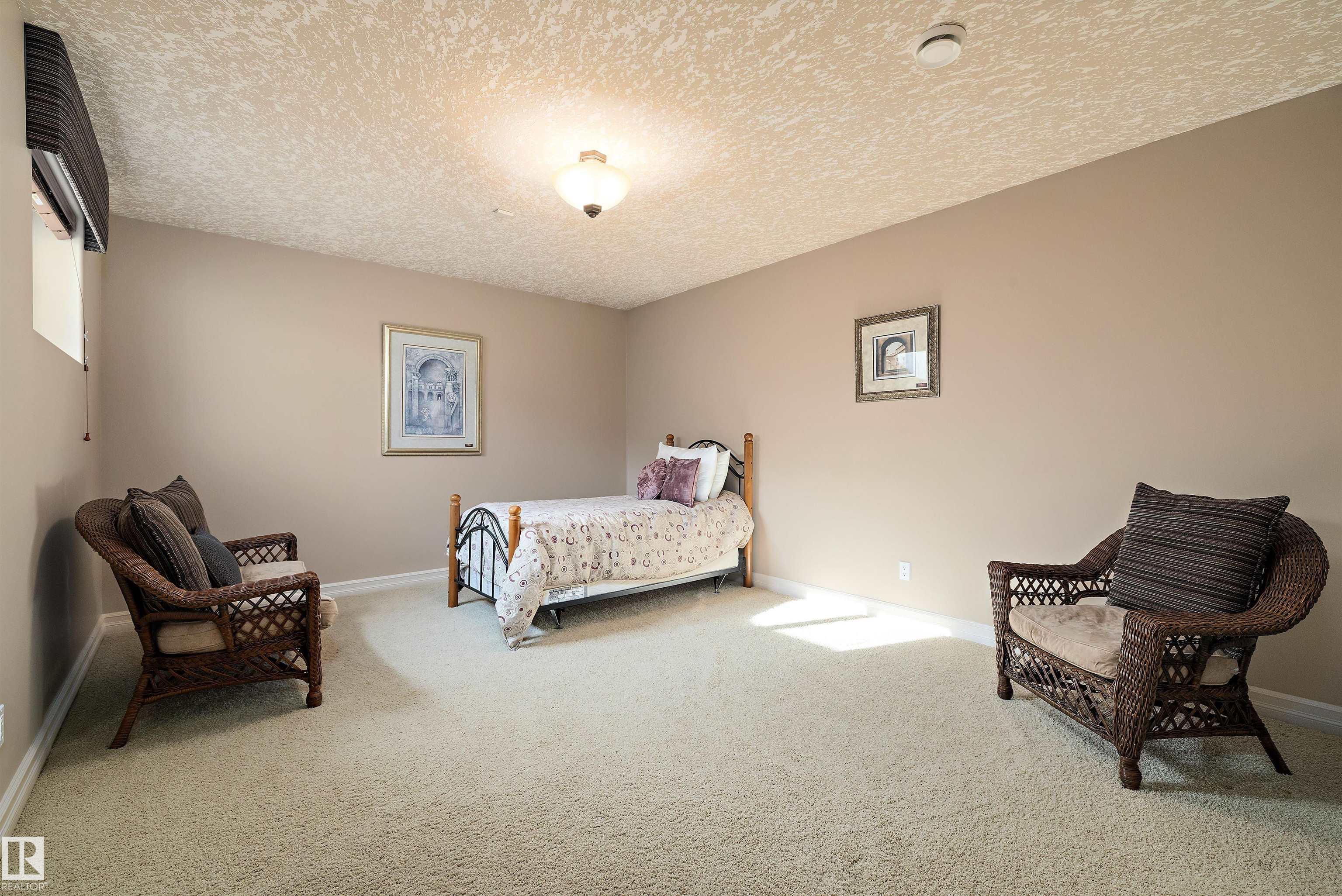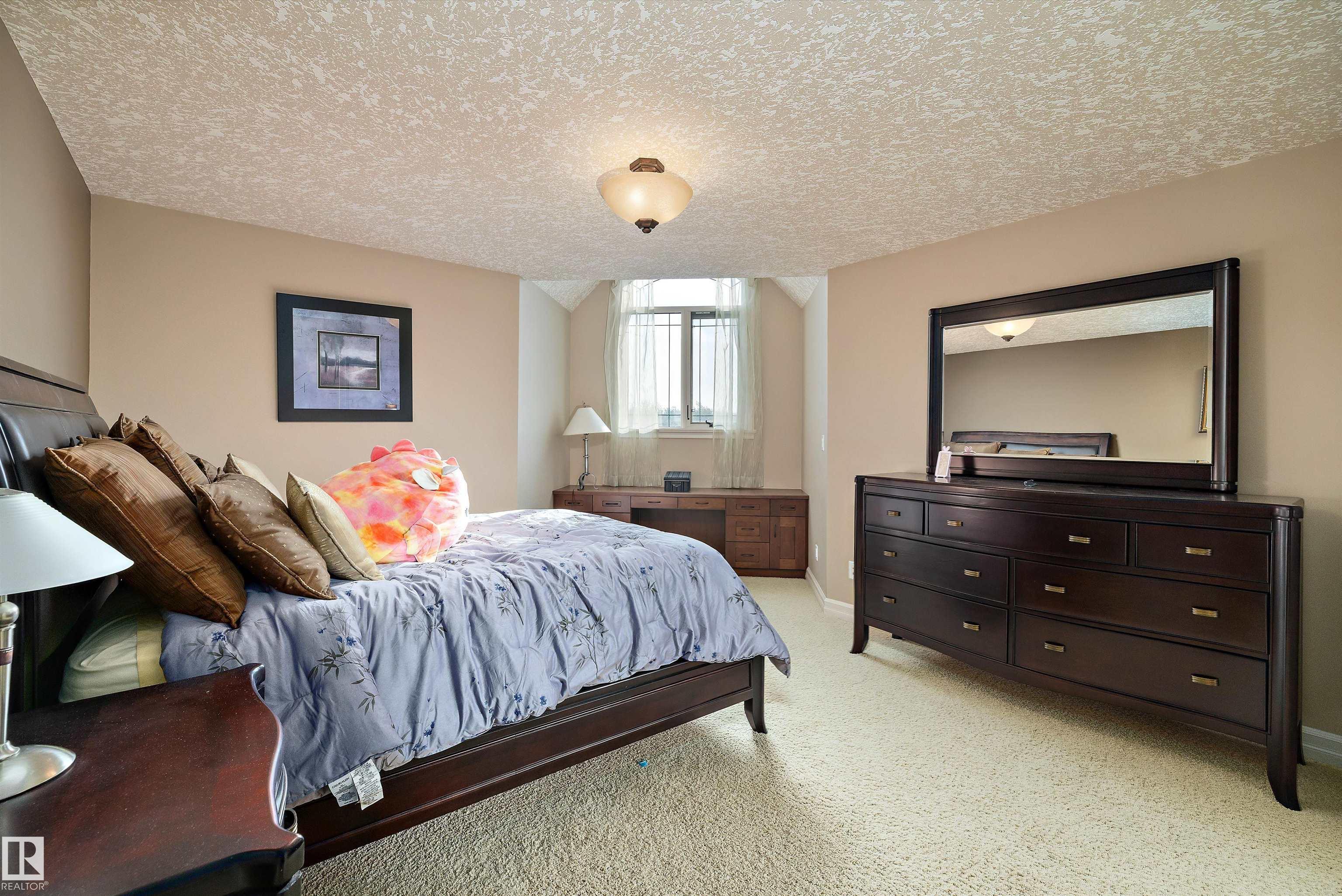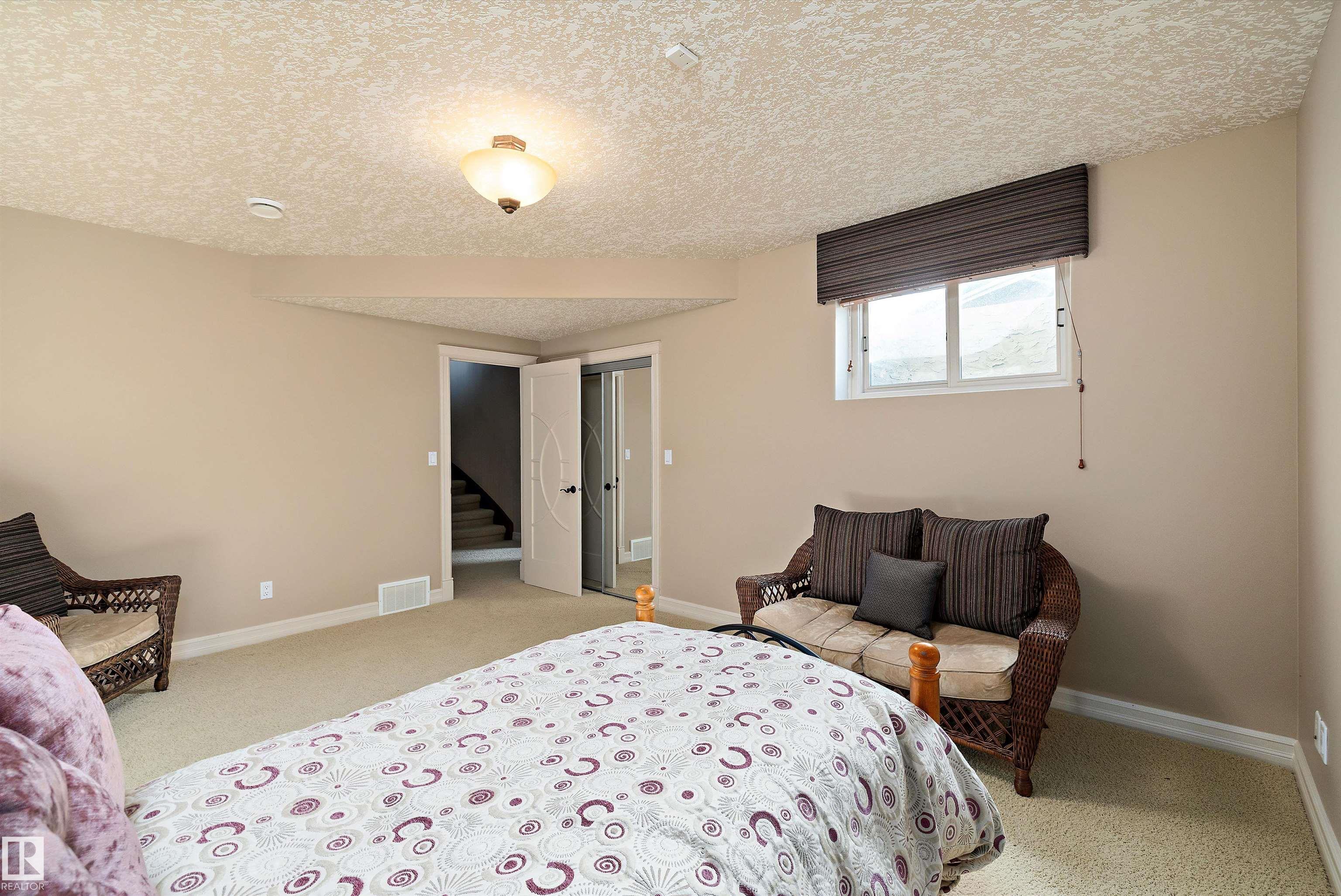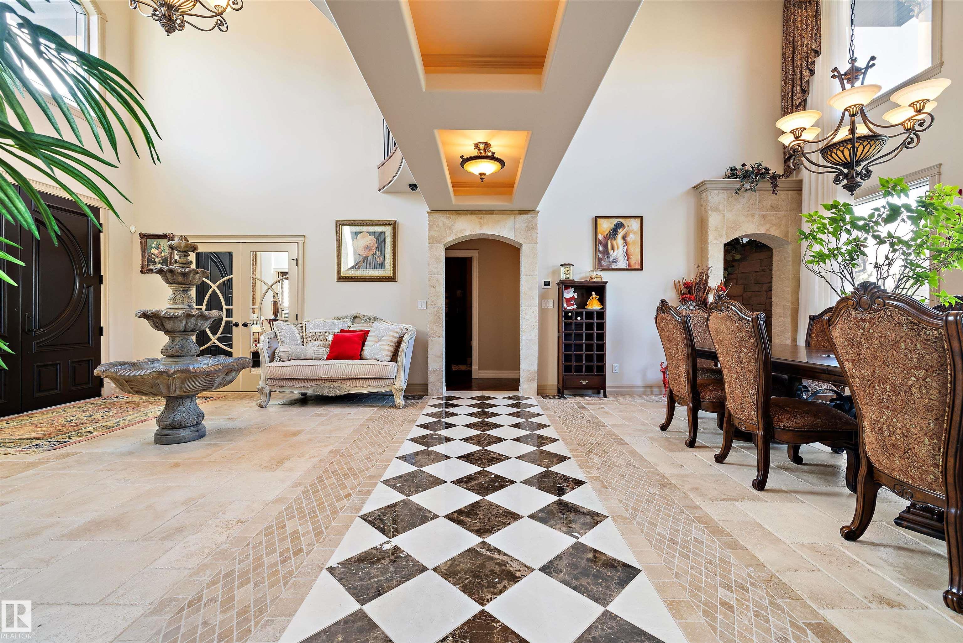 This could be the home you have been waiting for minutes from Edmonton & St. Albert. This 3687 sq. ft. 6 bedroom 2 storey is situated on a half acre fully serviced lot in Tuscany Hills. This home features geo-thermal heating and cooling, concrete roof tile shingles, smooth acrylic stucco exterior, Tumbled travertine floors, fumed cherry hardwood, cherry cabinets with granite counters throughout, gourmet vaulted kitchen with dual islands and 66" wide fridge/freeze. The primary bedroom has an ensuite with round jetted tub and Kohler digital shower system. The curved cherrywood staircase with marble inlays takes you upstairs to 3 additional bedroom two with their own ensuites. The downstairs features a theater room, large rec room with bar and fireplace, plenty of storage and utility room. Park your vehicles in the triple attached garage. This home has too many features to mention but you won't be disappointed.