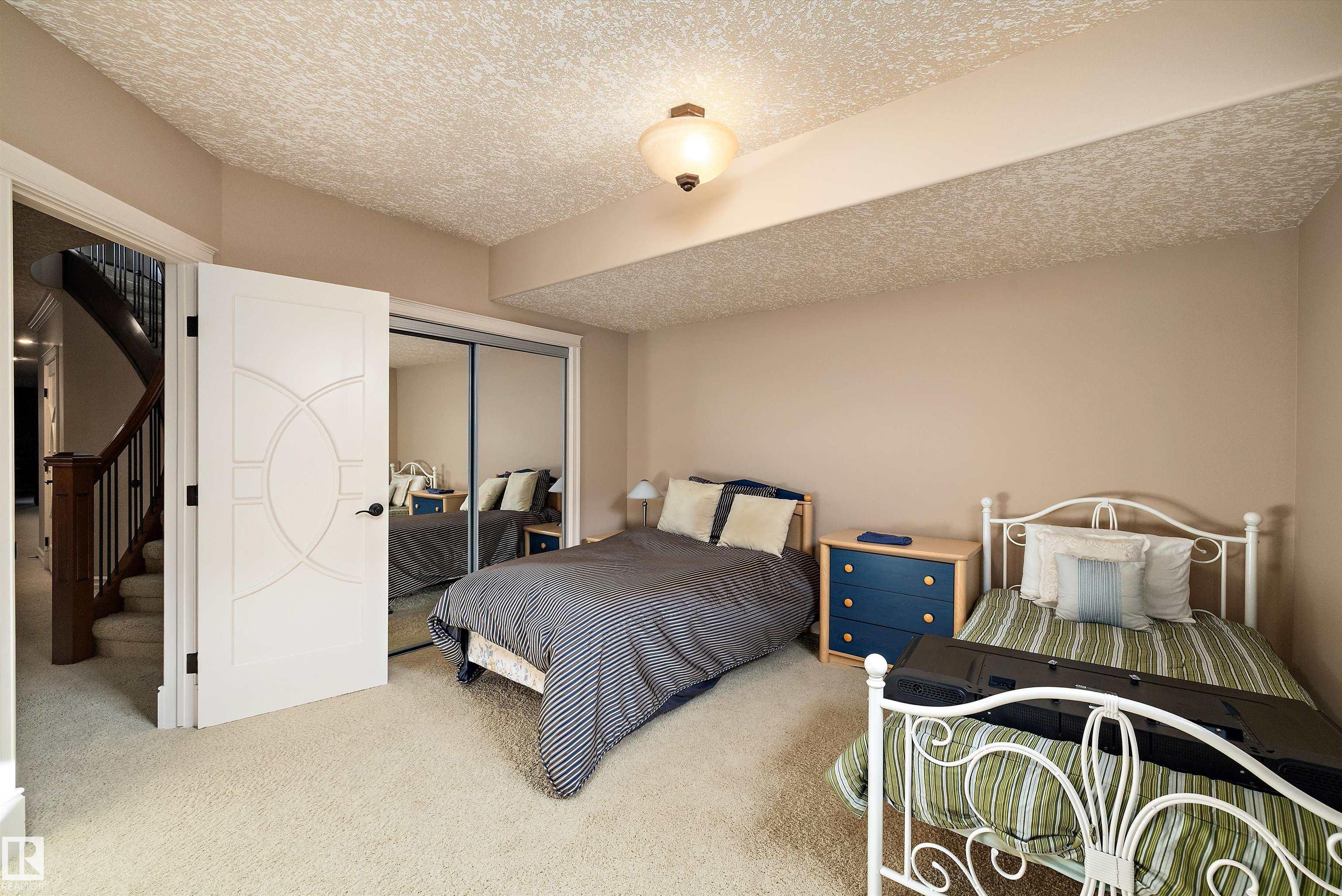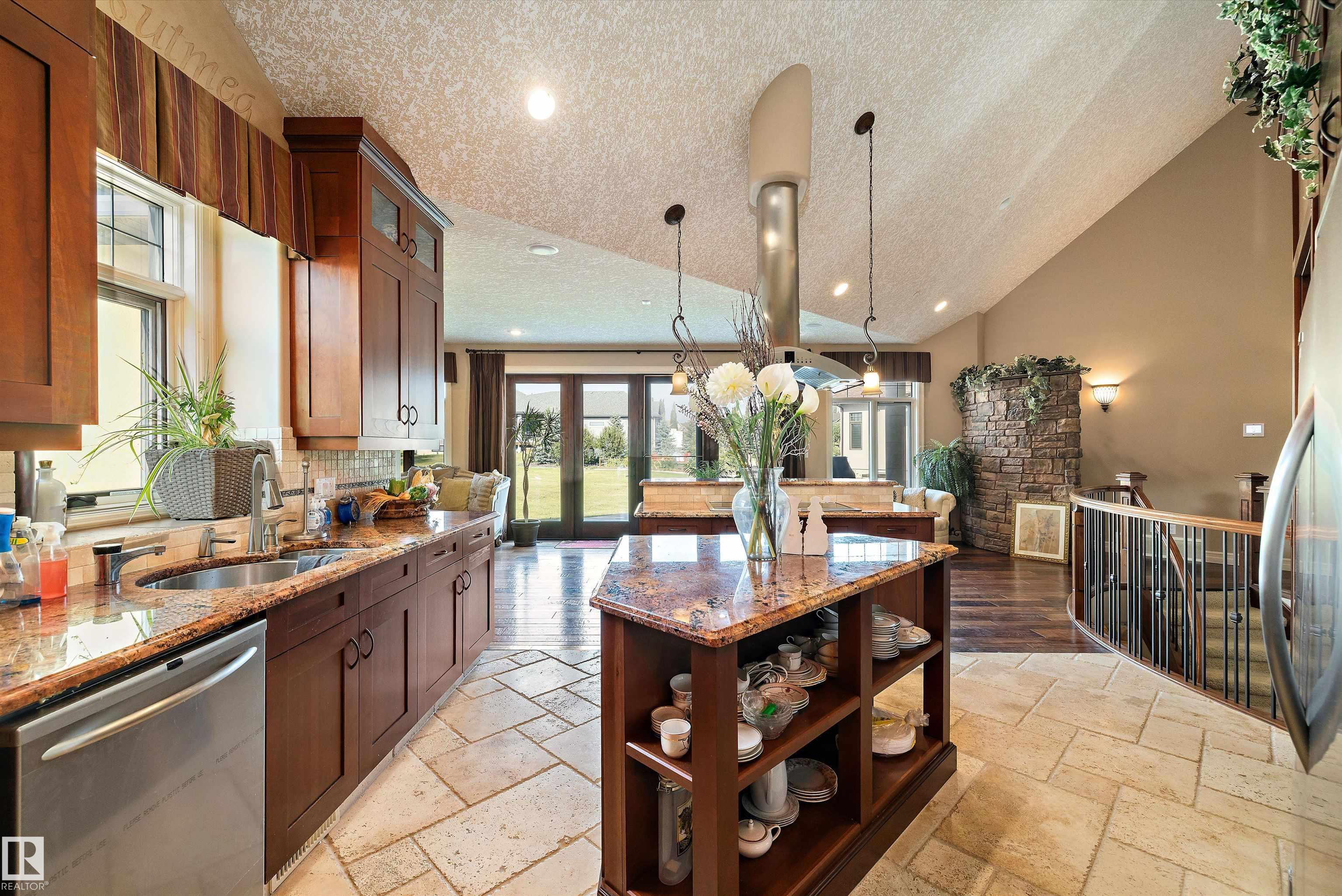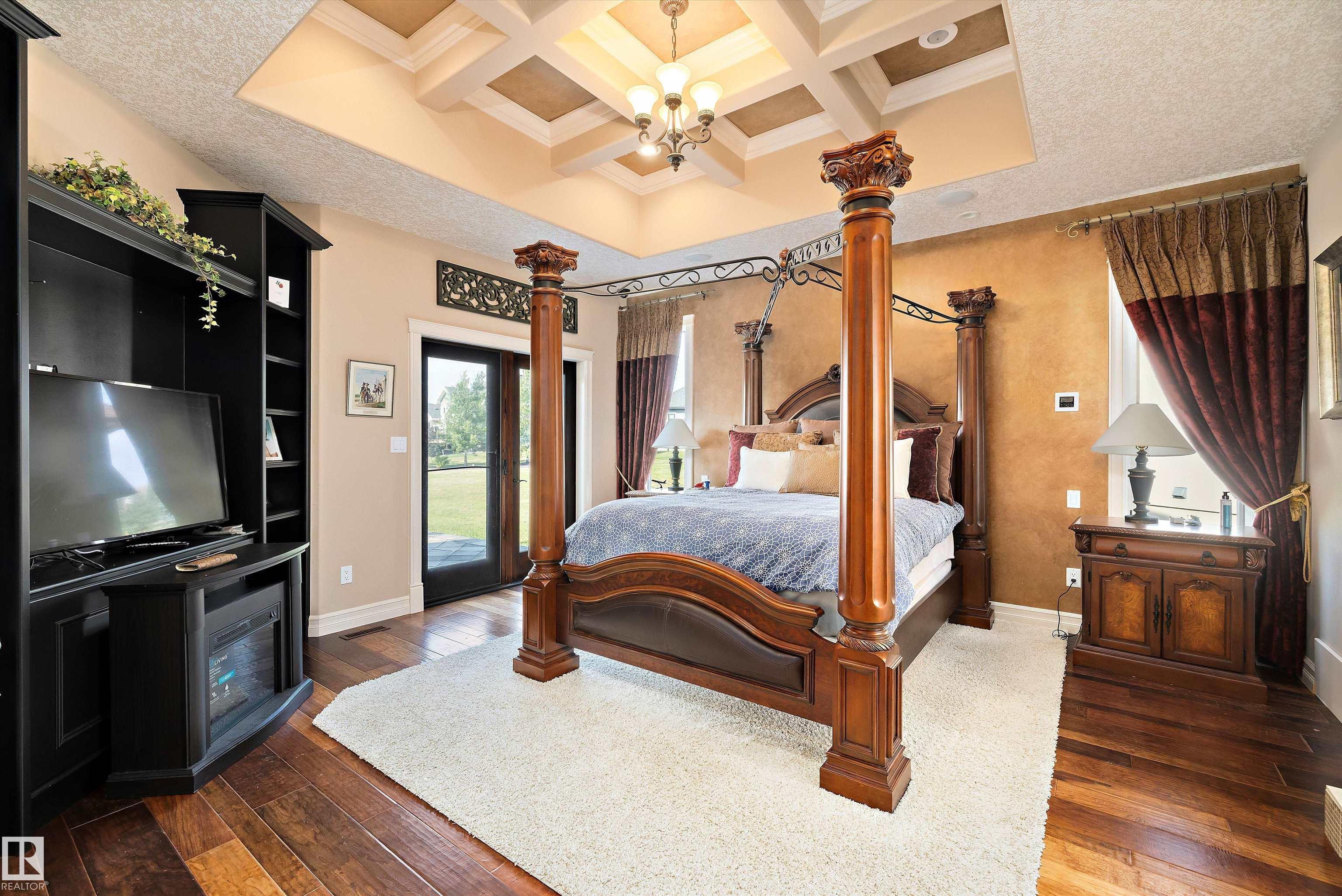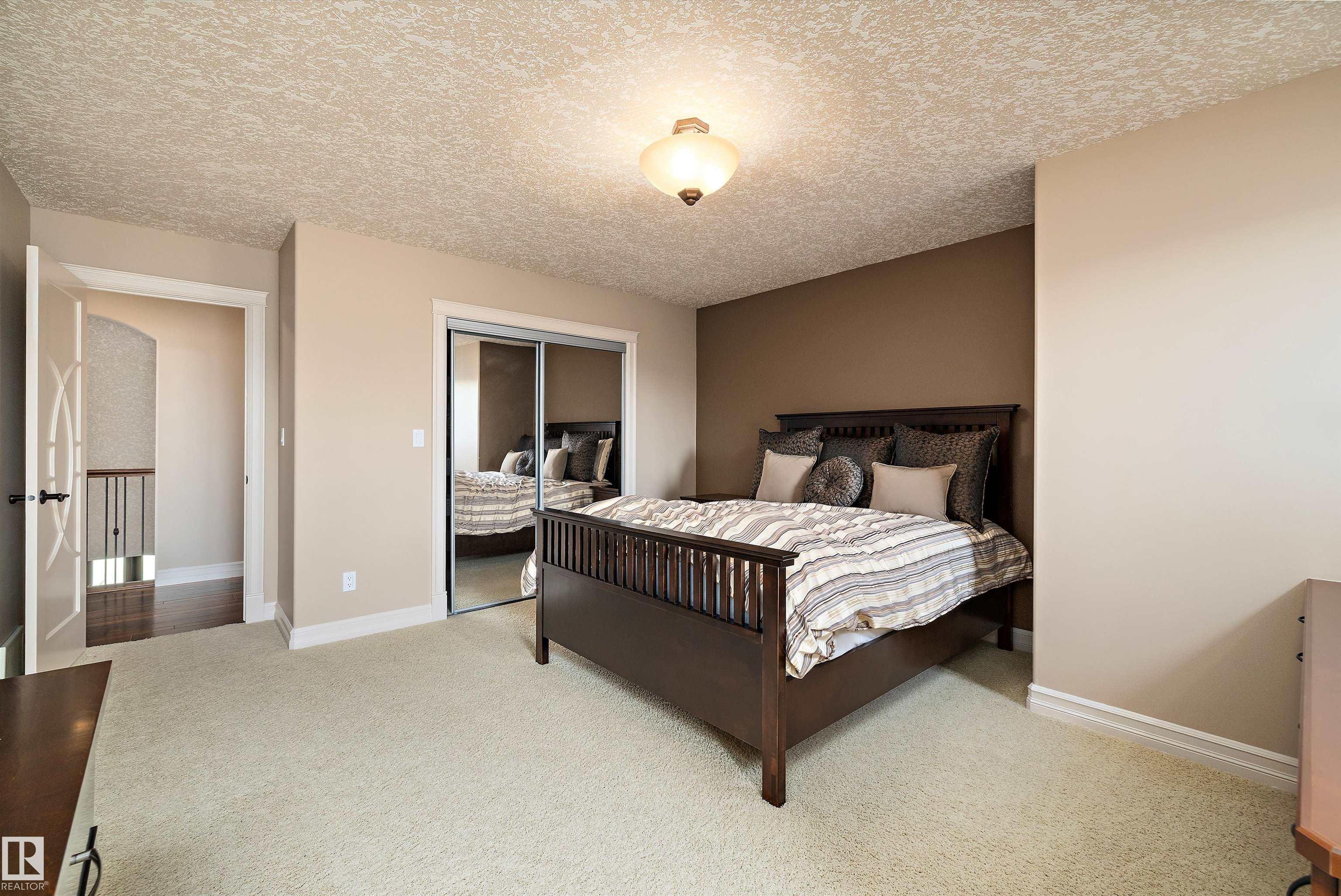 This could be the home you have been waiting for minutes from Edmonton & St. Albert. This 3687 sq. ft. 6 bedroom 2 storey is situated on a half acre fully serviced lot in Tuscany Hills. This home features geo-thermal heating and cooling, concrete roof tile shingles, smooth acrylic stucco exterior, Tumbled travertine floors, fumed cherry hardwood, cherry cabinets with granite counters throughout, gourmet vaulted kitchen with dual islands and 66" wide fridge/freeze. The primary bedroom has an ensuite with round jetted tub and Kohler digital shower system. The curved cherrywood staircase with marble inlays takes you upstairs to 3 additional bedroom two with their own ensuites. The downstairs features a theater room, large rec room with bar and fireplace, plenty of storage and utility room. Park your vehicles in the triple attached garage. This home has too many features to mention but you won't be disappointed.
