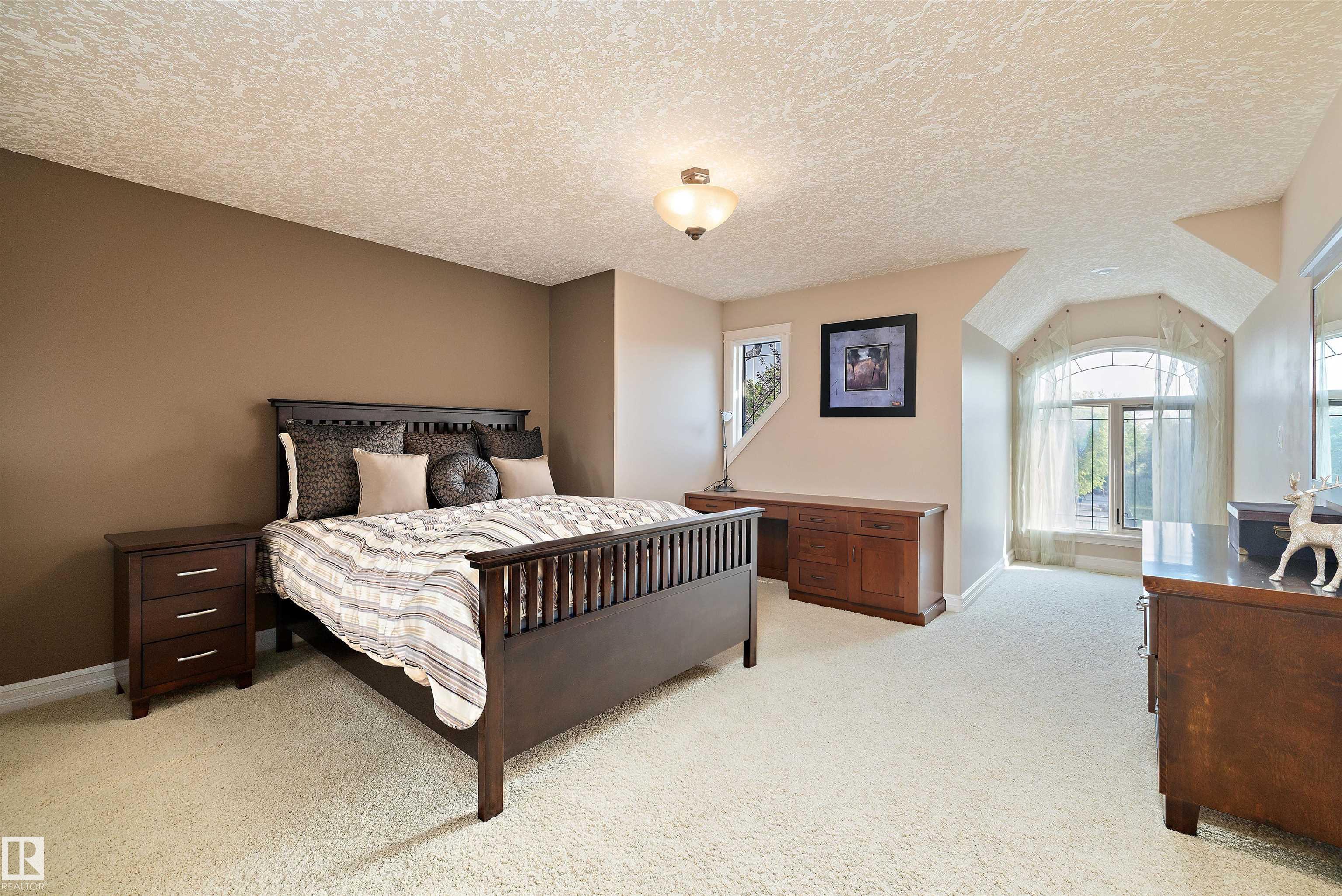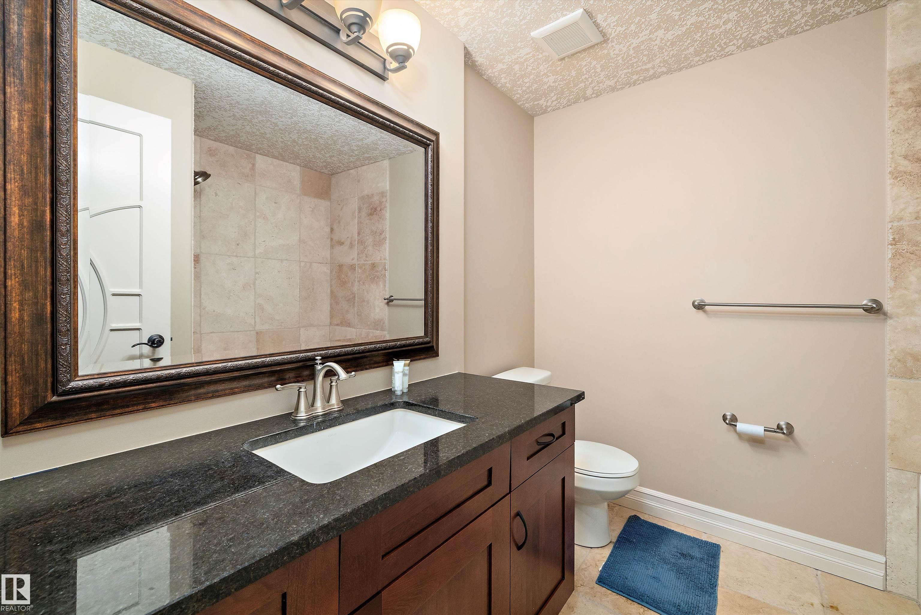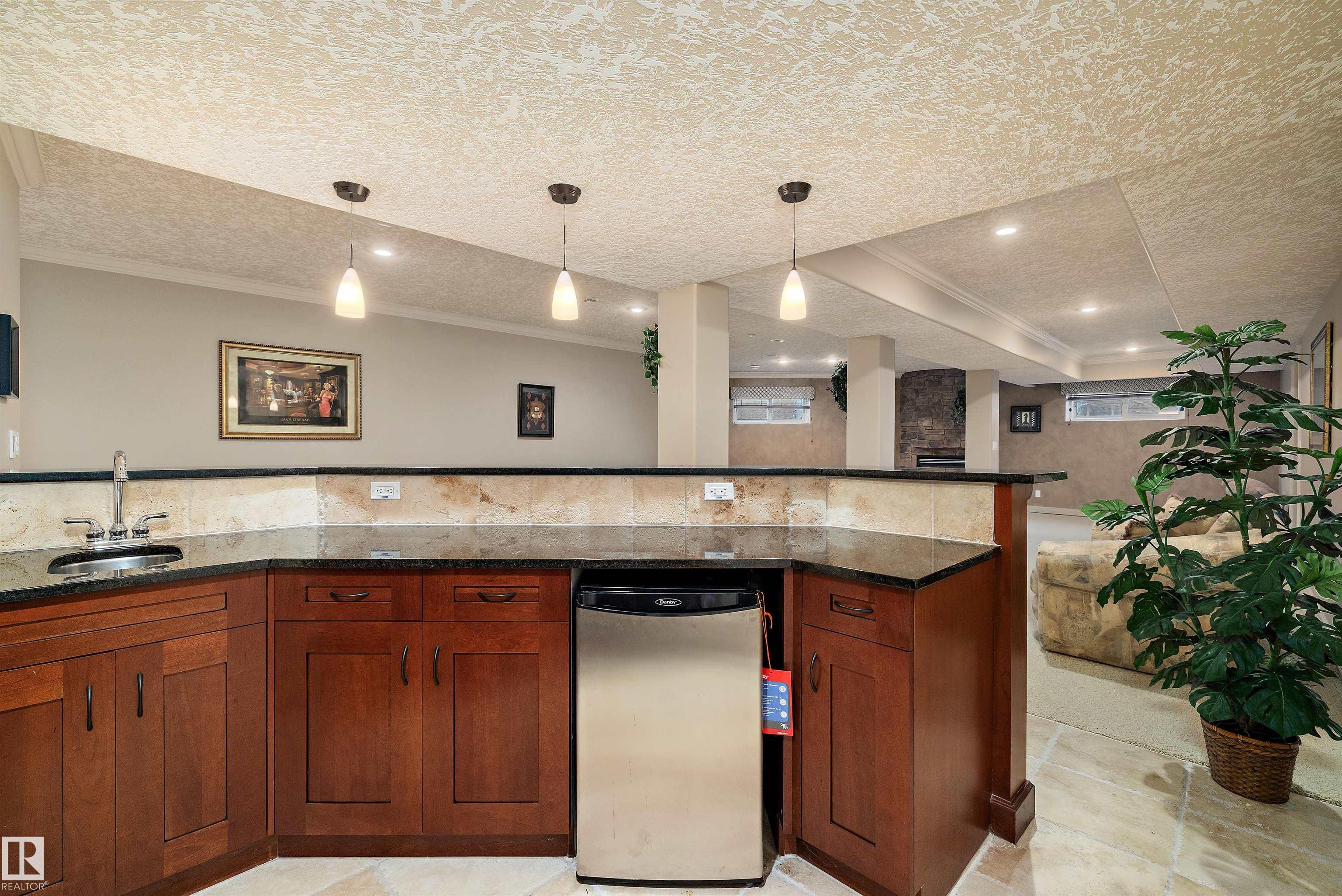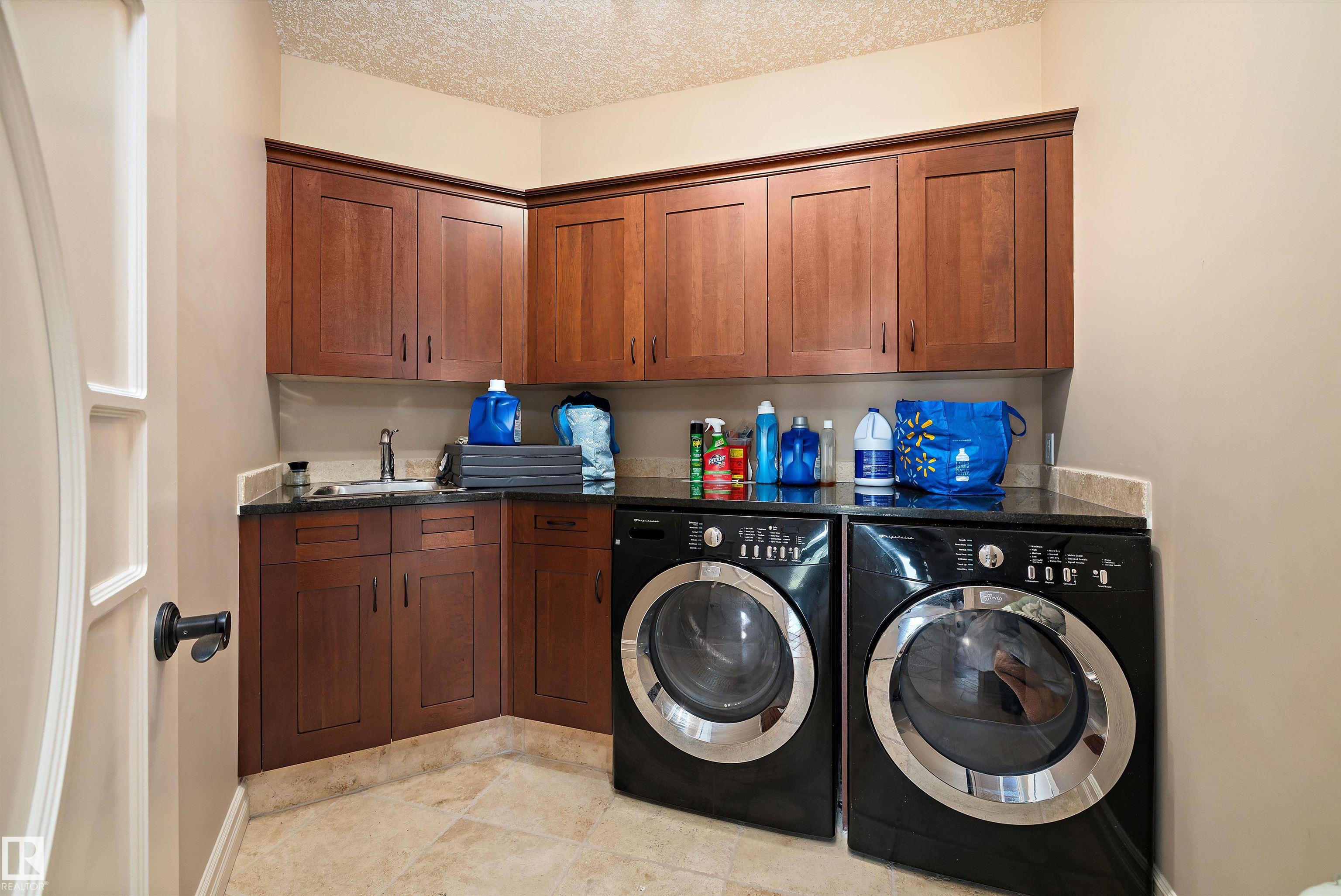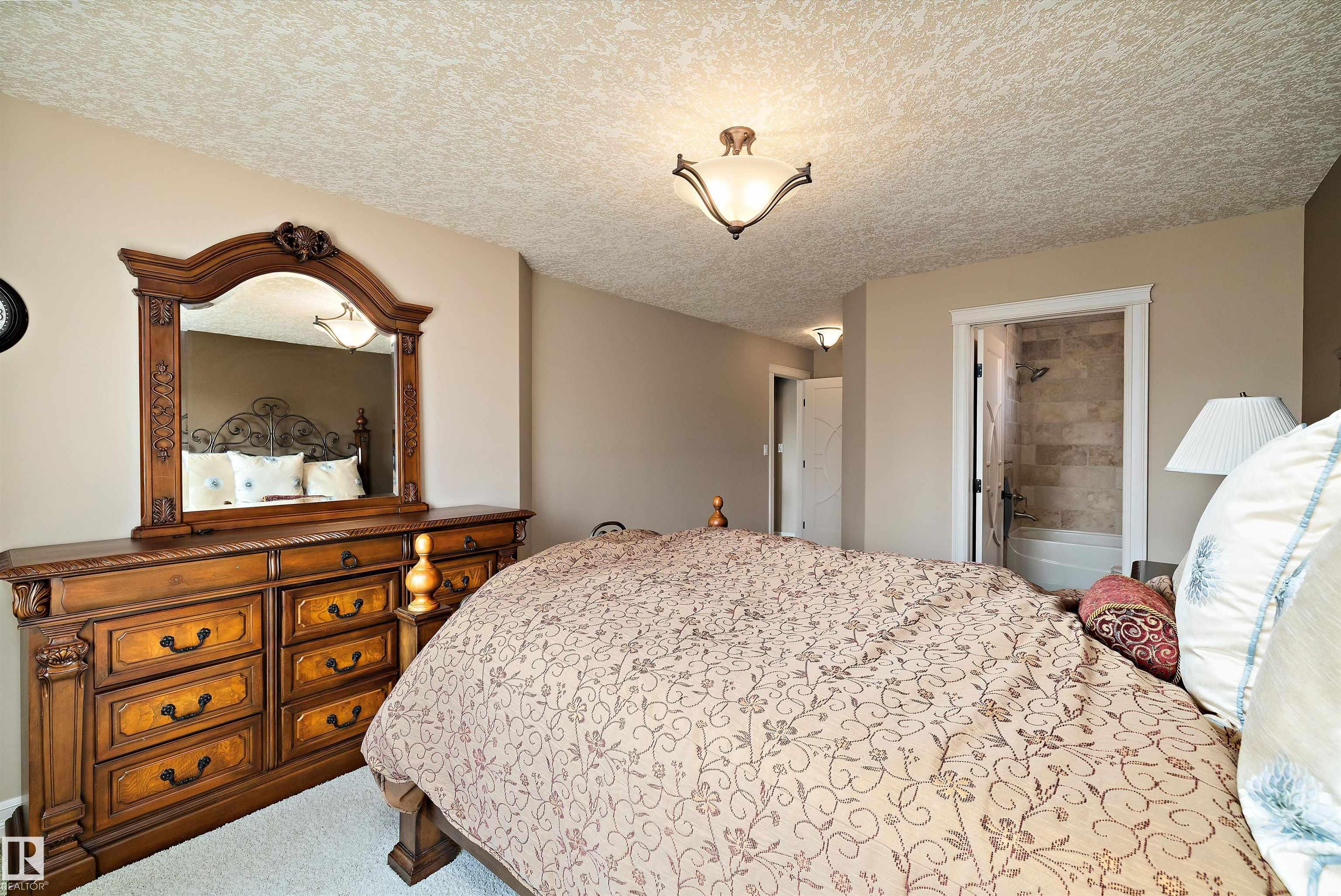This could be the home you have been waiting for minutes from Edmonton & St. Albert. This 3687 sq. ft. 6 bedroom 2 storey is situated on a half acre fully serviced lot in Tuscany Hills. This home features geo-thermal heating and cooling, concrete roof tile shingles, smooth acrylic stucco exterior, Tumbled travertine floors, fumed cherry hardwood, cherry cabinets with granite counters throughout, gourmet vaulted kitchen with dual islands and 66" wide fridge/freeze. The primary bedroom has an ensuite with round jetted tub and Kohler digital shower system. The curved cherrywood staircase with marble inlays takes you upstairs to 3 additional bedroom two with their own ensuites. The downstairs features a theater room, large rec room with bar and fireplace, plenty of storage and utility room. Park your vehicles in the triple attached garage. This home has too many features to mention but you won't be disappointed.