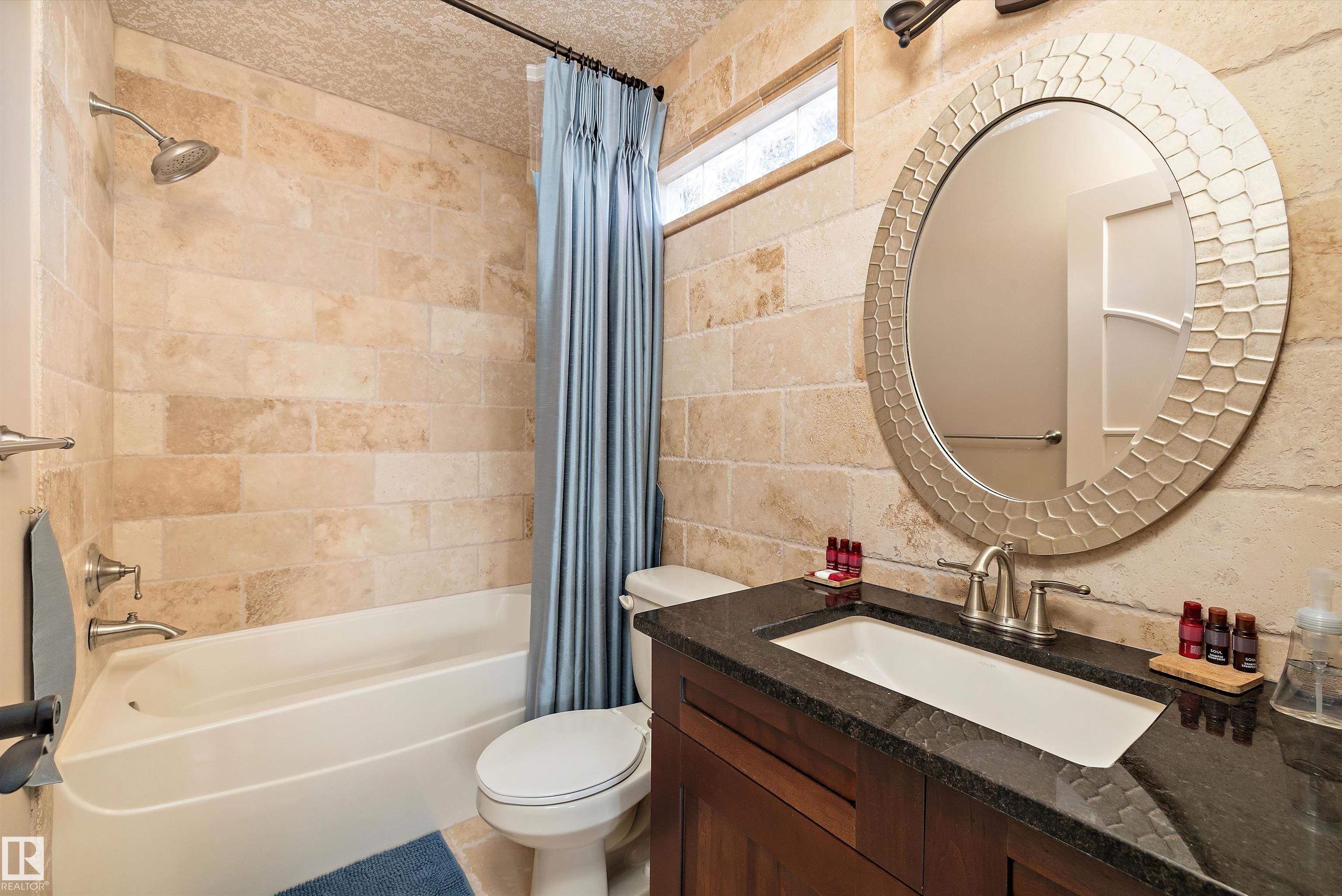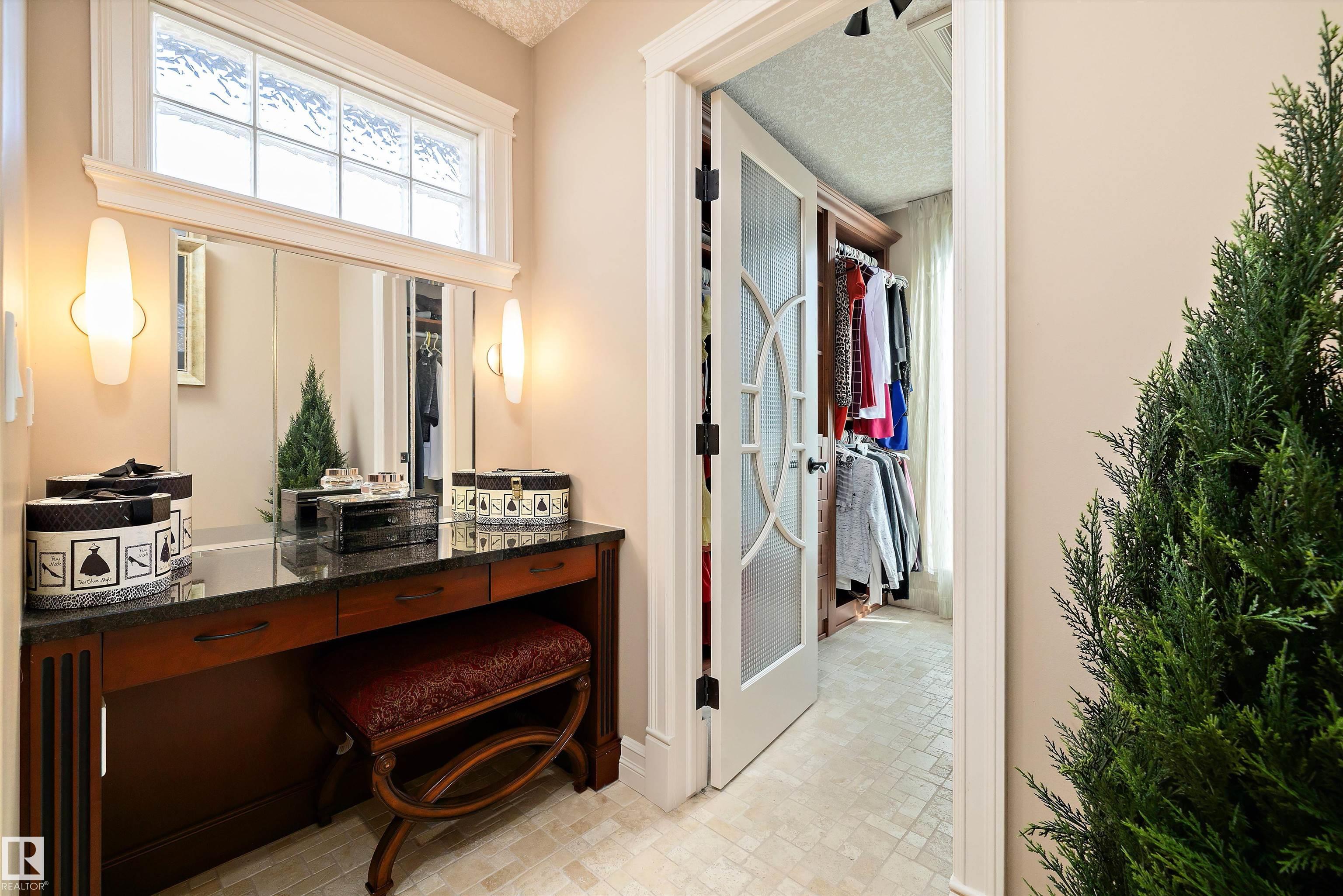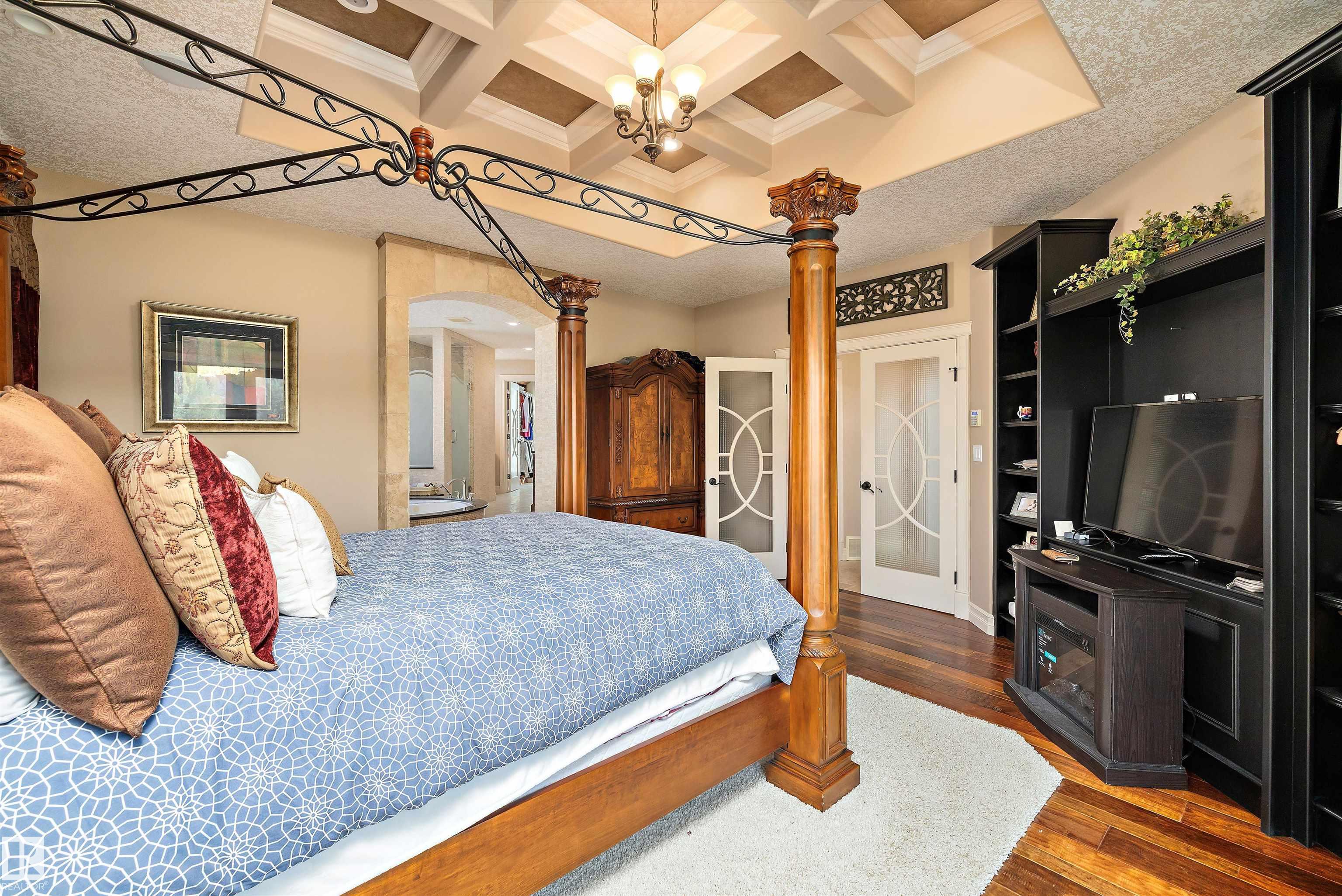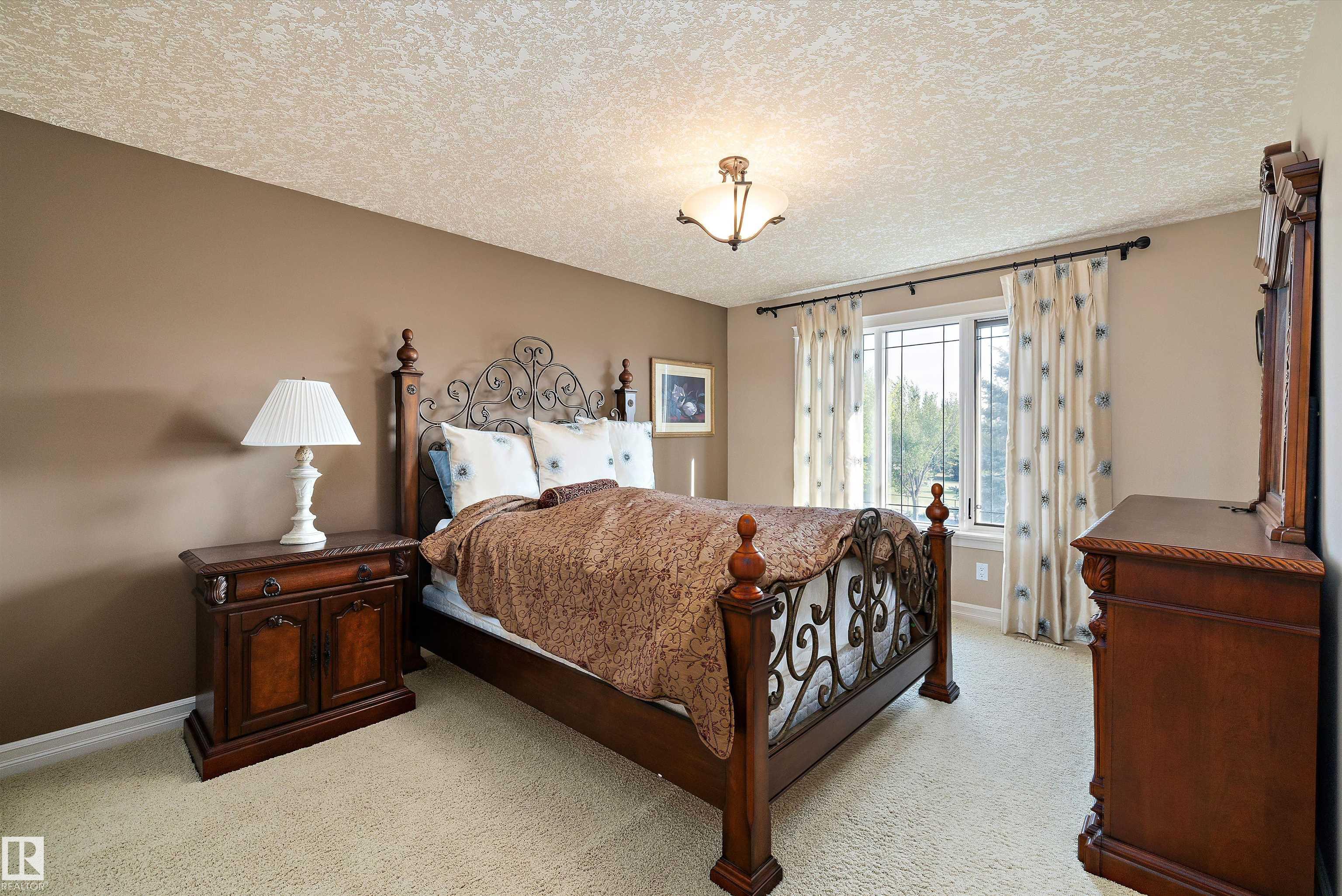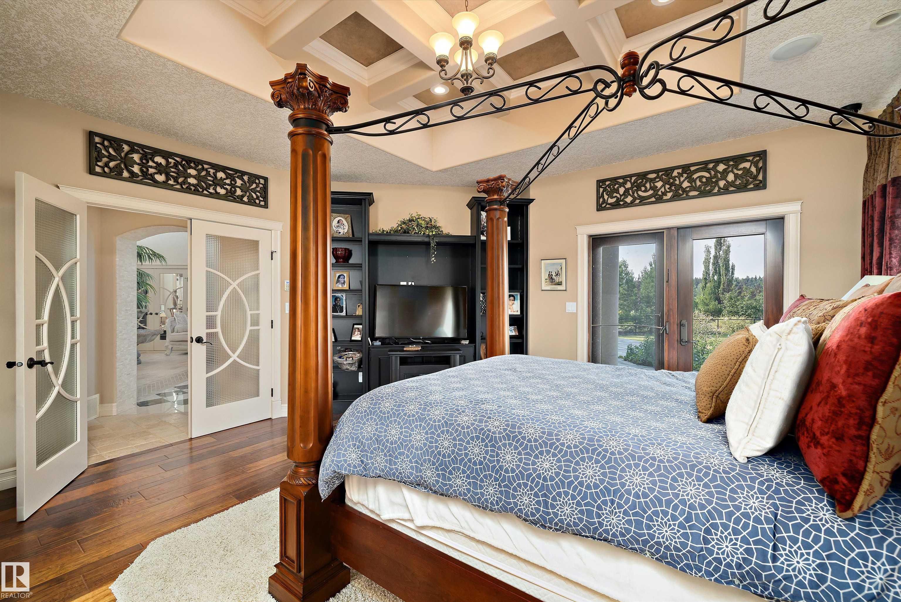 This could be the home you have been waiting for minutes from Edmonton & St. Albert. This 3687 sq. ft. 6 bedroom 2 storey is situated on a half acre fully serviced lot in Tuscany Hills. This home features geo-thermal heating and cooling, concrete roof tile shingles, smooth acrylic stucco exterior, Tumbled travertine floors, fumed cherry hardwood, cherry cabinets with granite counters throughout, gourmet vaulted kitchen with dual islands and 66" wide fridge/freeze. The primary bedroom has an ensuite with round jetted tub and Kohler digital shower system. The curved cherrywood staircase with marble inlays takes you upstairs to 3 additional bedroom two with their own ensuites. The downstairs features a theater room, large rec room with bar and fireplace, plenty of storage and utility room. Park your vehicles in the triple attached garage. This home has too many features to mention but you won't be disappointed.