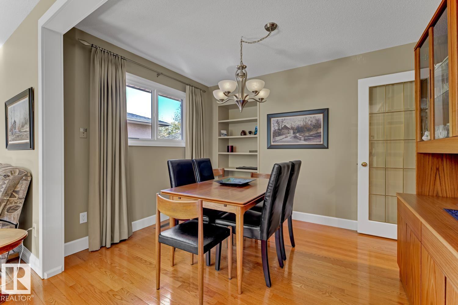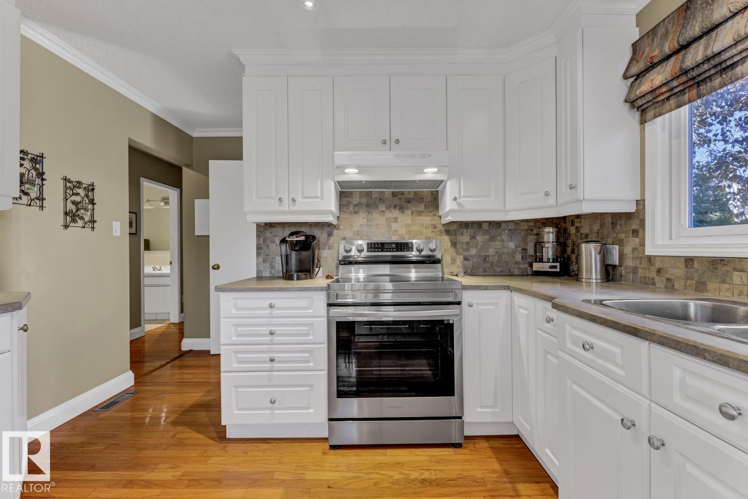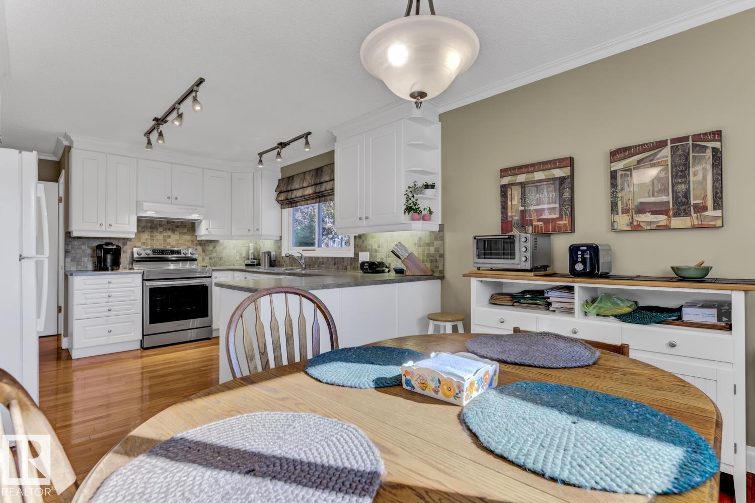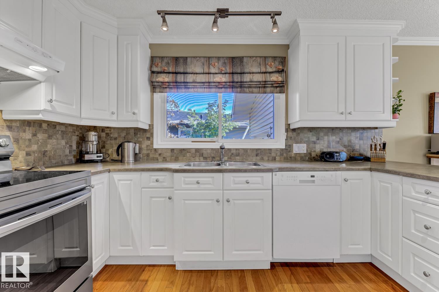 Welcome to this beautifully renovated bungalow in desirable Westboro! This 2+2 bedroom home blends modern comfort with timeless charm, featuring updates throughout, including a stylish kitchen, refreshed bathrooms, new shingles (2024), furnace (2020), hot water tank (2021), windows, and upgraded attic insulation. The main floor offers stunning hardwood floors, a bright living area, and a primary suite with patio access and a private 2-piece ensuite. Downstairs, the spacious basement is ideal for guests or extended family, complete with a wet bar, second fridge, and a 3-piece bath with a walk-in shower. Enjoy an underground sprinkler system, gorgeous immaculate private yard, and a great layout for entertaining inside and out. A perfect mix of updates and warmth in a sought-after Sherwood Park neighbourhood!