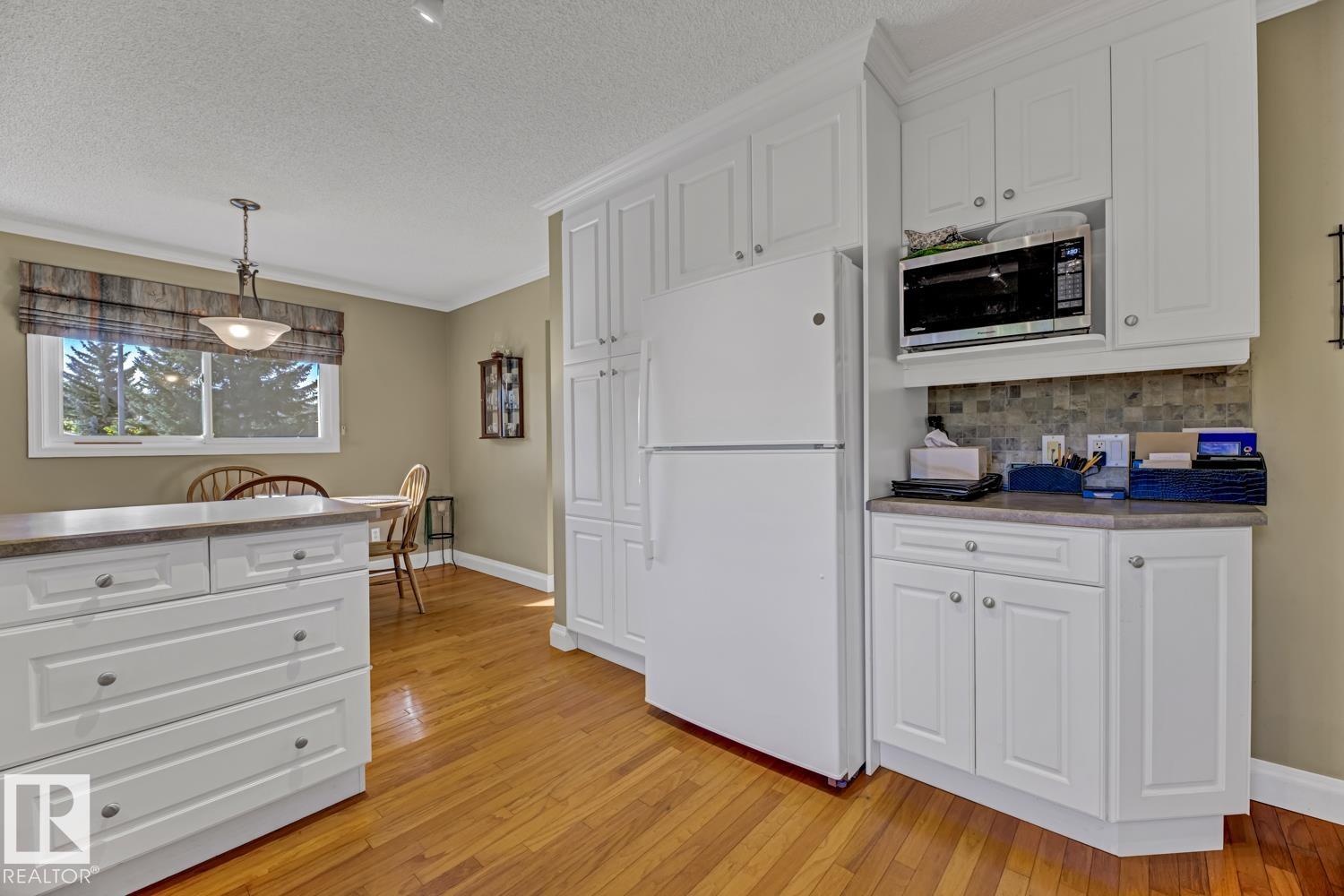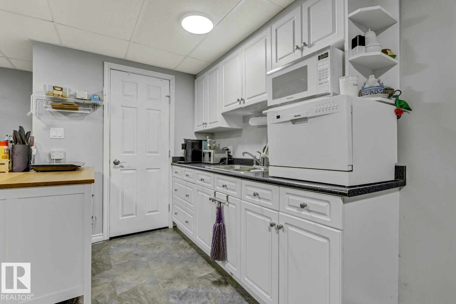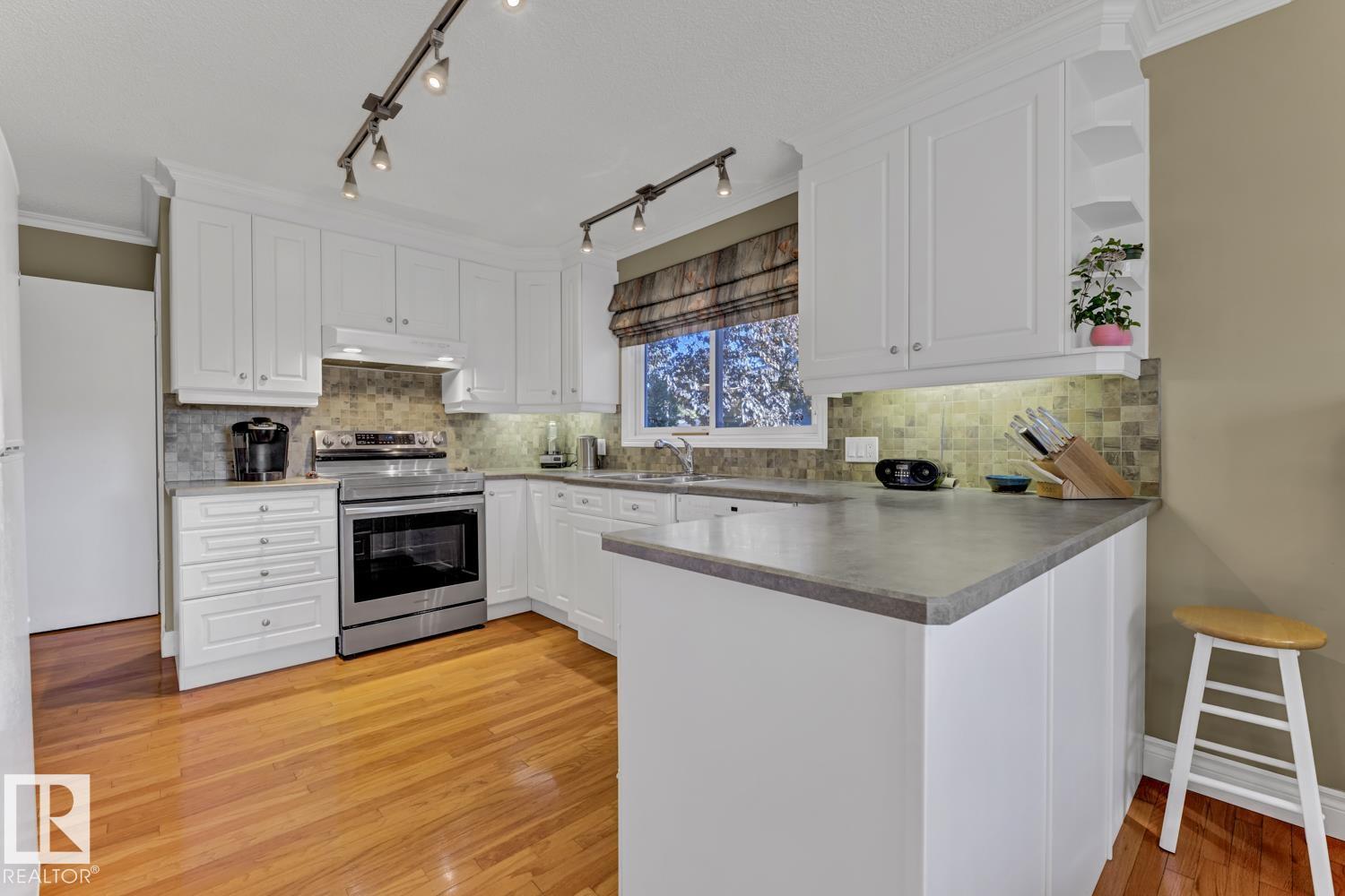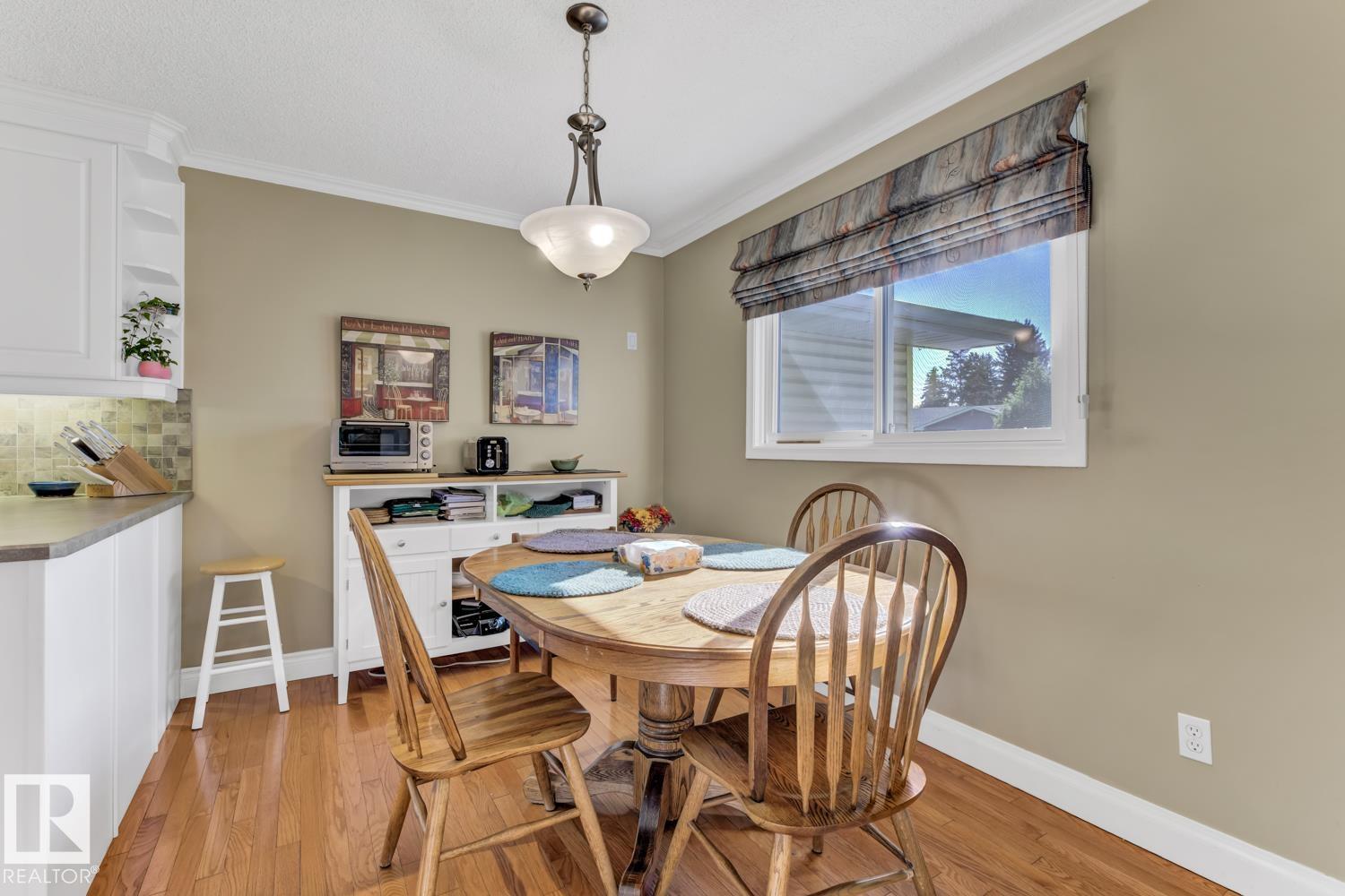 Welcome to this beautifully renovated bungalow in desirable Westboro! This 2+2 bedroom home blends modern comfort with timeless charm, featuring updates throughout, including a stylish kitchen, refreshed bathrooms, new shingles (2024), furnace (2020), hot water tank (2021), windows, and upgraded attic insulation. The main floor offers stunning hardwood floors, a bright living area, and a primary suite with patio access and a private 2-piece ensuite. Downstairs, the spacious basement is ideal for guests or extended family, complete with a wet bar, second fridge, and a 3-piece bath with a walk-in shower. Enjoy an underground sprinkler system, gorgeous immaculate private yard, and a great layout for entertaining inside and out. A perfect mix of updates and warmth in a sought-after Sherwood Park neighbourhood!